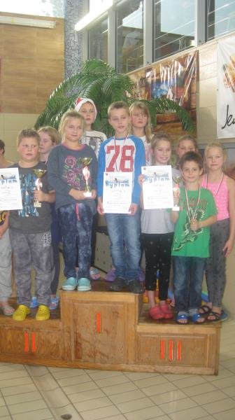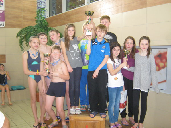 50m. Nasze reprezentacje stanęły na podium. Klasy III reprezentowali: Michał Jonowski, Natalia Drzewiecka, Maja Sadłakowska i Dobrusia Rychlik. Zdobyli III miejsce. Klasy IV- VI reprezentowali: Oliwier Zielski, Liliana Kukiełka,Natalia Maciejewska i Natalia Urbańska. Wywalczyli I miejsce.