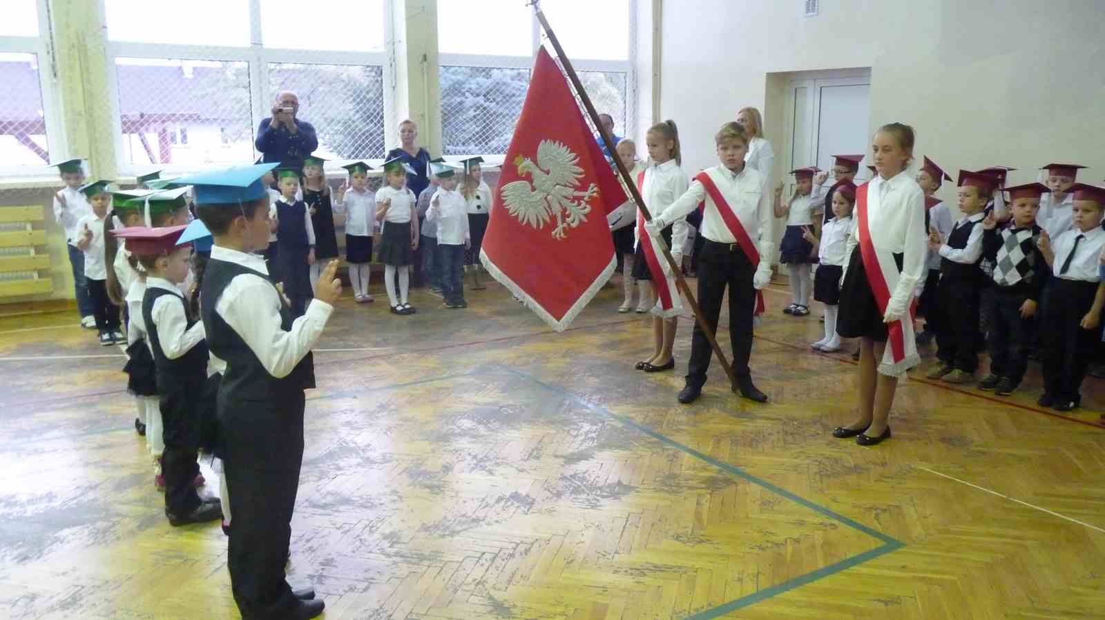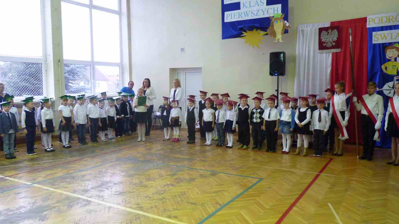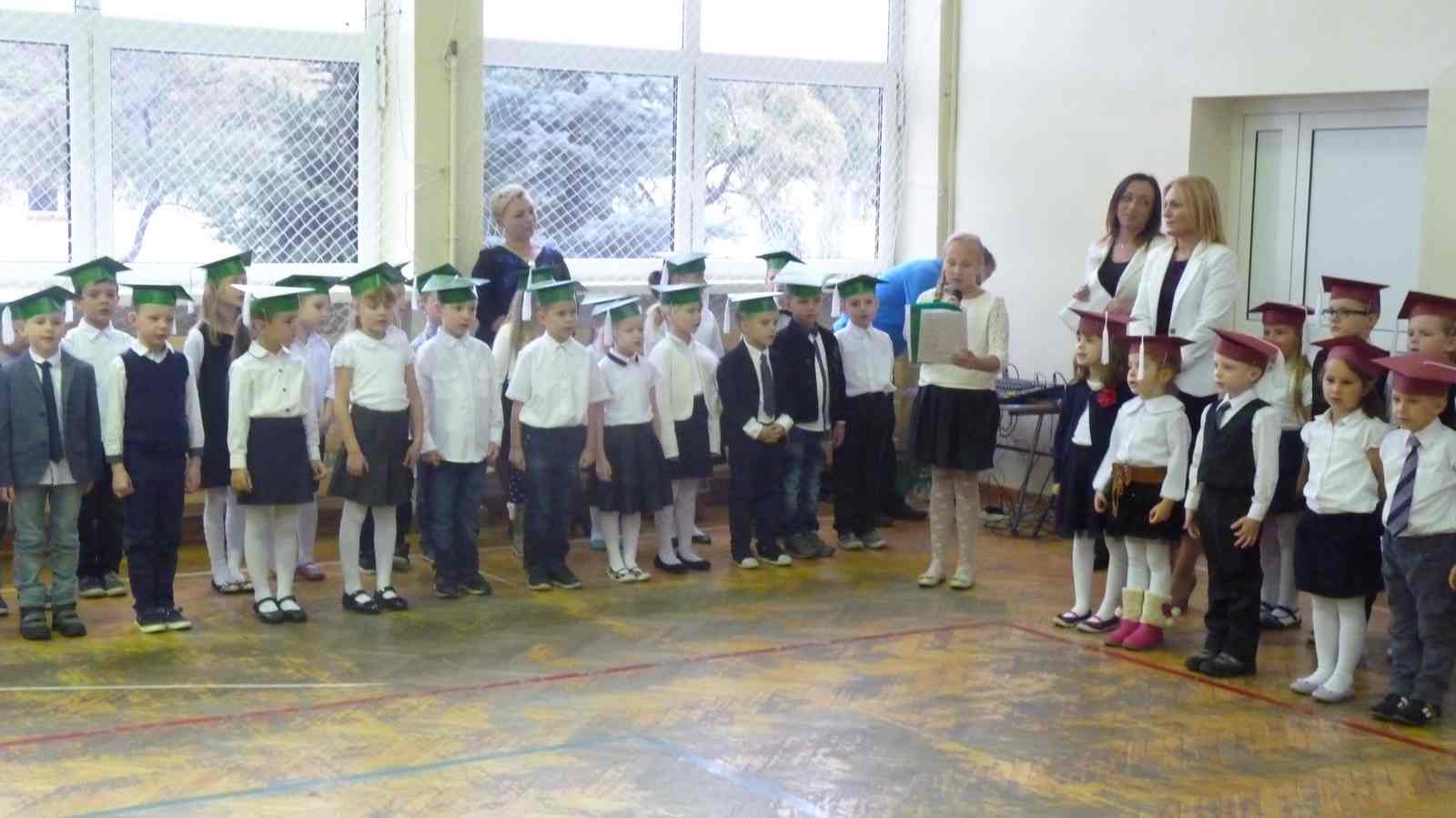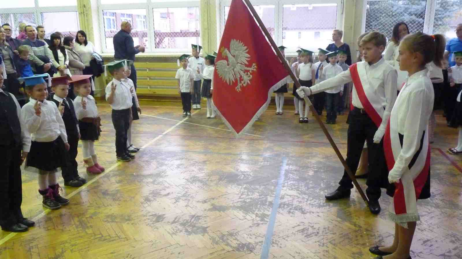 13 października przed pocztem sztandarowym odbyło się ślubowanie i pasowanie na pierwszoklasistów. Od tej chwili dzieci weszły oficjalnie do grona uczniów naszej szkoły.