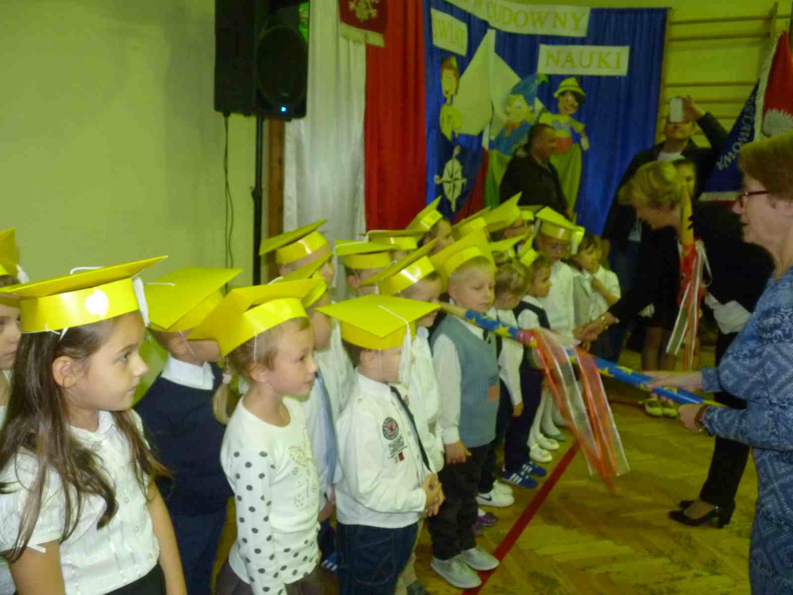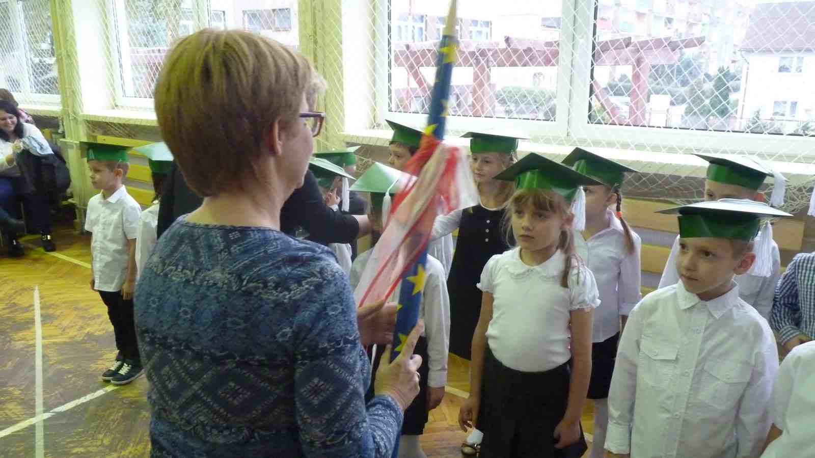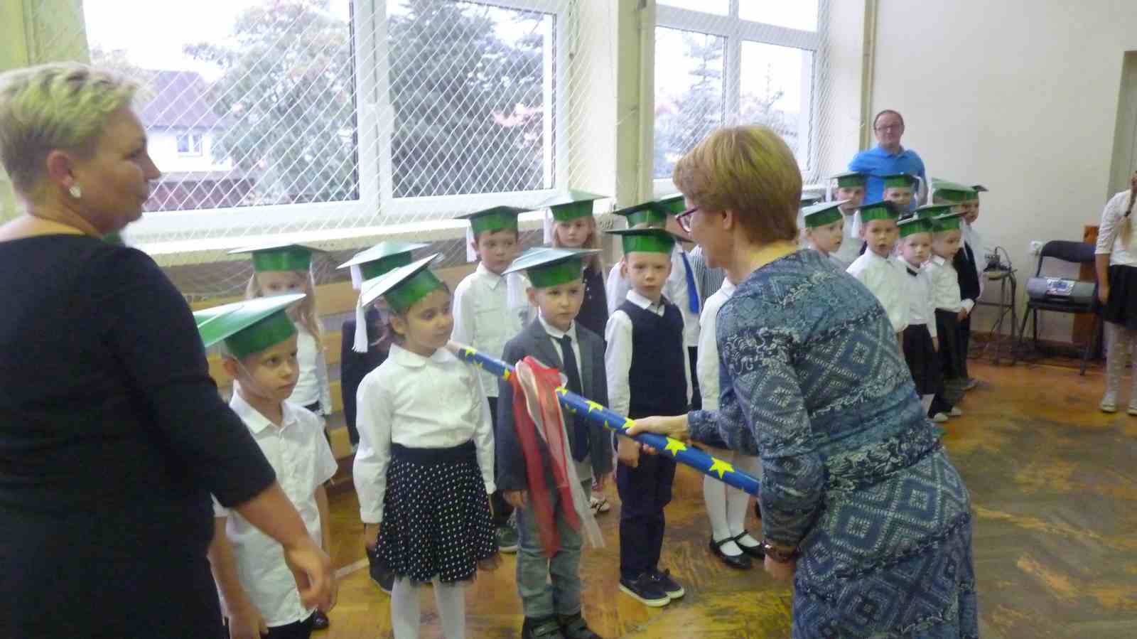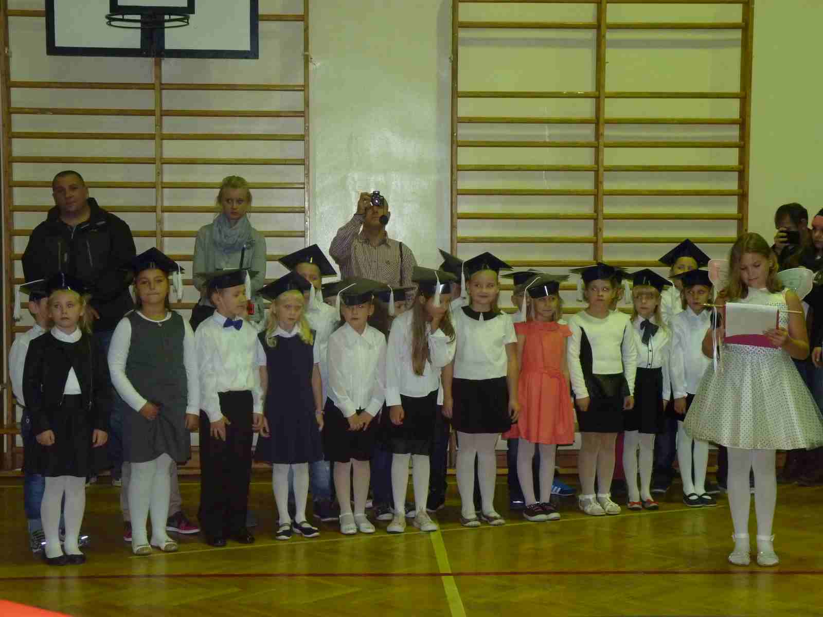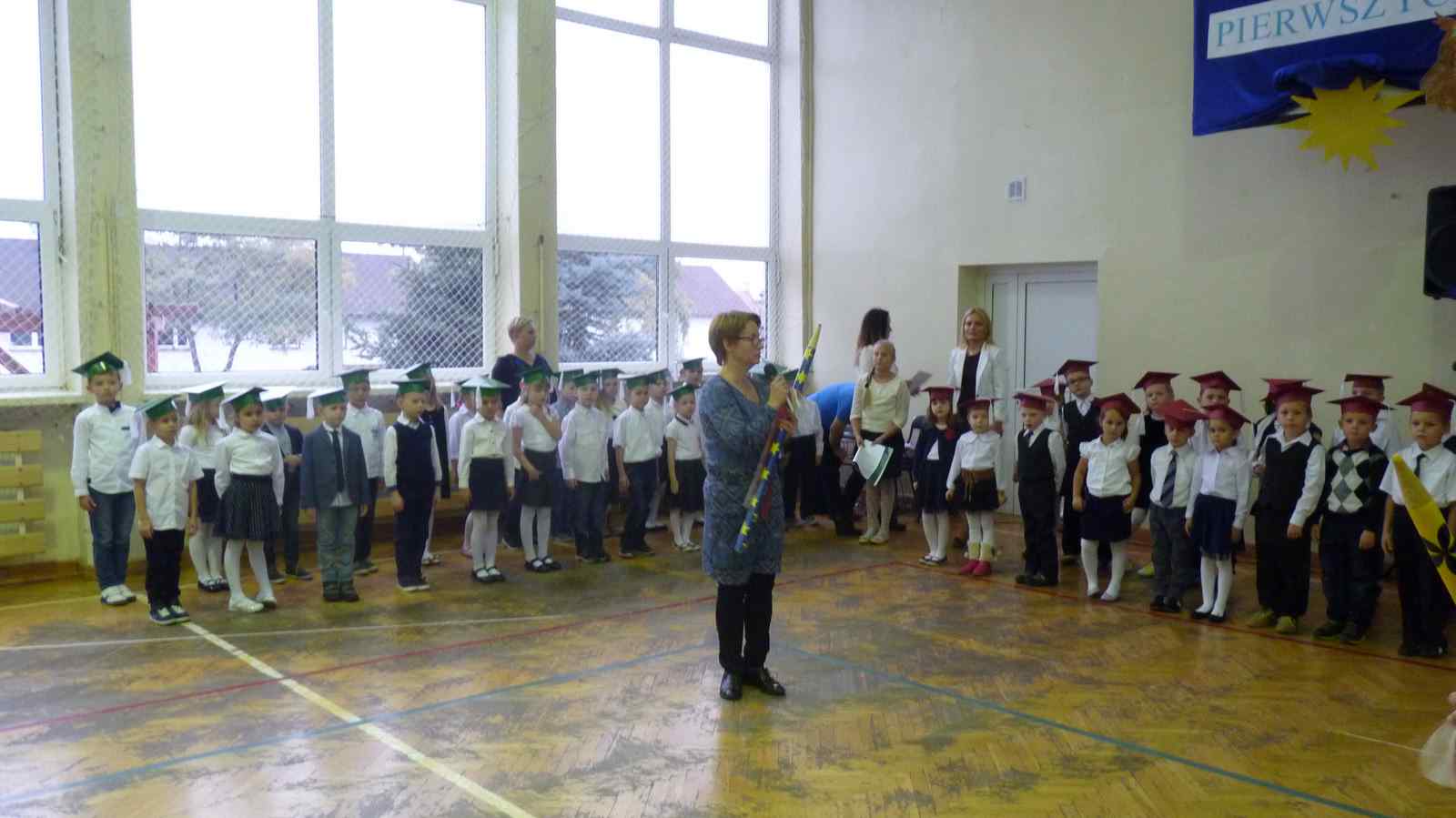 13 października przed pocztem sztandarowym odbyło się ślubowanie i pasowanie na pierwszoklasistów. Od tej chwili dzieci weszły oficjalnie do grona uczniów naszej szkoły.