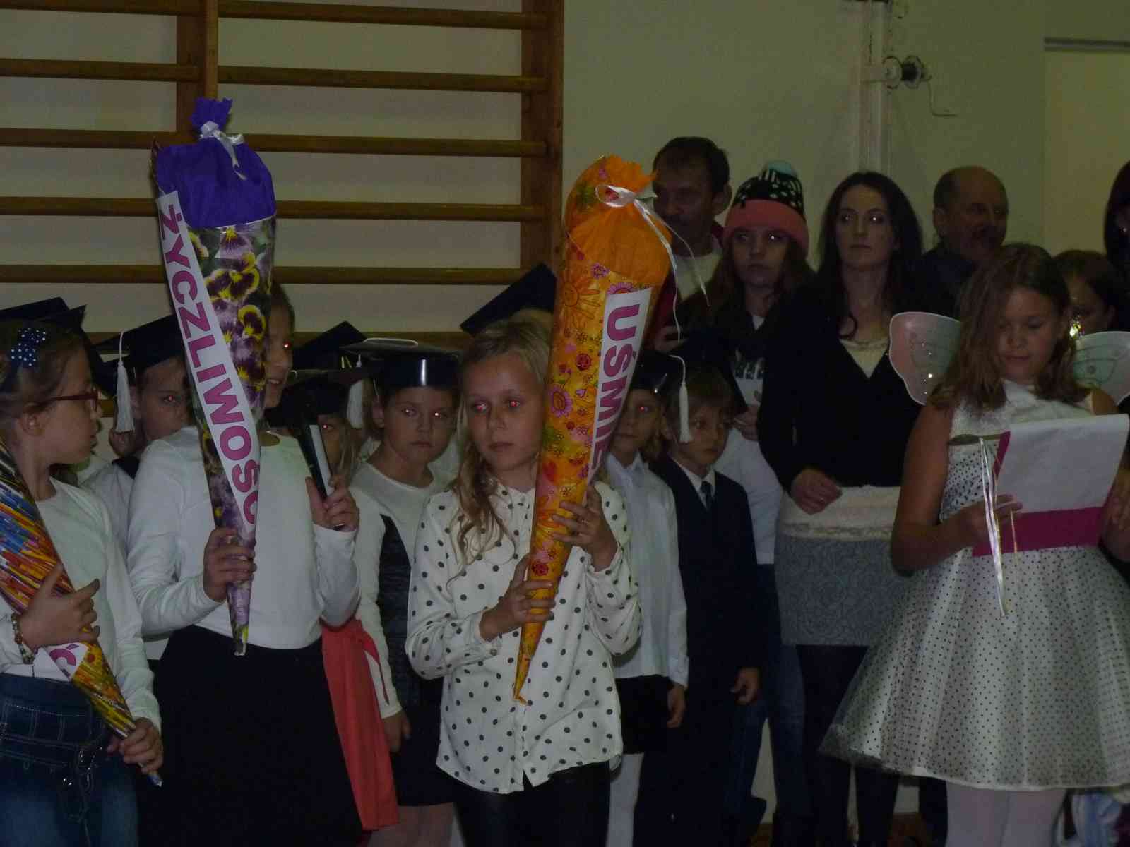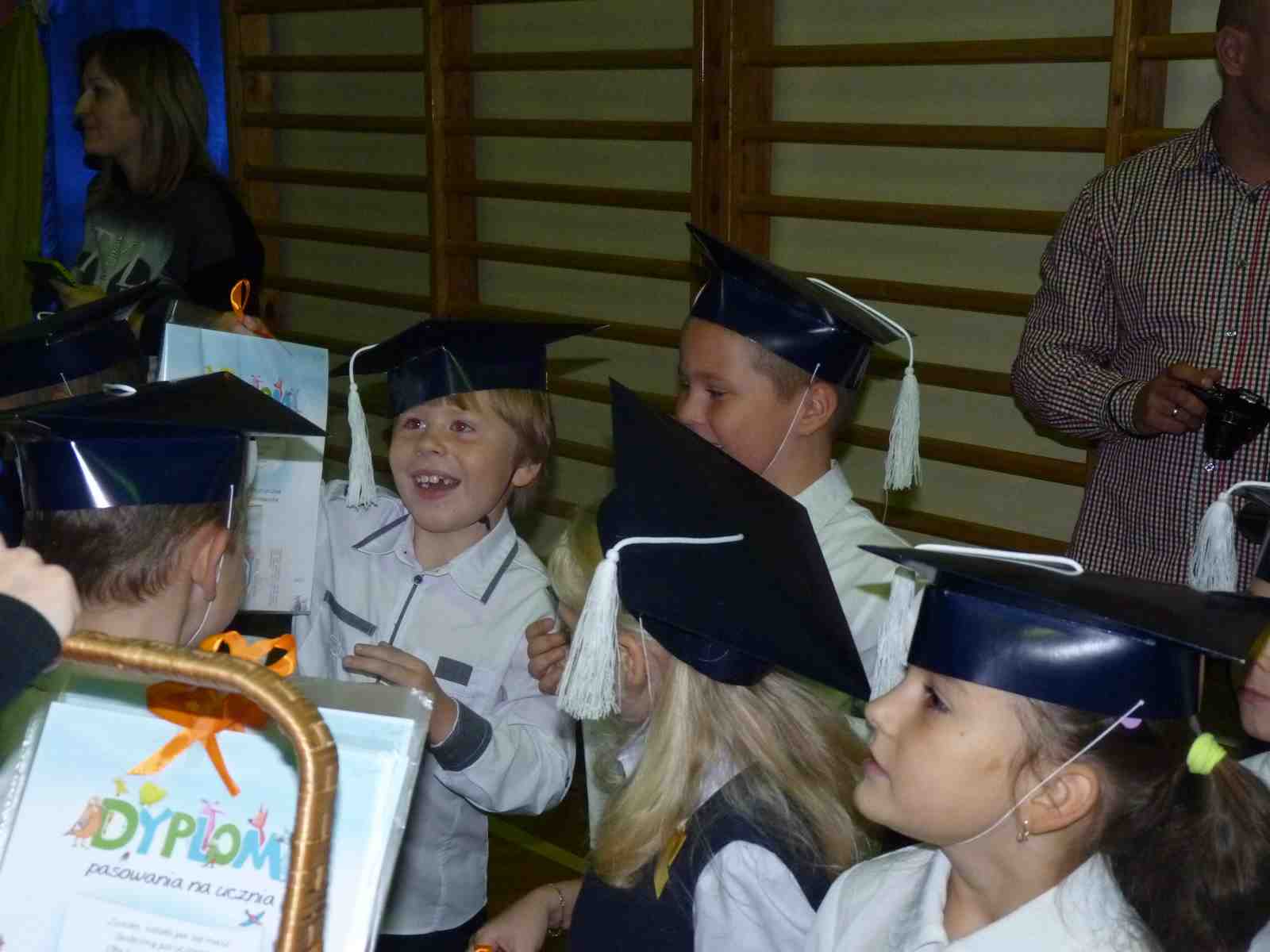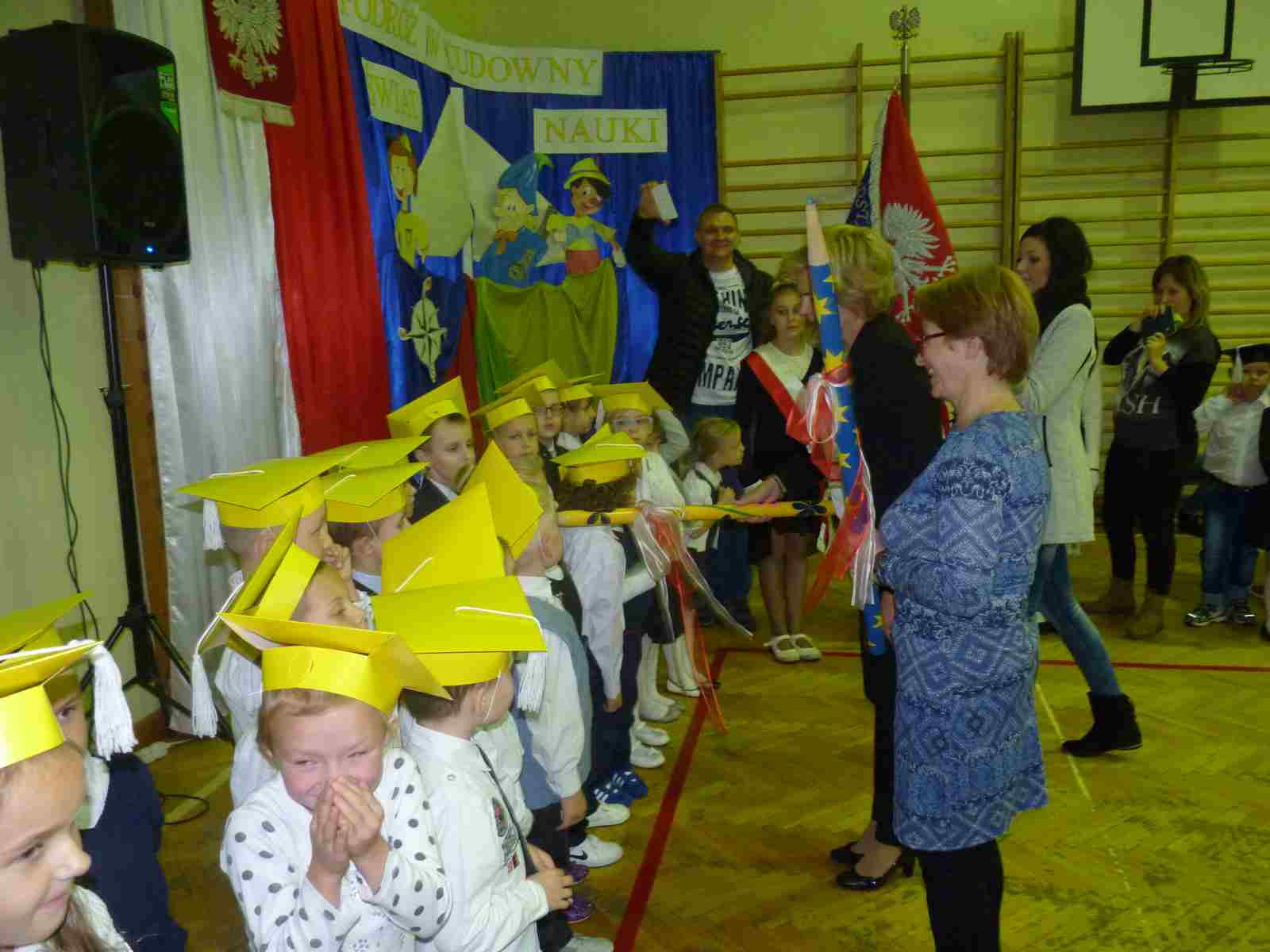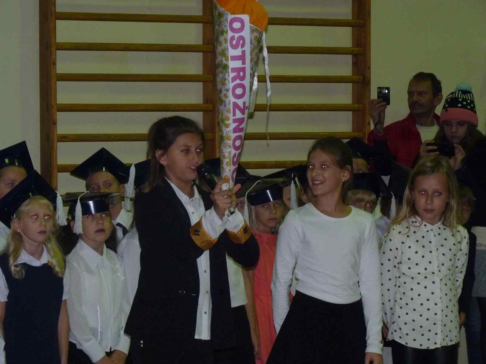 13 października przed pocztem sztandarowym odbyło się ślubowanie i pasowanie na pierwszoklasistów. Od tej chwili dzieci weszły oficjalnie do grona uczniów naszej szkoły.