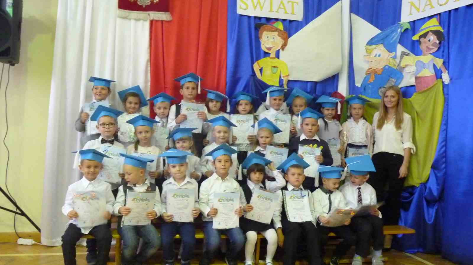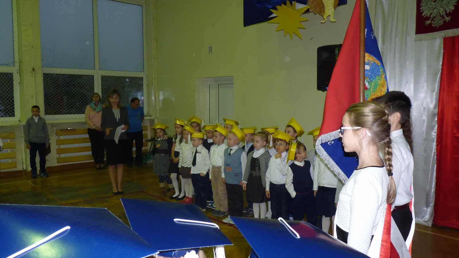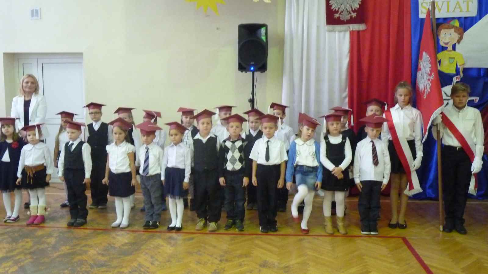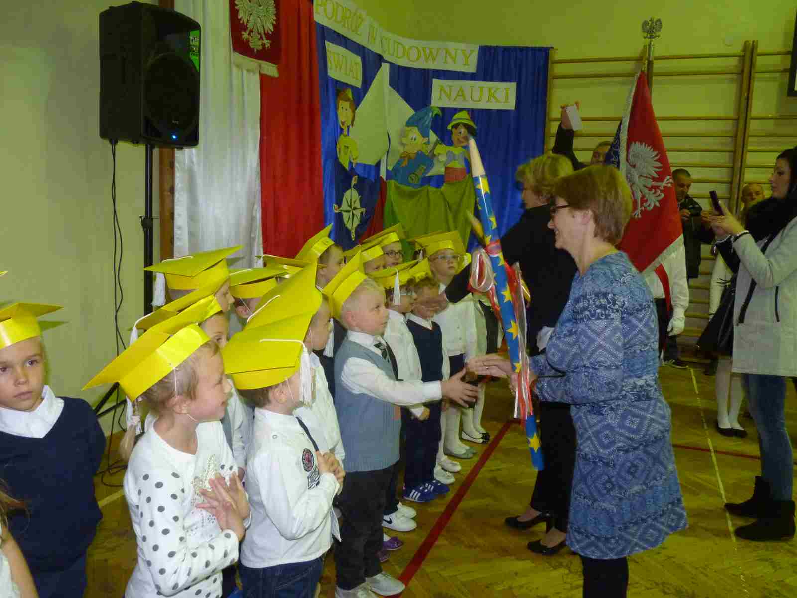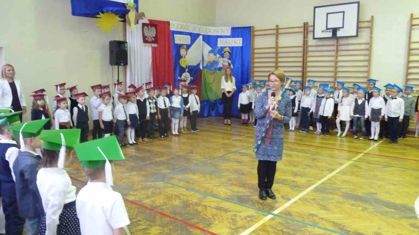 13 października przed pocztem sztandarowym odbyło się ślubowanie i pasowanie na pierwszoklasistów. Od tej chwili dzieci weszły oficjalnie do grona uczniów naszej szkoły.