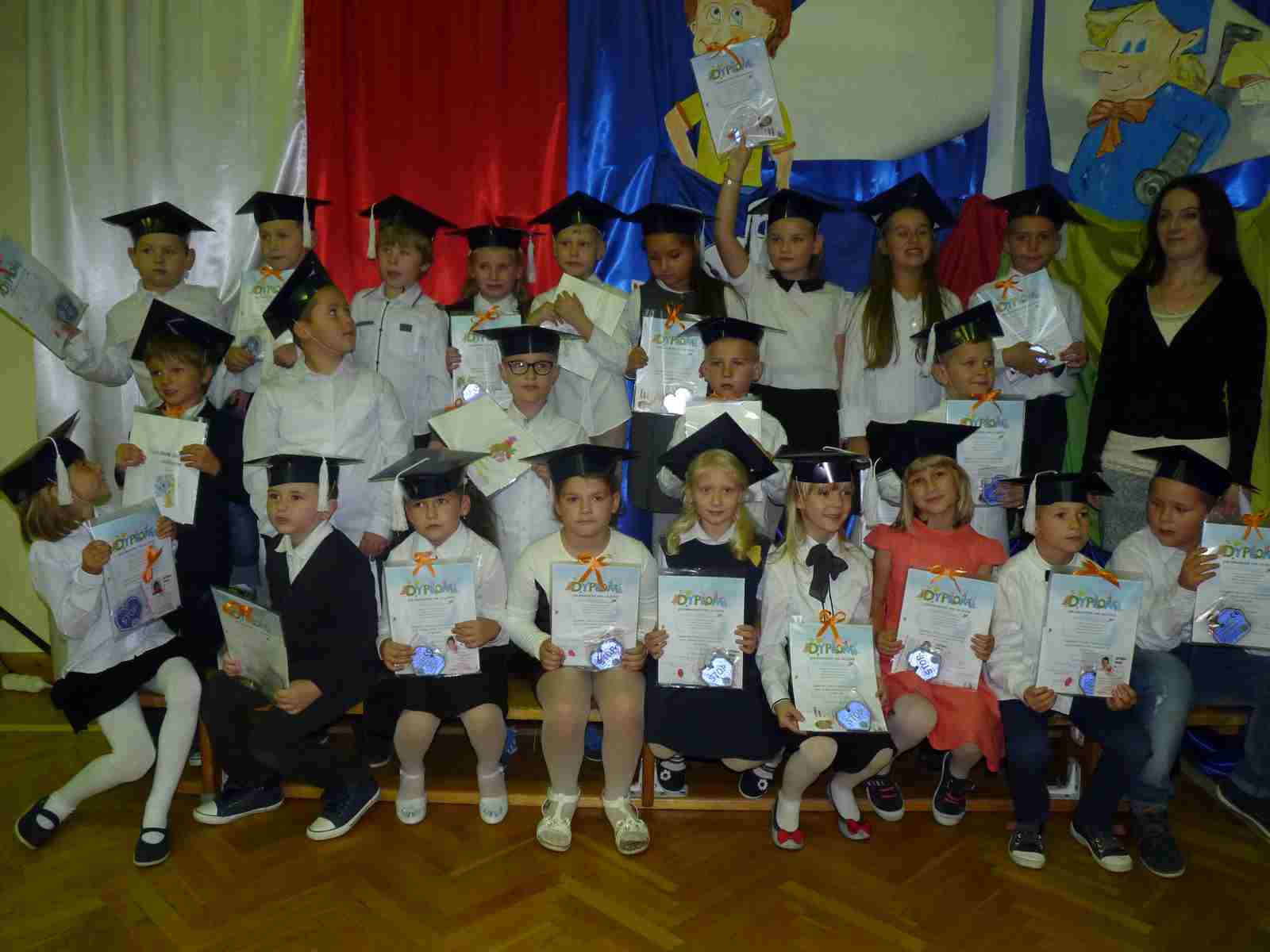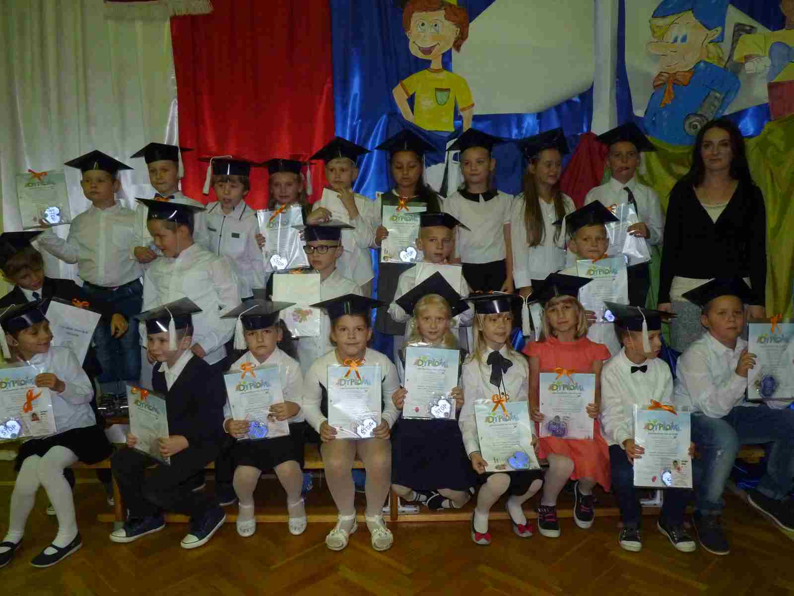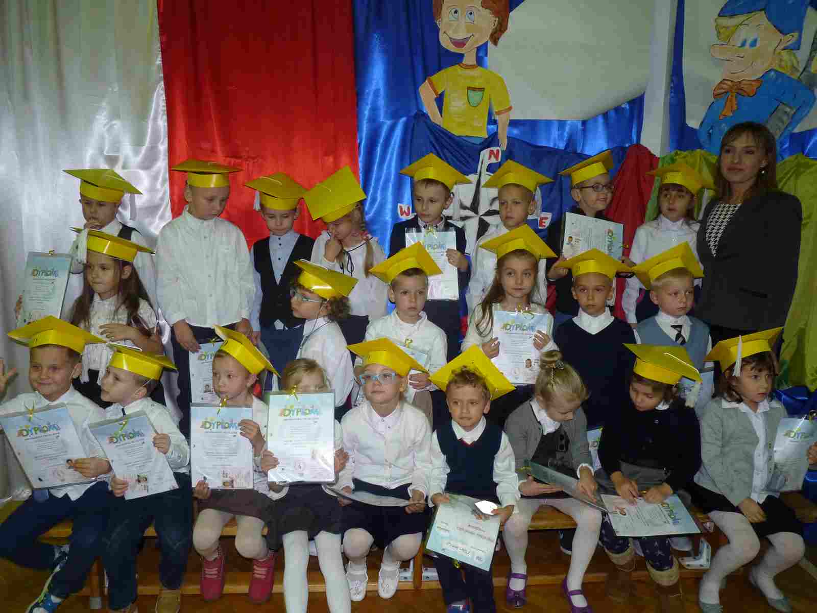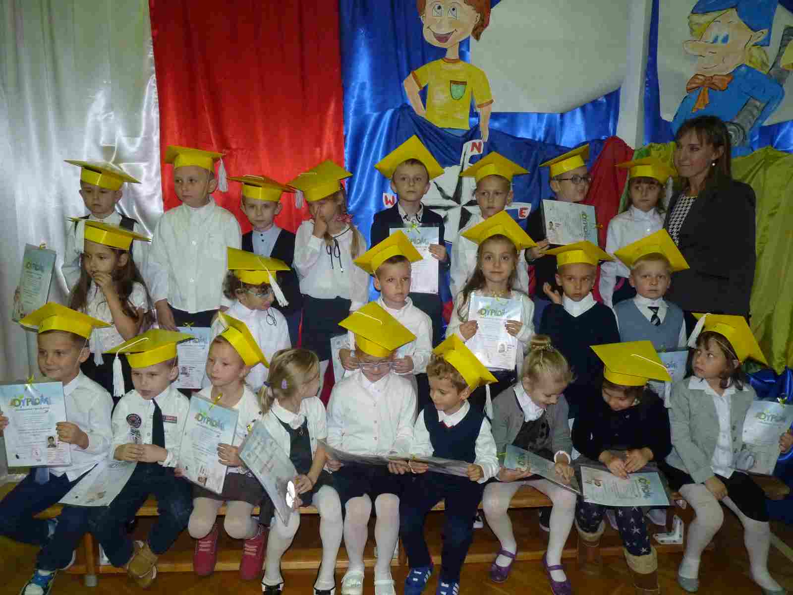 13 października przed pocztem sztandarowym odbyło się ślubowanie i pasowanie na pierwszoklasistów. Od tej chwili dzieci weszły oficjalnie do grona uczniów naszej szkoły.