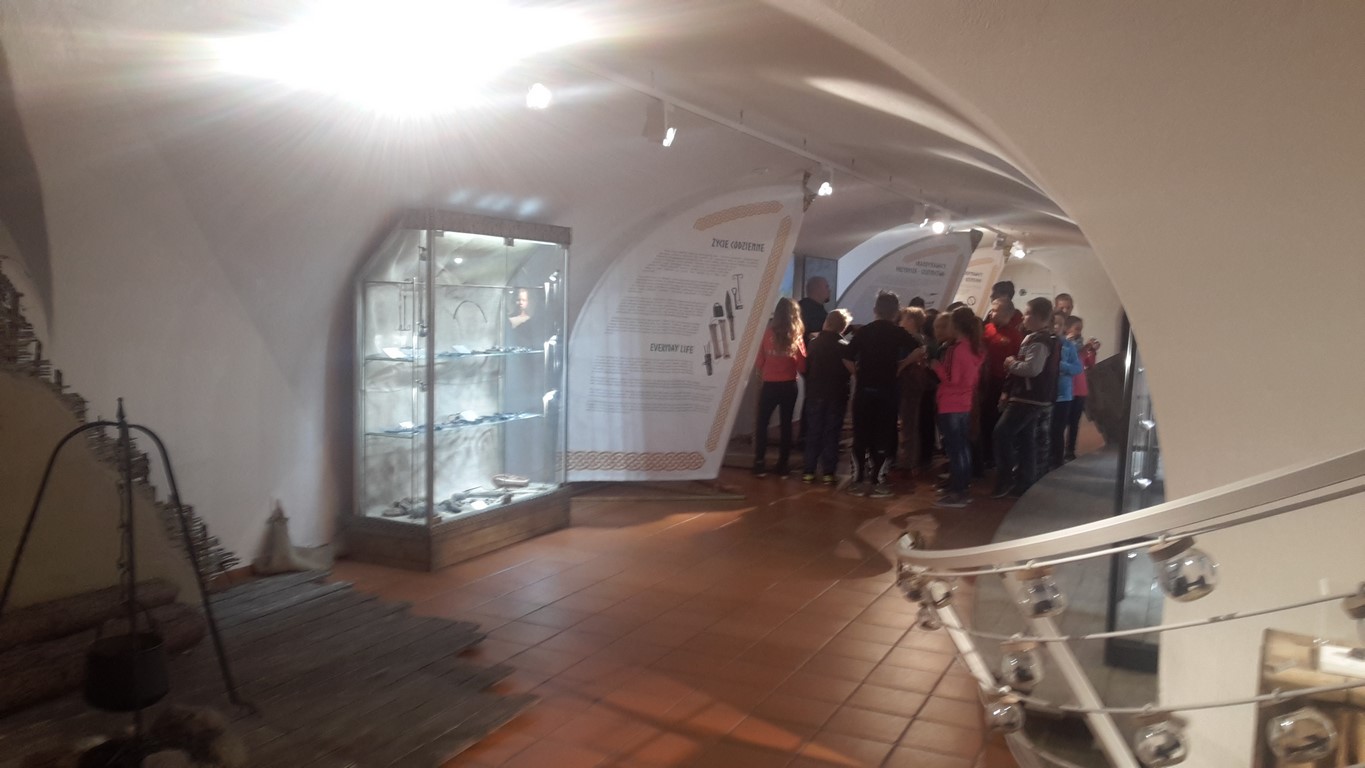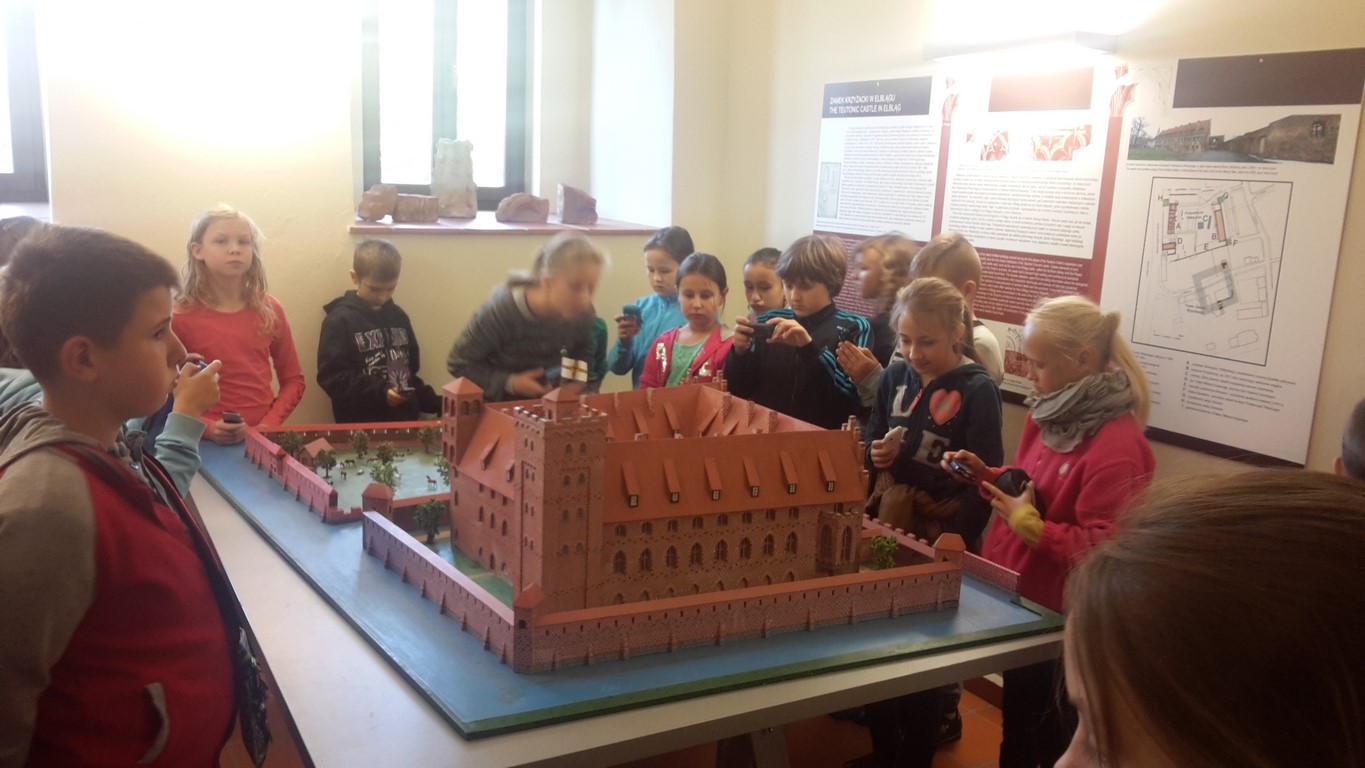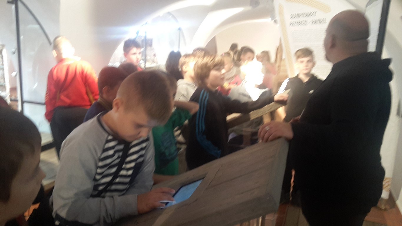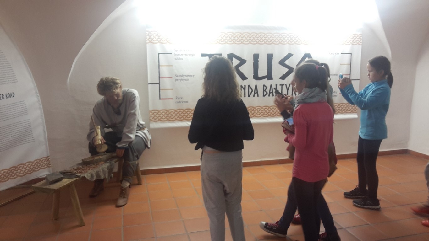 Następnie oglądaliśmy ciekawe eksponaty pochodzące z dwóch stanowisk archeologicznych: Starego Miasta w Elblągu i dawnej osady handlowej Truso w Muzeum Archeologiczno – Historycznym . Prowadzone od ponad 20 lat na terenie Starego Miasta prace wykopaliskowe sprawiają, że z każdym rokiem zbiory muzealne powiększają się o tysiące kolejnych przedmiotów wykonanych z ceramiki, metalu, drewna, skóry, bursztynu, szkła itp. Niektóre z tych przedmiotów są ewenementami na skalę europejską jak chociażby kolekcja średniowiecznych instrumentów muzycznych, znaków pielgrzymich, tablic woskowych używanych kiedyś jako pomoc dydaktyczna.