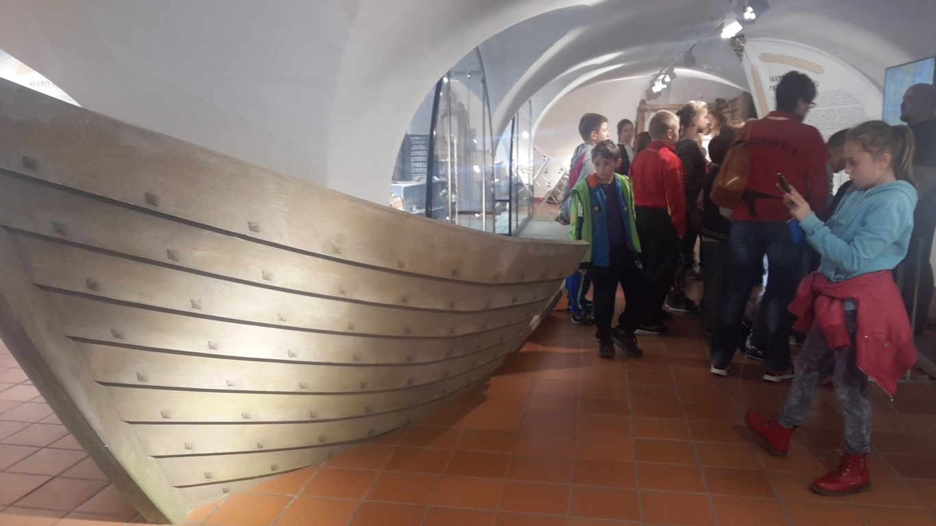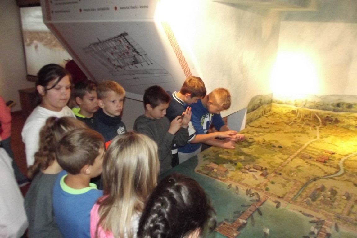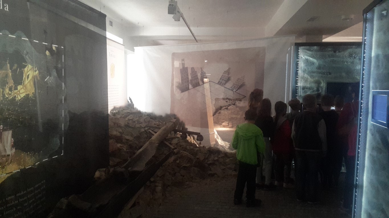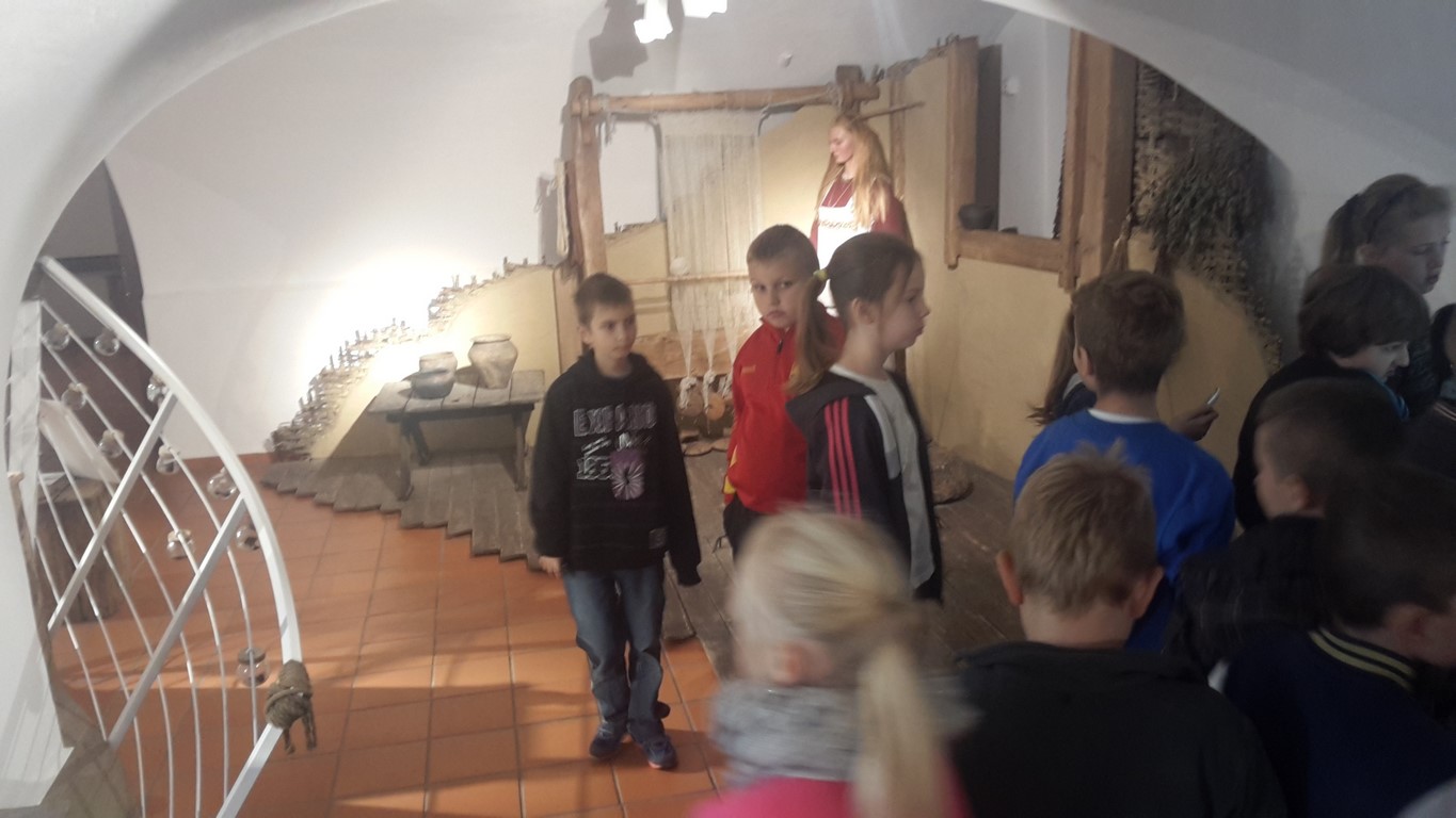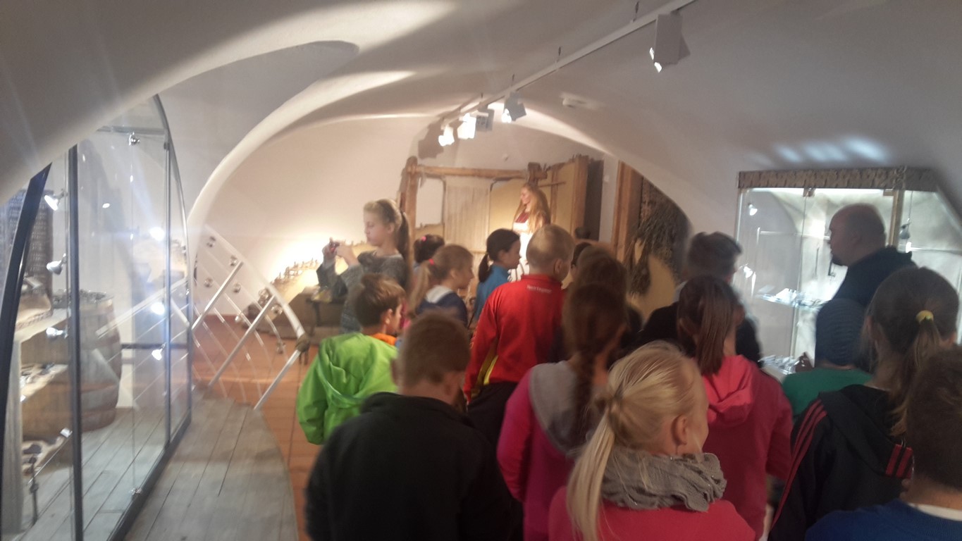 Następnie oglądaliśmy ciekawe eksponaty pochodzące z dwóch stanowisk archeologicznych: Starego Miasta w Elblągu i dawnej osady handlowej Truso w Muzeum Archeologiczno – Historycznym . Prowadzone od ponad 20 lat na terenie Starego Miasta prace wykopaliskowe sprawiają, że z każdym rokiem zbiory muzealne powiększają się o tysiące kolejnych przedmiotów wykonanych z ceramiki, metalu, drewna, skóry, bursztynu, szkła itp. Niektóre z tych przedmiotów są ewenementami na skalę europejską jak chociażby kolekcja średniowiecznych instrumentów muzycznych, znaków pielgrzymich, tablic woskowych używanych kiedyś jako pomoc dydaktyczna.