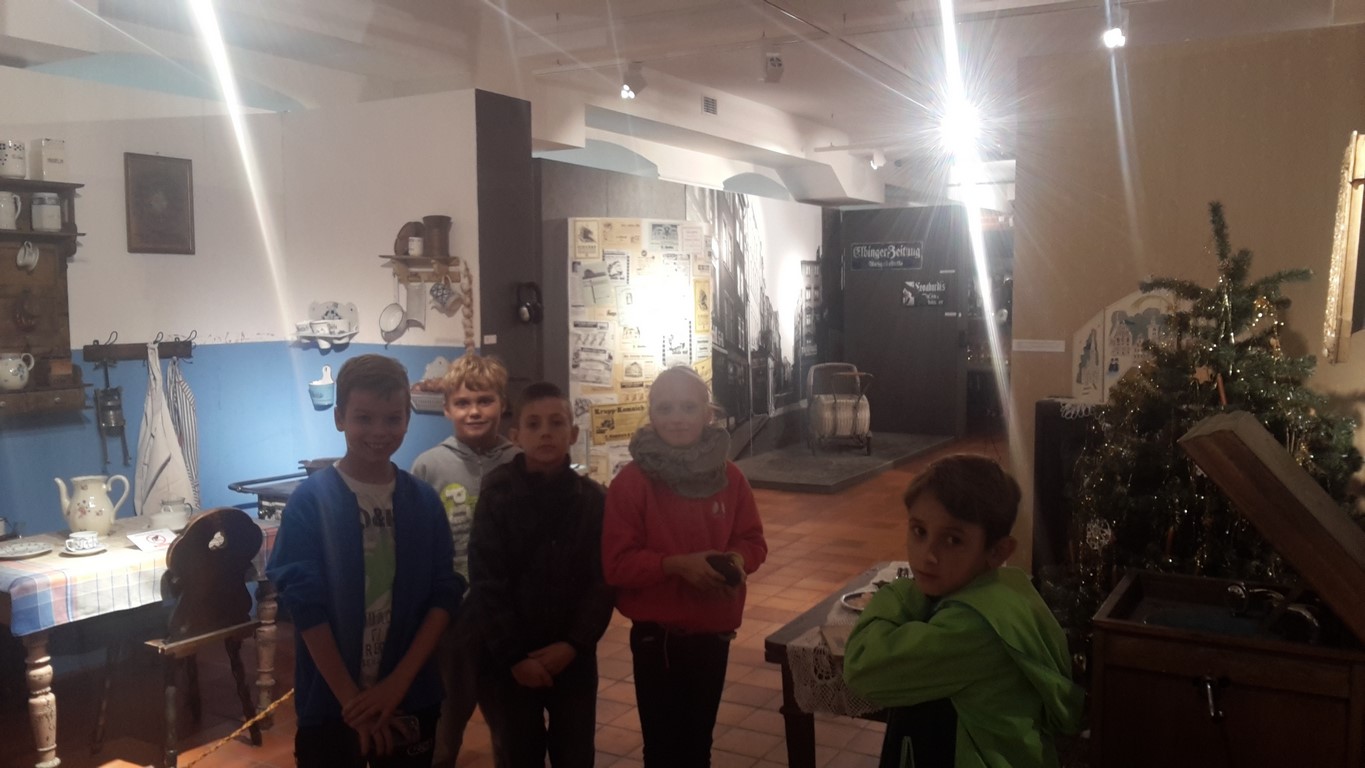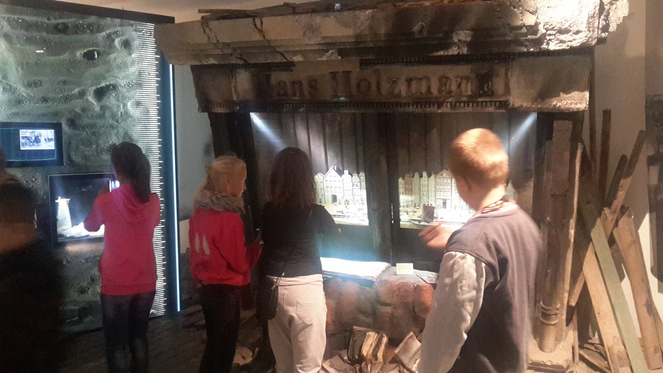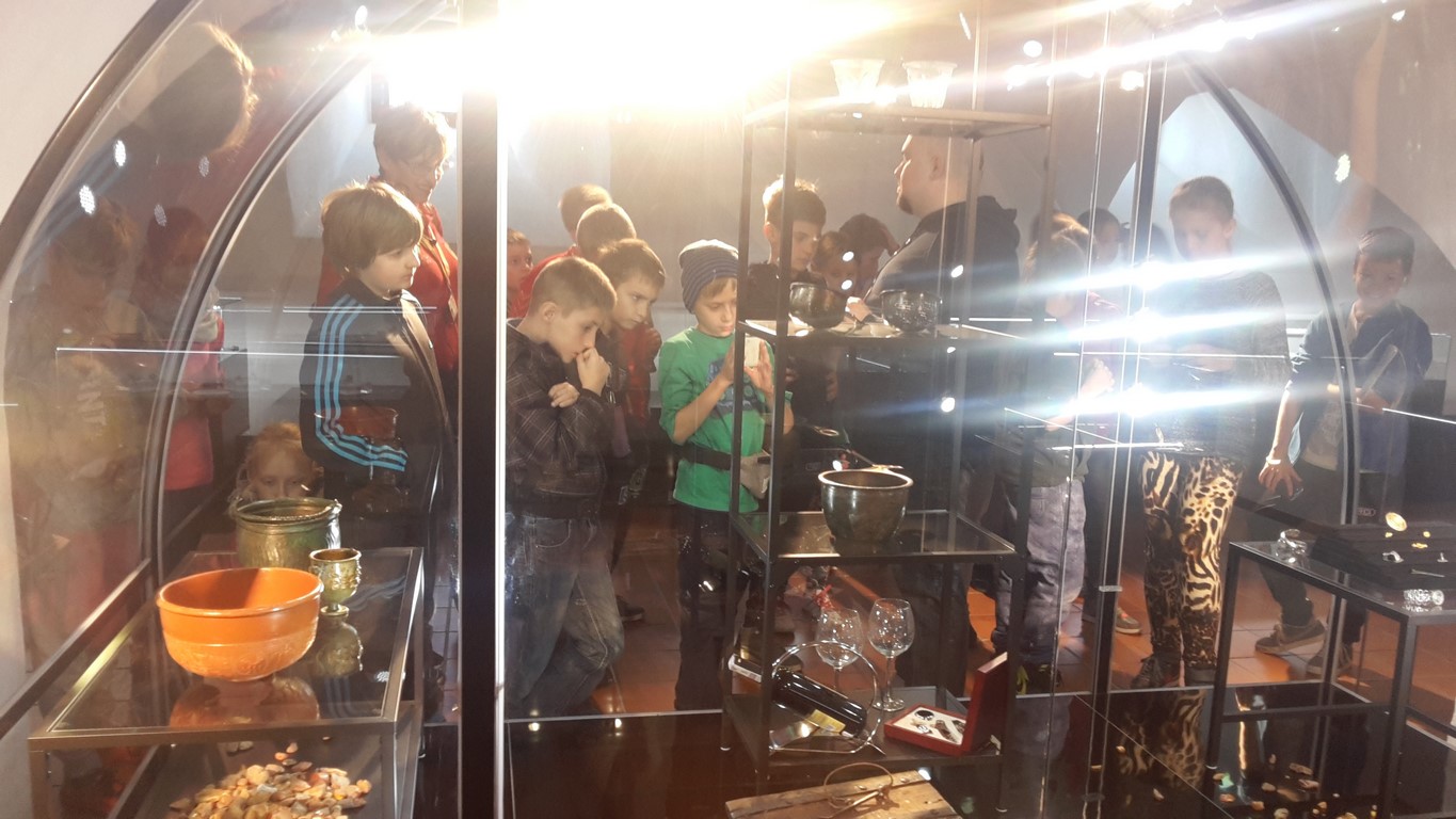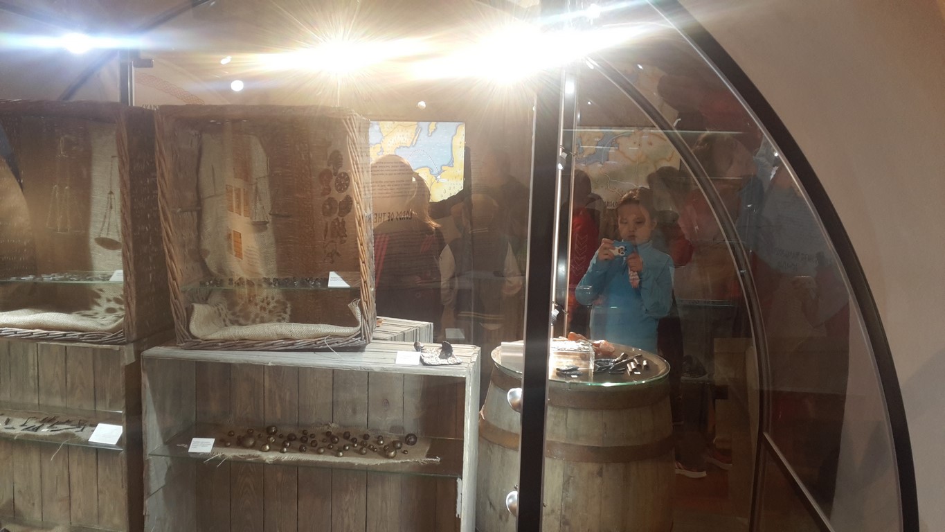 Następnie oglądaliśmy ciekawe eksponaty pochodzące z dwóch stanowisk archeologicznych: Starego Miasta w Elblągu i dawnej osady handlowej Truso w Muzeum Archeologiczno – Historycznym . Prowadzone od ponad 20 lat na terenie Starego Miasta prace wykopaliskowe sprawiają, że z każdym rokiem zbiory muzealne powiększają się o tysiące kolejnych przedmiotów wykonanych z ceramiki, metalu, drewna, skóry, bursztynu, szkła itp. Niektóre z tych przedmiotów są ewenementami na skalę europejską jak chociażby kolekcja średniowiecznych instrumentów muzycznych, znaków pielgrzymich, tablic woskowych używanych kiedyś jako pomoc dydaktyczna.