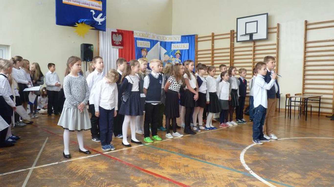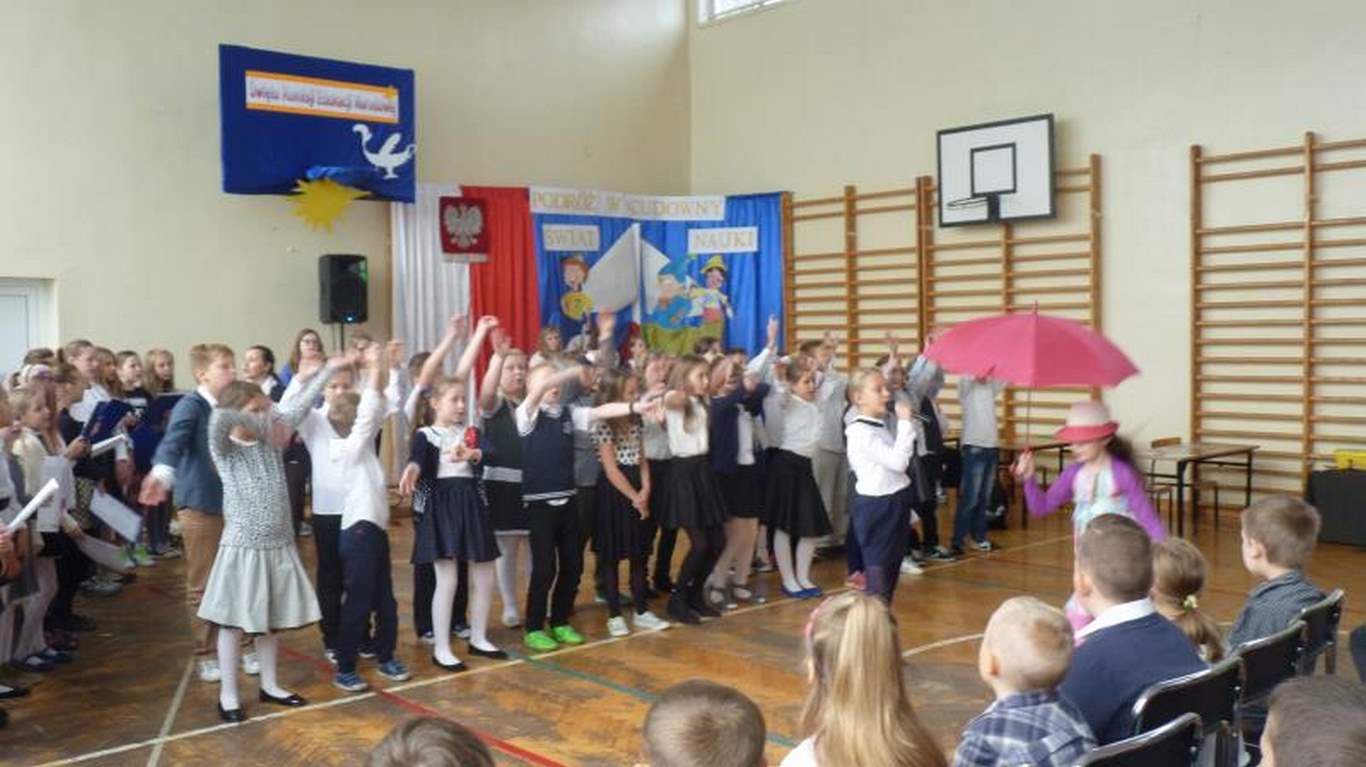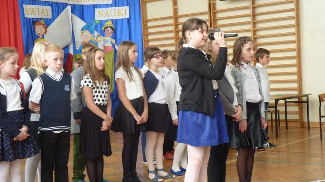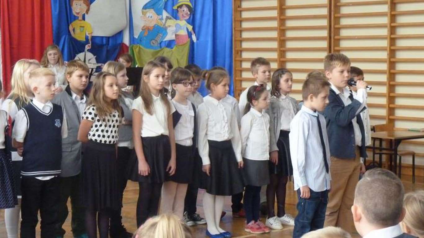 Uczniowie poezją, piosenką, scenkami rodzajowymi z życia szkoły uczcili ten dzień, prezentując się przed całą społecznością uczniowską (kl. I- VI, nauczyciele, pracownicy obsługi i administracji). Nie obyło się bez życzeń kierowanych do nauczycieli i wszystkich pracowników placówki. Tło muzyczne, które, jak zwykle, było przygotowane przez chór szkolny, dopełniło całej atmosfery uroczystości.