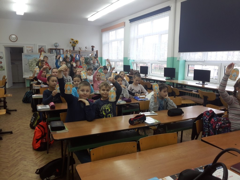 W efekcie naszych dywagacji i prezentacji doświadczeń postanowiliśmy rozpocząć od siebie. W tym celu otrzymaliśmy upominki , które mają nam pomagać pamiętać o rozsądnym korzystaniu z wody, segregacji śmieci, oszczędzaniu energii..