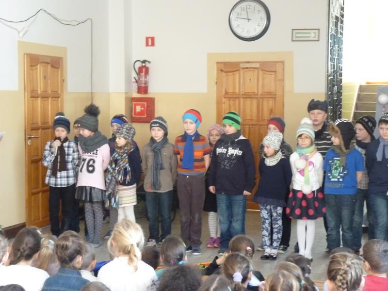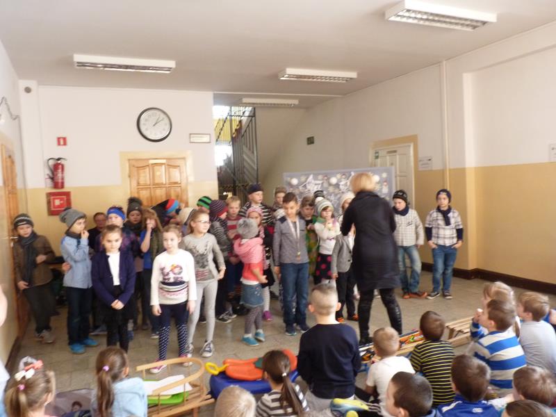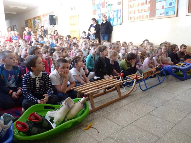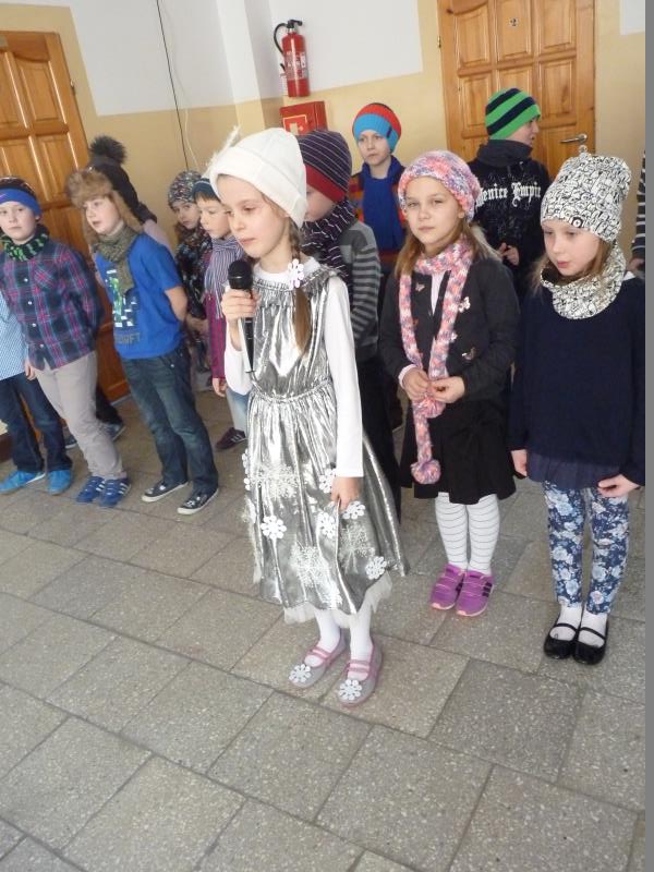 Zbliża się czas ferii zimowych, czas wypoczynku i zabaw na śniegu. Na szczęście śniegu trochę napadało i dzieci mogą się nim cieszyć. W naszej szkole uczniowie klasy IId przygotowali apel na temat bezpieczeństwa zabaw zimowych. Były wiersze, piosenki i tańce. Nieoczekiwanie na apelu pojawiła się Pani Zima. Przyszła dowiedzieć się czy dzieci są gotowe rozpocząć ferie zimowe, czy wiedzą jak bezpiecznie bawić się na śniegu i lodzie. Egzamin wypadł znakomicie. Dzieci wykazały się dużą wiedzą na ten temat. Pani Zima ogłosiła uroczyście, że ferie zimowe rozpoczęte. Za udany egzamin każde dziecko w naszej szkole otrzymało znaczek odblaskowy od fundacji ,,Stop wariatom drogowym".