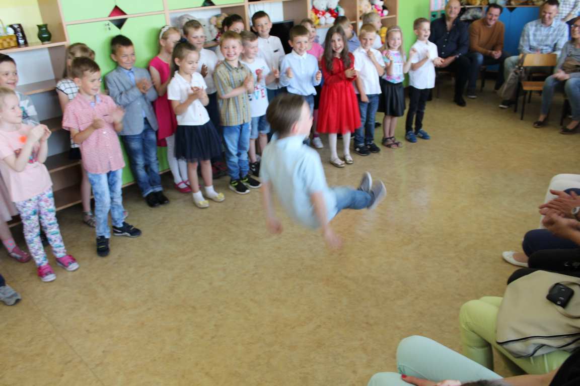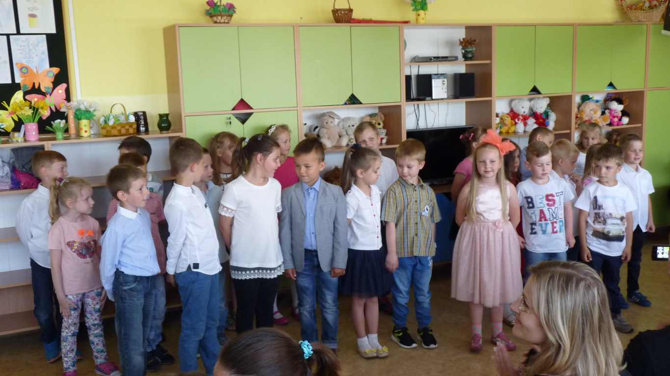 Dnia 13 czerwca 2016 roku dzieci z klasy 1b zaprezentowały program artystyczny dla rodziców oraz wręczyły prezenty przygotowane na zajęciach plastycznych. Pyszna kawa, soczek dla dzieci i słodki poczęstunek umiliły rodzinne spotkanie.