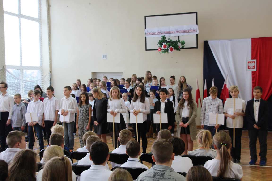 10.11.2016. uczniowie kl. VI B wraz z chórem szkolnym oddali hołd nie tylko Tym, którzy polegli za wolność Ojczyzny, ale również wszystkim, którzy w różnorodny sposób się do tego przyczynili. Byli to często anonimowi Rodacy, dla których takie słowa, jak : Bóg, Honor, Ojczyzna znaczyły więcej niż ich dobro osobiste, gdyż zniewolenie zabiera godność. Były piękne wiersze i wzruszające pieśni patriotyczne; apel miał wyjątkowo uroczysty charakter.