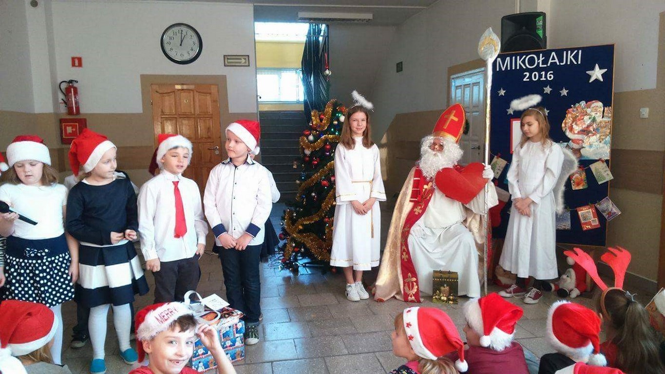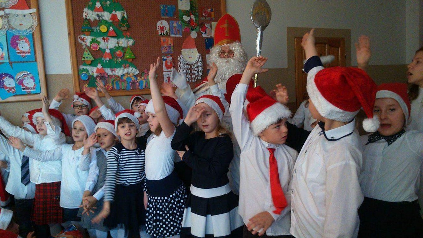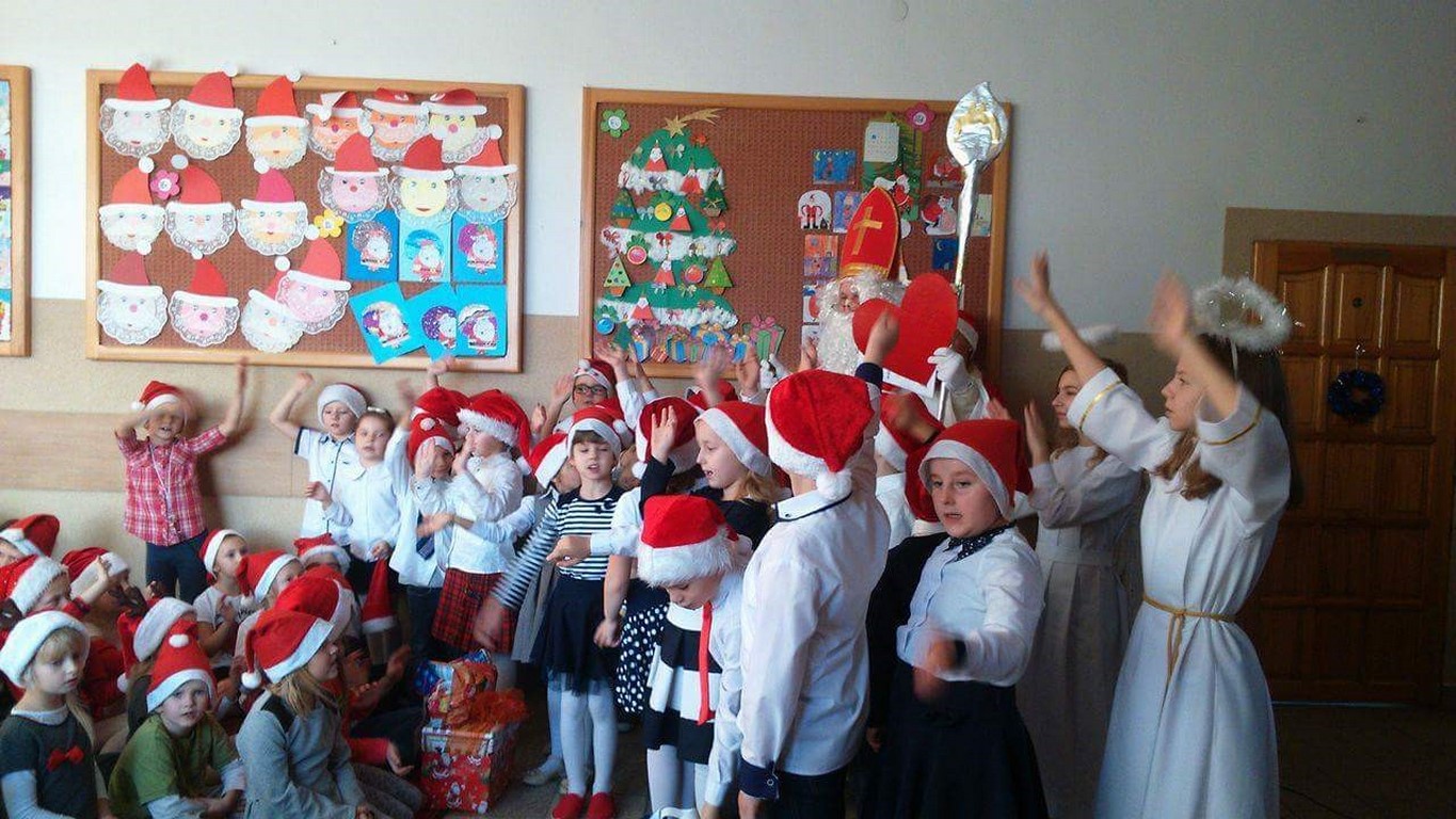6 grudnia tradycyjnie naszą szkołę odwiedził Świety Mikołaj! Program artystyczny na przywitanie dostojnego gościa przygotowała klasa IId. Wszystkie dzieci były bardzo podekscytowane i szczęśliwe. Pięknie śpiewały mikołajkowe piosenki. Na koniec Mikołaj obdarował je wyczekiwanymi prezentami!