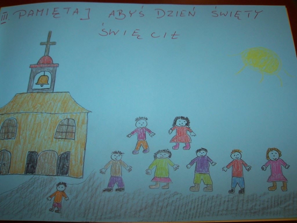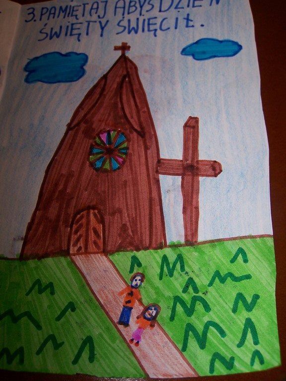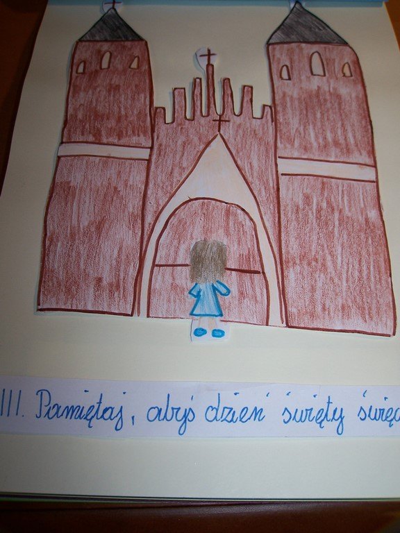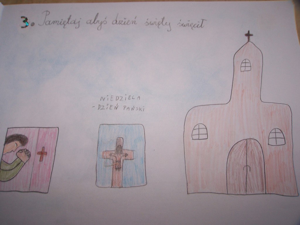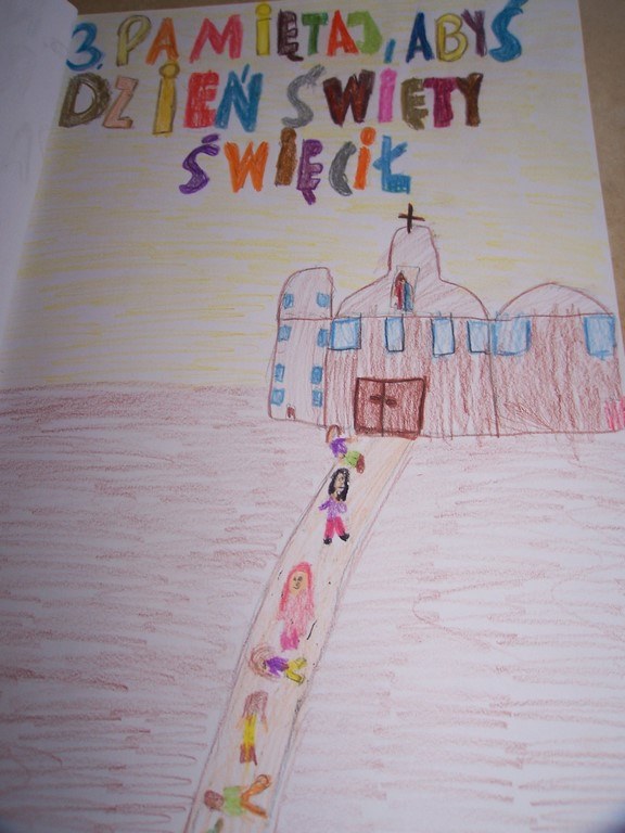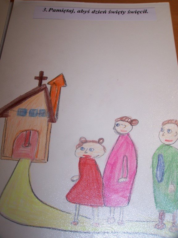 Uczniowie klas III, przygotowujący się do Pierwszej Komunii Świętej, poznawali na lekcjach religii 10 przykazań Bożych. Podsumowaniem tego cyklu katechez było wykonanie albumu o Bożych drogowskazach. Na zdjęciach można obejrzeć wybrane prace dzieci.