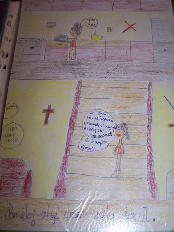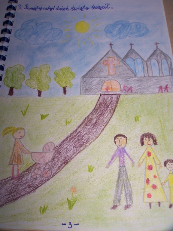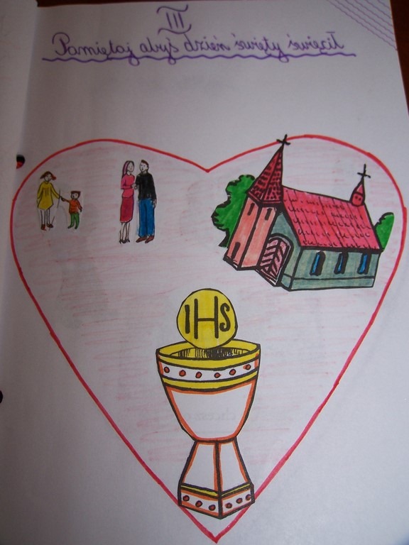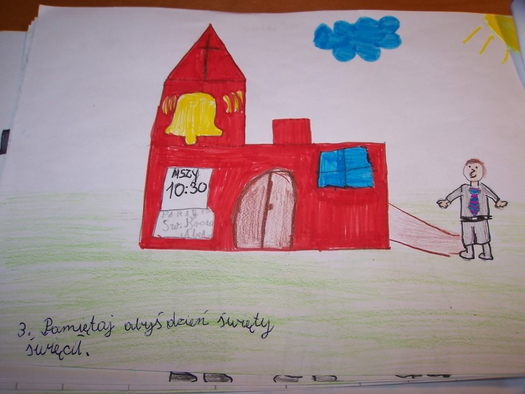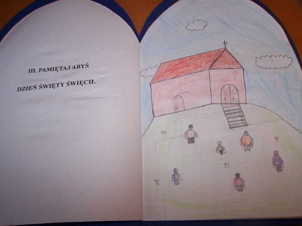 Uczniowie klas III, przygotowujący się do Pierwszej Komunii Świętej, poznawali na lekcjach religii 10 przykazań Bożych. Podsumowaniem tego cyklu katechez było wykonanie albumu o Bożych drogowskazach. Na zdjęciach można obejrzeć wybrane prace dzieci.