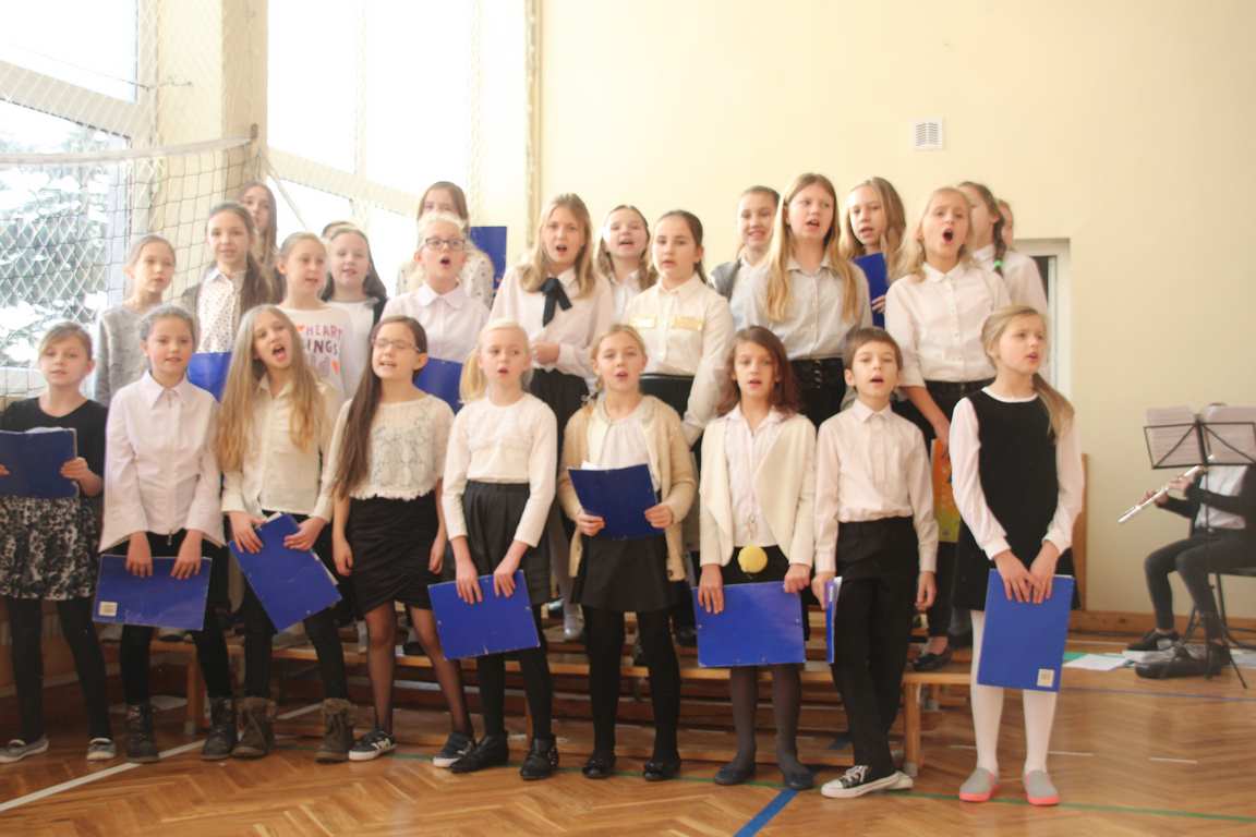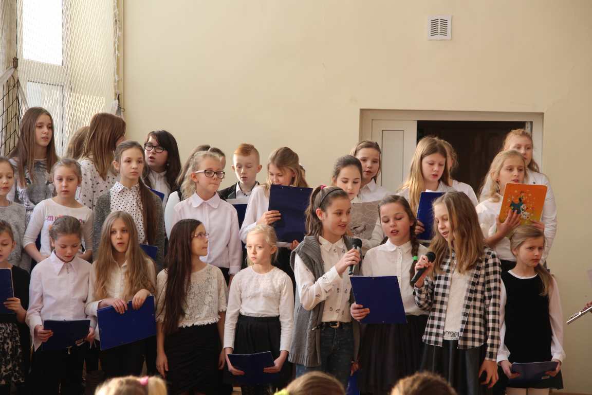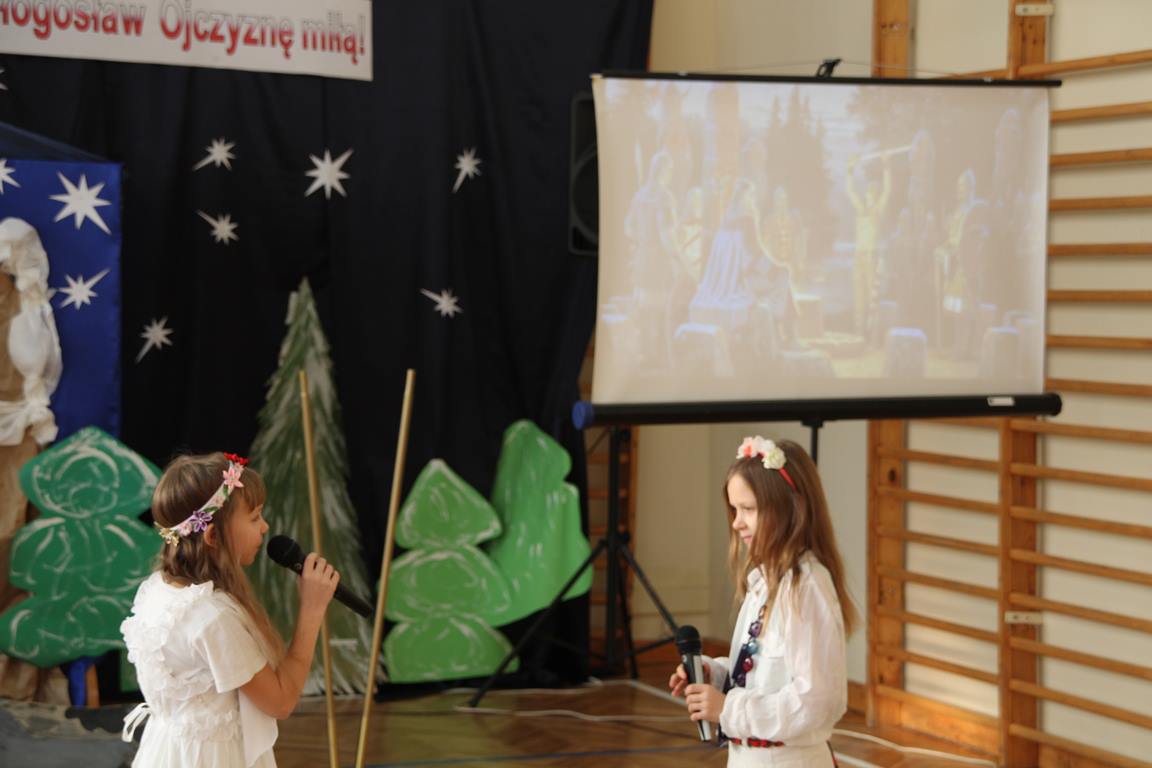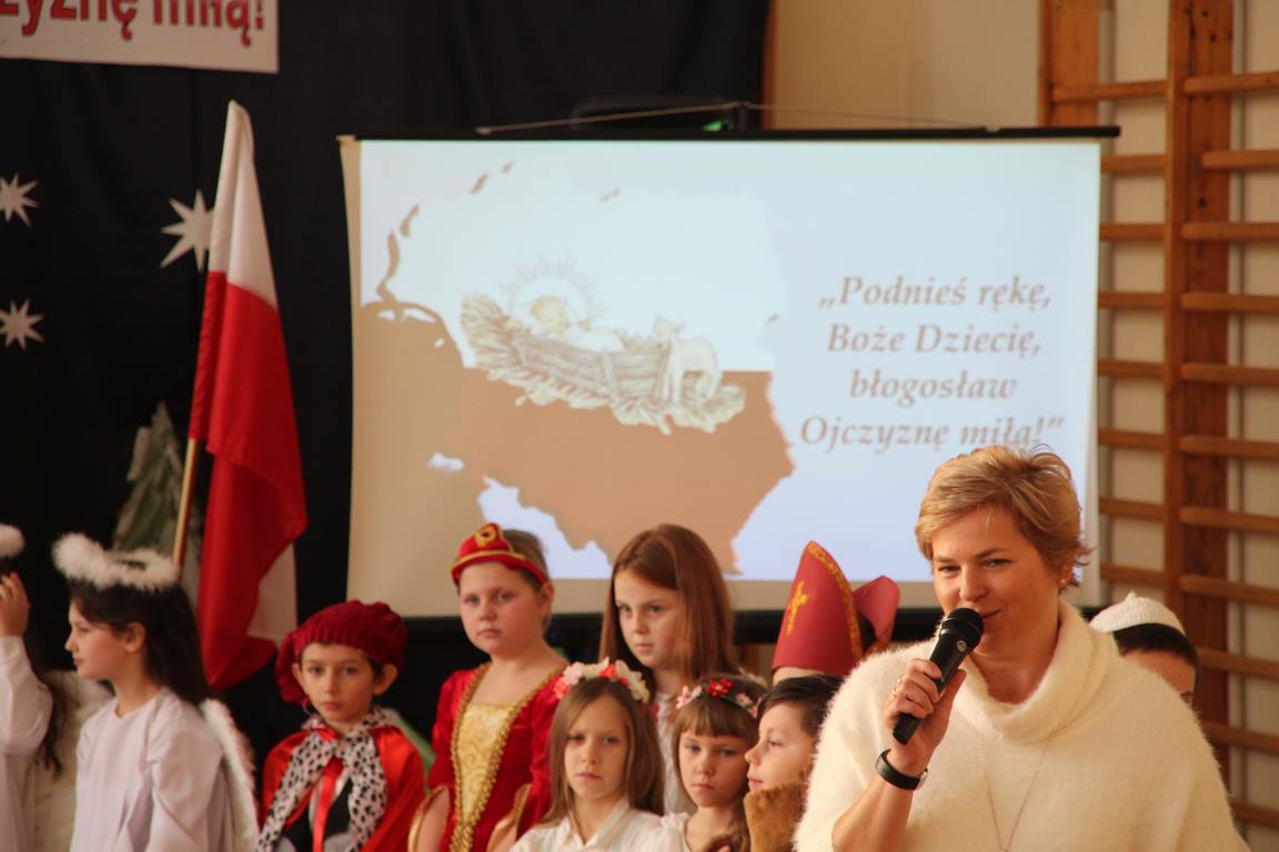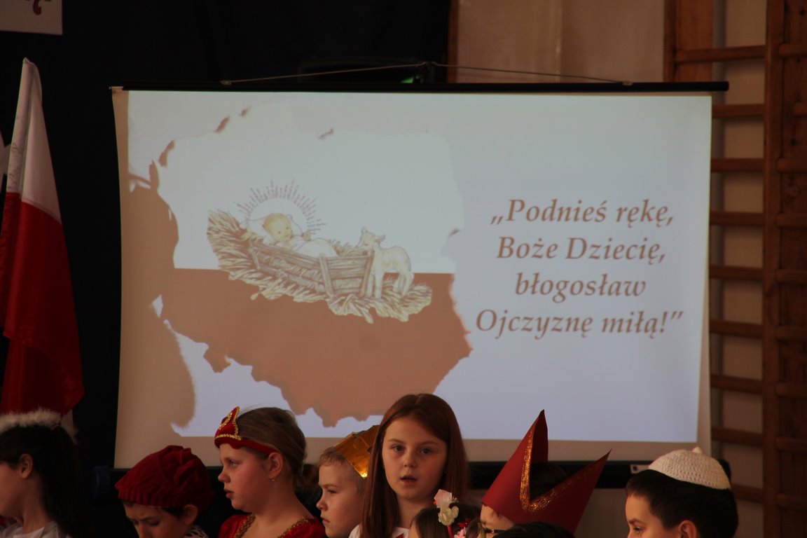 Kolędy i pastorałki śpiewał chór pod kierunkiem p. Marii Nawrott, a prezentację multimedialną przygotowała uczennica klasy V b Wiktoria Wnuk.