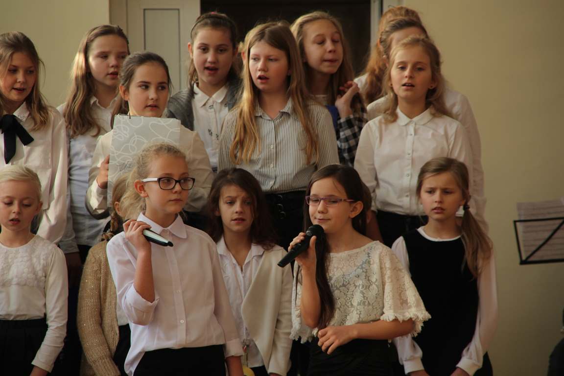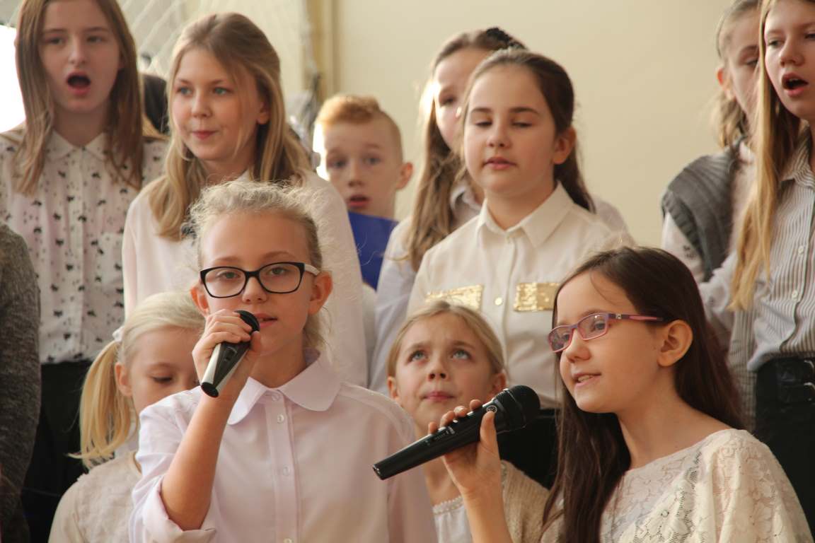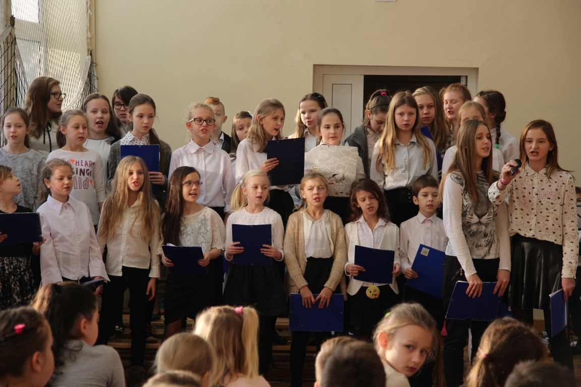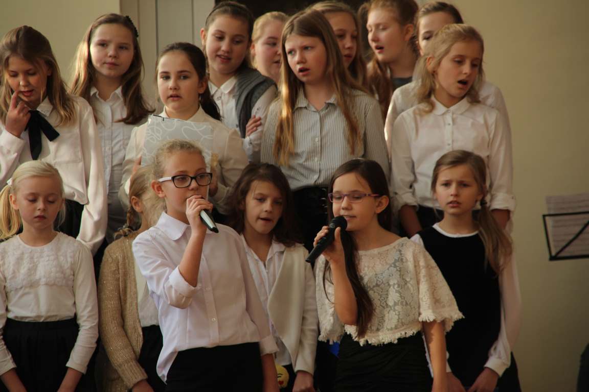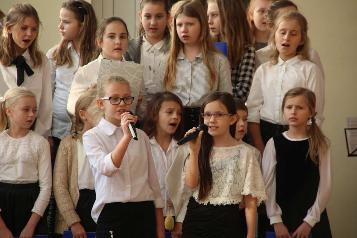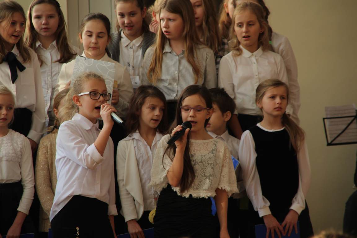 Kolędy i pastorałki śpiewał chór pod kierunkiem p. Marii Nawrott, a prezentację multimedialną przygotowała uczennica klasy V b Wiktoria Wnuk.
