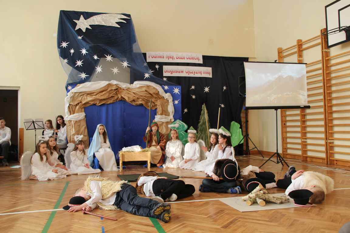 22 grudnia 2016 r. uczniowie naszej szkoły obejrzeli „Jasełka polskie” w wykonaniu swoich koleżanek i kolegów z klas III przygotowanych przez panią katechetkę Iwonę Grubalską.
