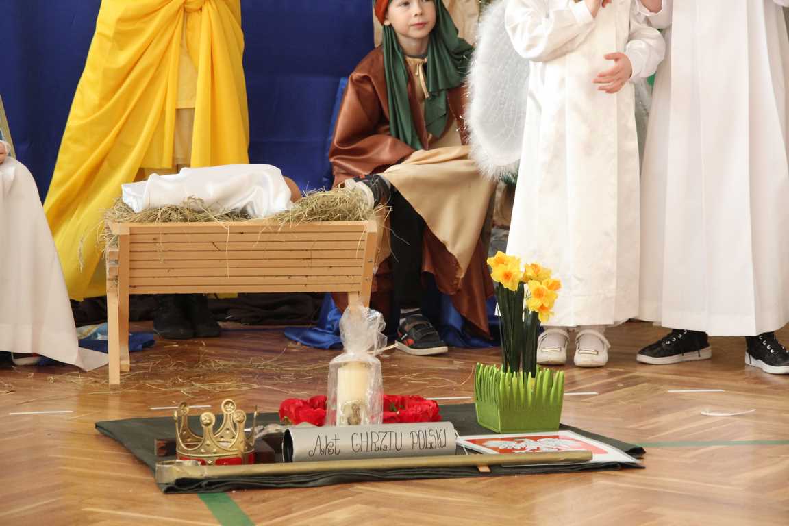 Tym razem Dzieciątku Jezus pokłonili się polscy władcy (książę Mieszko, św. Królowa Jadwiga, św. Królewicz Kazimierz Jagiellończyk) oraz wielcy święci Polacy (św. Brat Albert Chmielowski i św. Jan Paweł II). Wszystkie te postacie z naszej historii łączyła głęboka wiara w Boga i umiłowanie Ojczyzny. Jasełka przypomniały również dzieciom Chrzest Polski, którego 1050. rocznicę przeżywaliśmy w mijającym roku. Jednocześnie wprowadziły w rozpoczynający się 25 grudnia Rok Świętego Brata Alberta, który wzywał nas, abyśmy „byli dobrzy, jak chleb”.