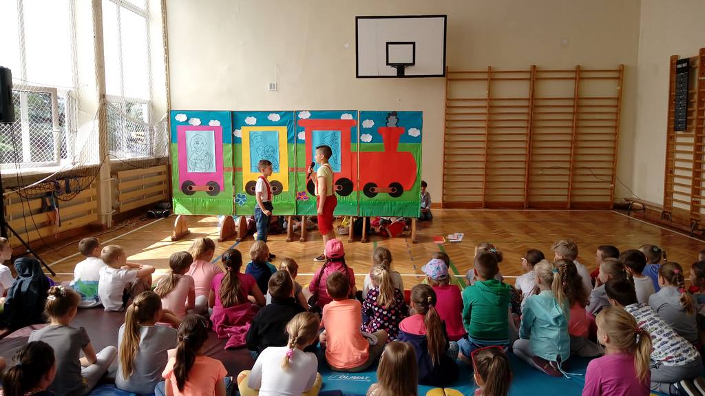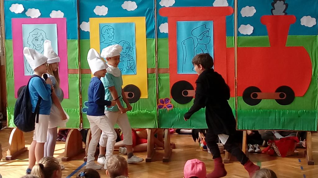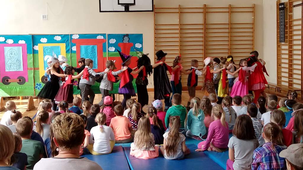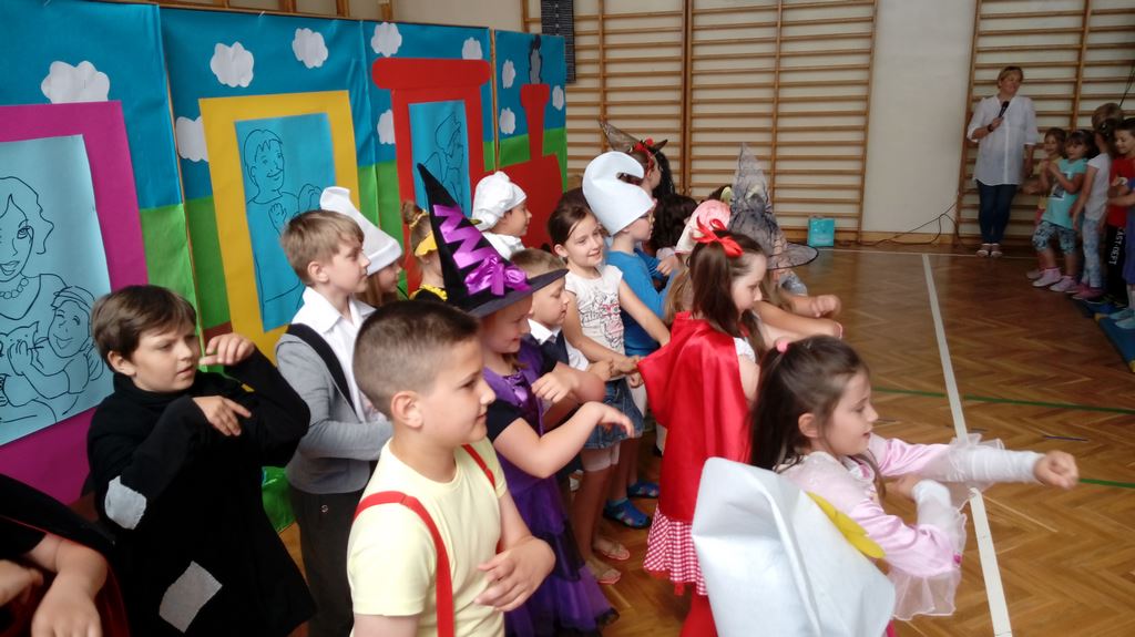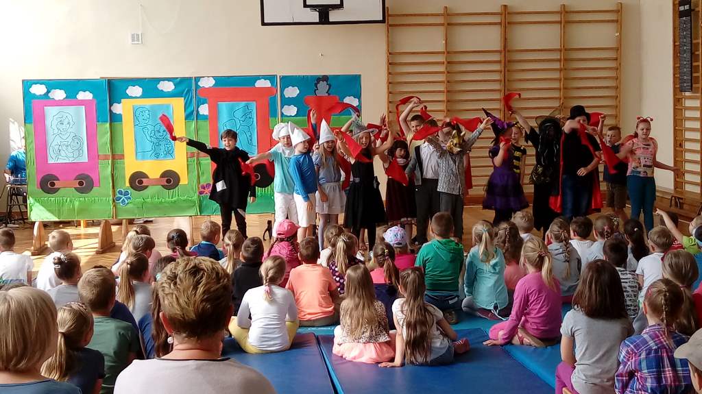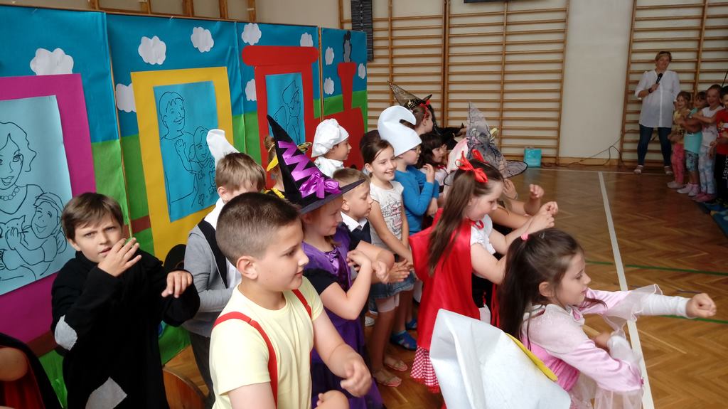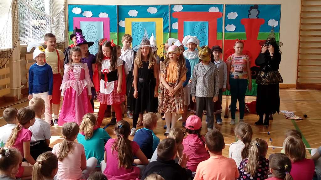 Uczniowie klas I-III mogli obejrzeć przedstawienia przygotowane przez kolegów. Mali artyści z klasy IIE pod opieką p. Pauliny Smolińskiej zaprezentowali przepiękną podróż po czarodziejskim świecie bajek. Natomiast aktorzy z kl. IIID pod okiem p. Marioli Garbino wystawili spektakl pt. "Baśniowy Ambaras".