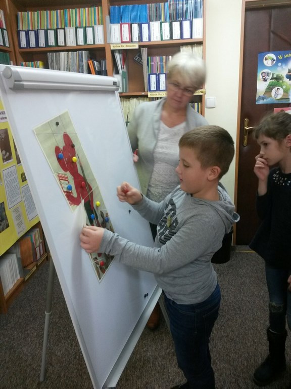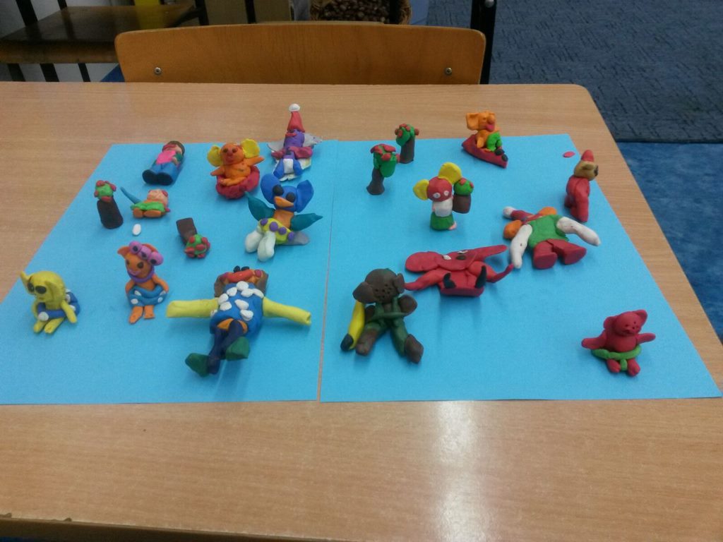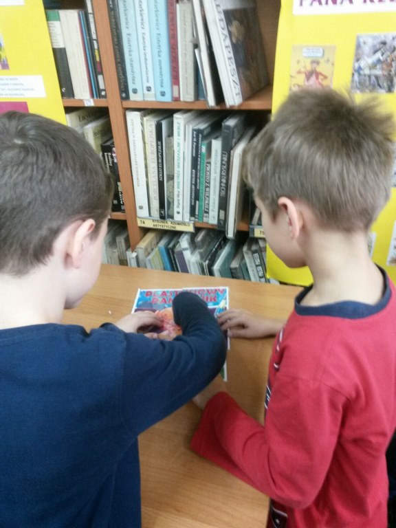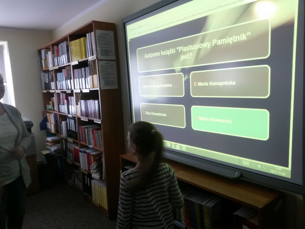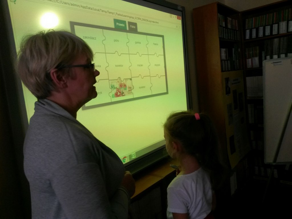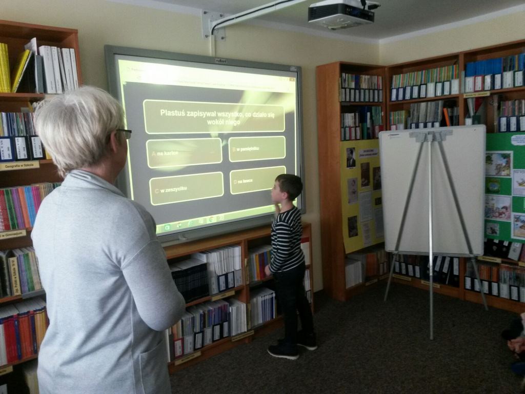Wyświetlone zdjęcia i slajdy pokazały przybory szkolne i szkołę z czasów Tosi i Plastusia. Dzieci sprawdziły swoją wiedzę uczestnicząc w grze "Milionerzy", rozwiązując wiele interaktywnych zadań o Plastusiu, układając w grupach tematyczne puzzle. Po powrocie do szkoły ulepiły plastelinowgo ludka podsumowując w ten sposób piątkowe zajęcia.