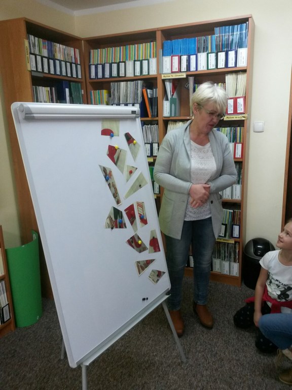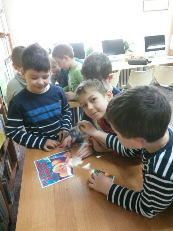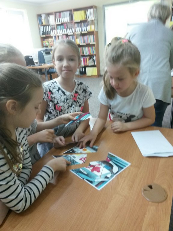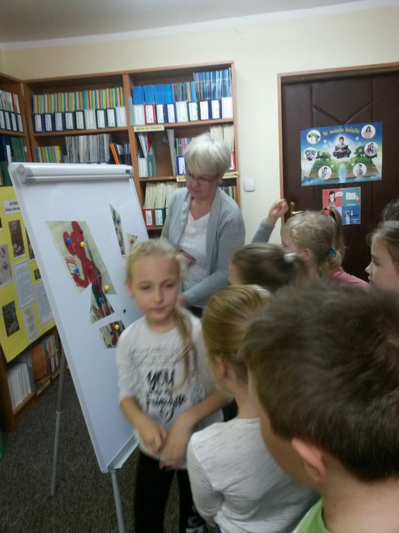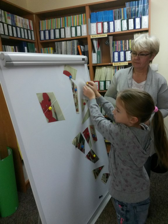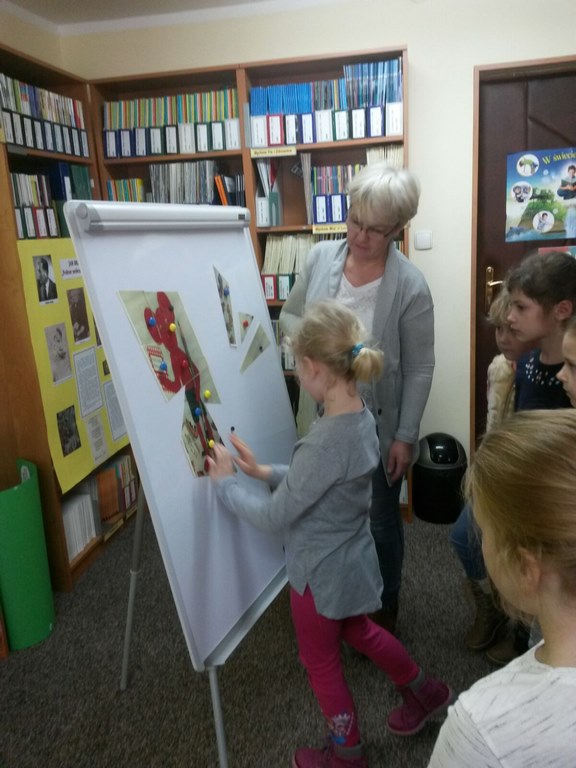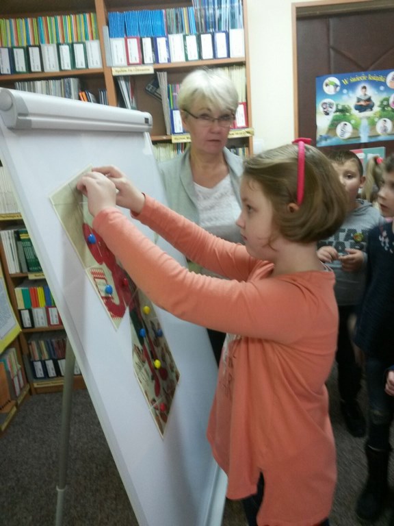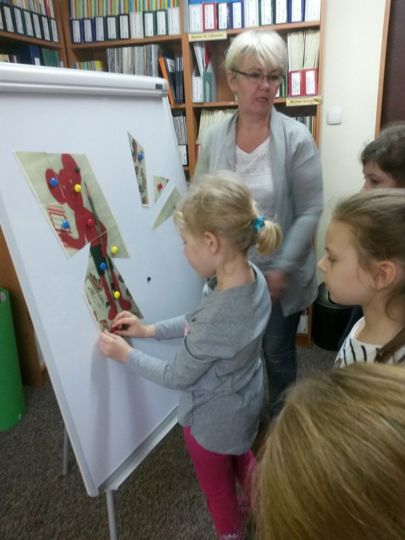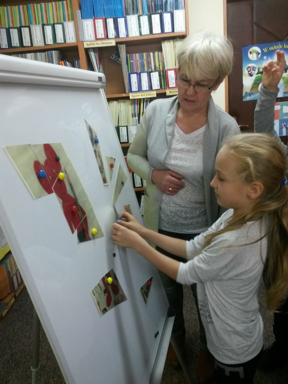 Wyświetlone zdjęcia i slajdy pokazały przybory szkolne i szkołę z czasów Tosi i Plastusia. Dzieci sprawdziły swoją wiedzę uczestnicząc w grze "Milionerzy", rozwiązując wiele interaktywnych zadań o Plastusiu, układając w grupach tematyczne puzzle. Po powrocie do szkoły ulepiły plastelinowgo ludka podsumowując w ten sposób piątkowe zajęcia.