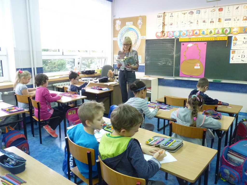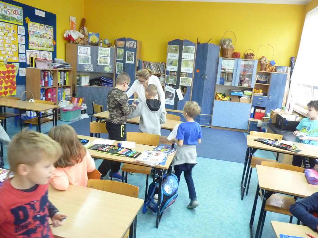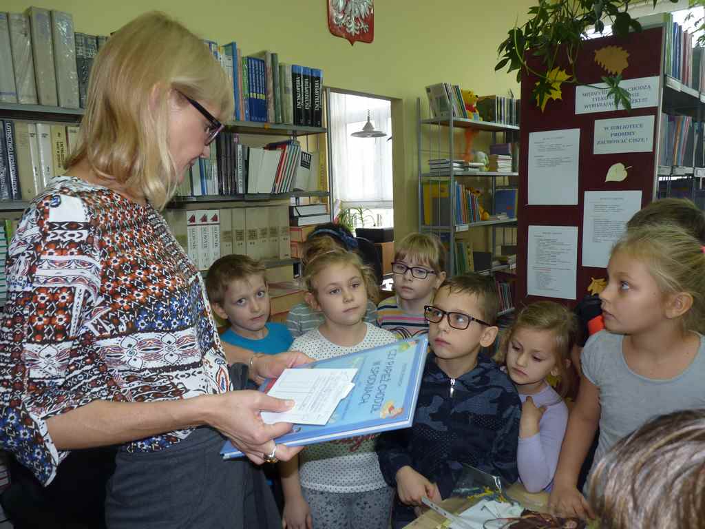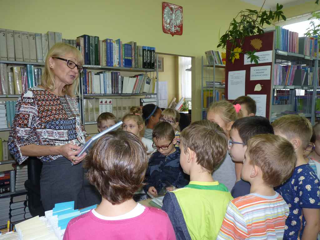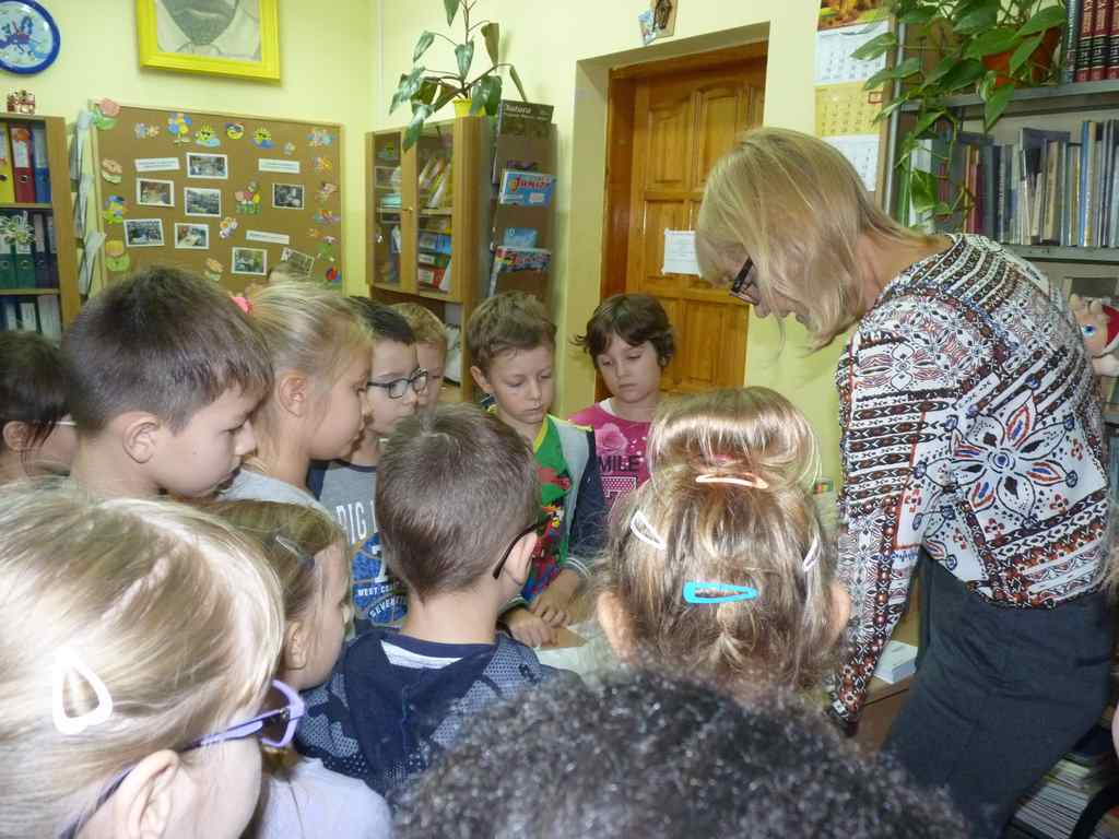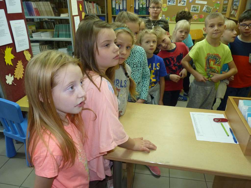 W trakcie pracy dzieci słuchały wierszy Tuwima i Brzechwy. Mali czytelnicy zostali zapoznani z księgozbiorem przeznaczonym dla najmłodszych czytelników, regulaminem biblioteki, sposobem wypożyczania książek oraz prośbami książki. Po takim wprowadzeniu, skupione i poważne uroczyście przyrzekły, że będą kochać i szanować książki, korzystać z ich mądrości i sumiennie wypełniać obowiązki czytelnika. Spotkanie przebiegło w miłej i przyjaznej atmosferze a biblioteka będzie kojarzyła się najmłodszym uczniom z miejscem bezpiecznym, przyjaznym i radosnym, gdzie uczniowie są zawsze mile widziani.