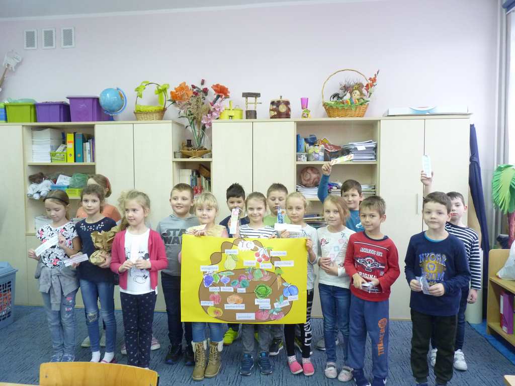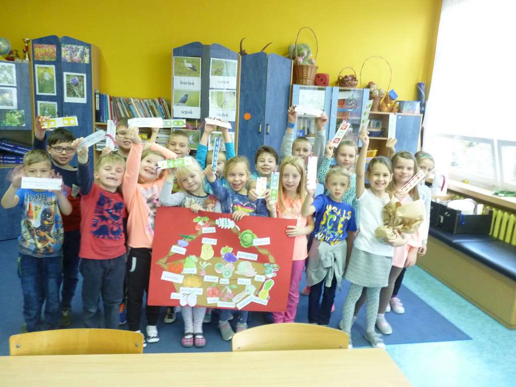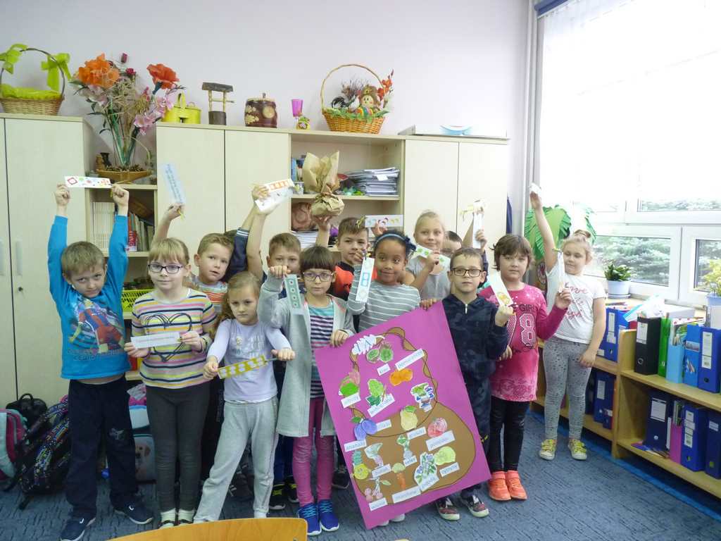 Pierwsze spotkanie z biblioteką szkolną to wyjątkowa uroczystość a pierwsze wypożyczenie książki powinno na długo pozostać w pamięci dziecka. Nic więc dziwnego, że ślubowanie przyszłych czytelników z klas I a, I b i I c, które odbyło się 3 listopada 2017 r. było dla nich ogromnym przeżyciem. Głównym celem uroczystości było zachęcenie najmłodszych uczniów do częstych odwiedzin w bibliotece szkolnej i wypożyczania książek oraz rozwijania umiejętności czytania. Pasowanie na czytelnika to oficjalne przyjęcie uczniów do grona czytelników biblioteki. Zanim jednak uczniowie złożyli przyrzeczenie musieli wykazać się znajomością nazw owoców i warzyw, ich wartościami odżywczymi dla małych organizmów. Z tym poradzili sobie na szóstkę. Następnie kolorowali wzory owoców i warzyw, którymi wypełnili kosz przyniesiony przez panie z biblioteki.