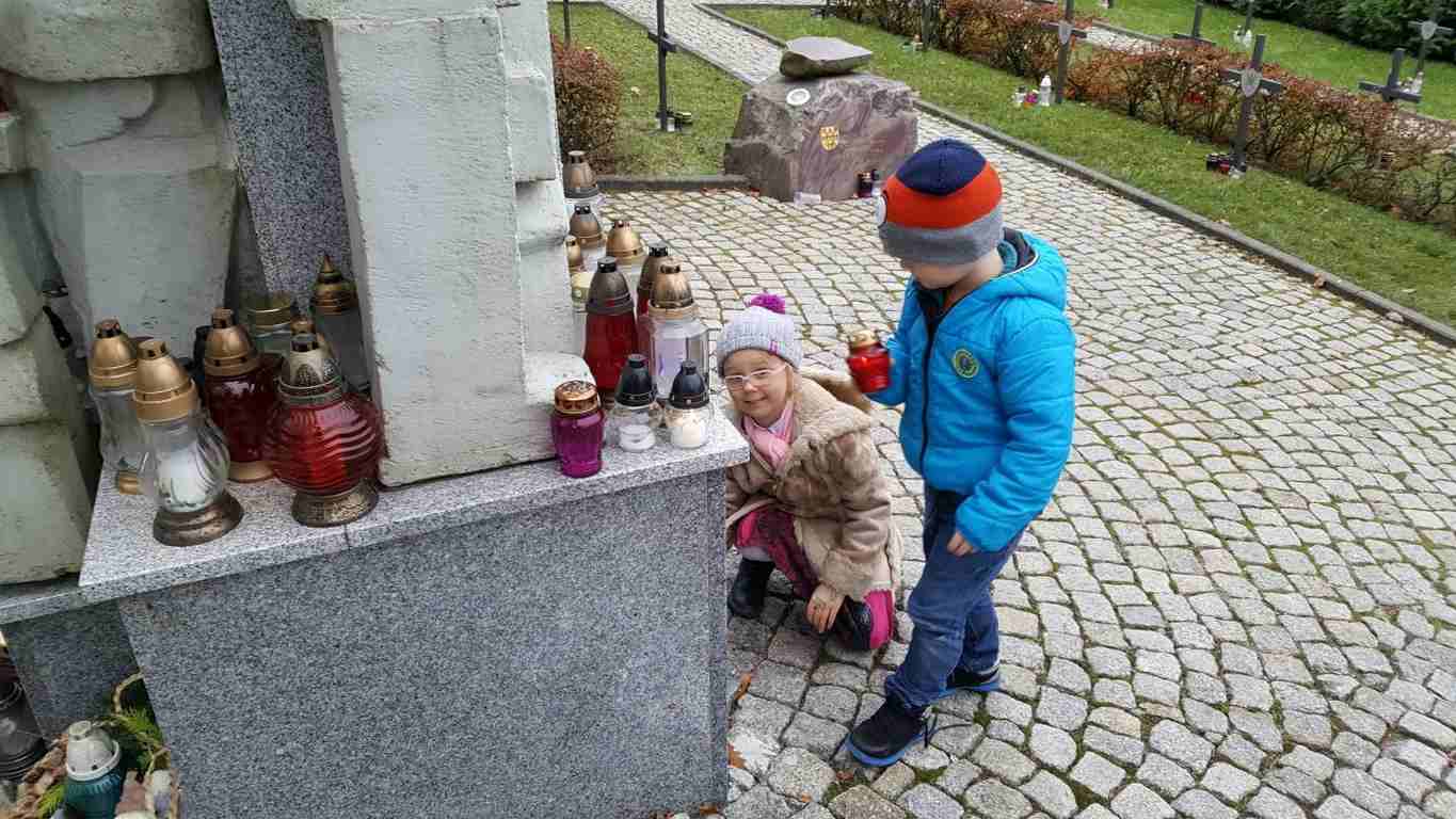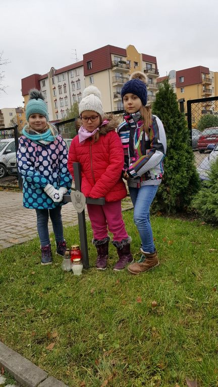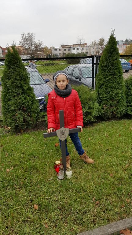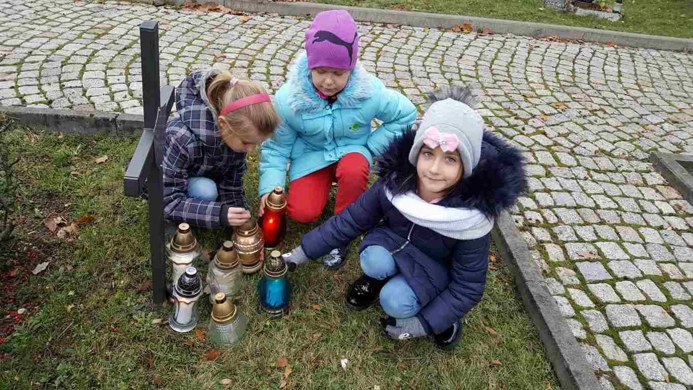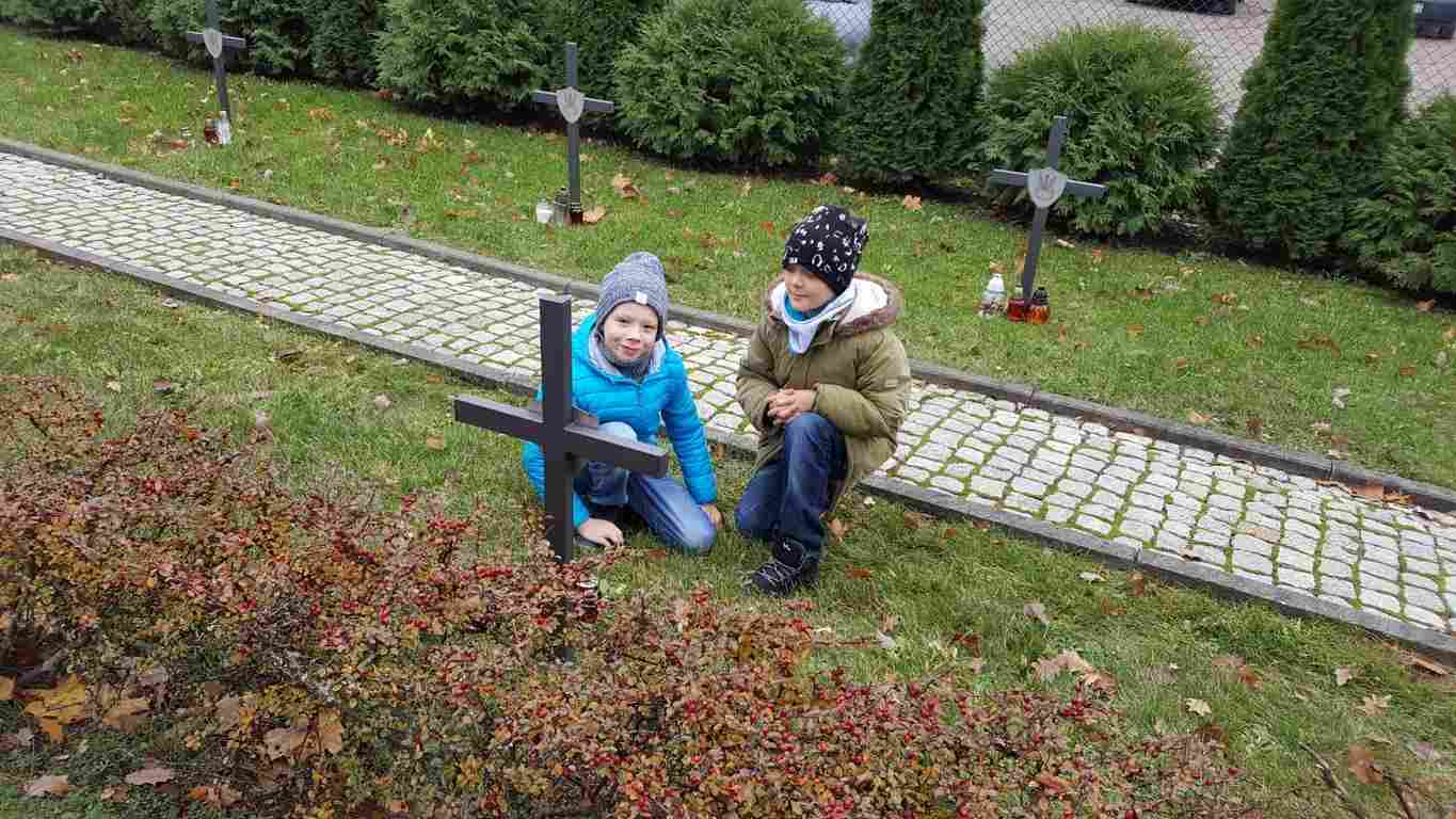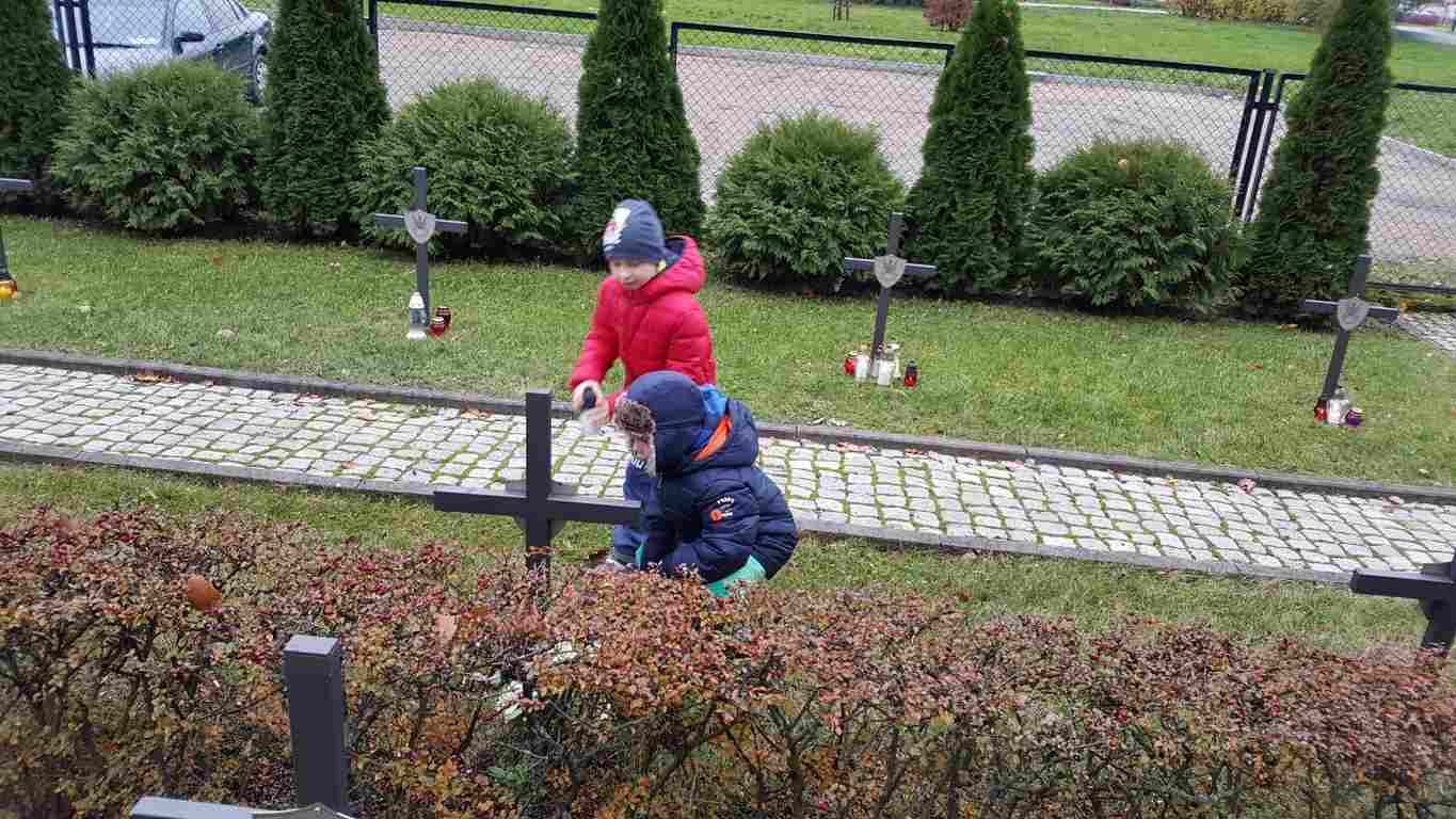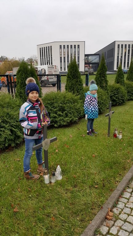 W związku ze zbliżającym się Narodowym Świętem Niepodległości uczniowie klas II a, III b i III c udali się na cmentarz, oddać hołd poległym żołnierzom. Dzieci w ciszy i skupieniu zapaliły znicze i ustawiły je na grobach żołnierzy. W jesiennej zadumie uczniowie wrócili do szkoły analizując wcześniej odczytany wpis na pomniku „Poległym w roku 1939 w obronie Ojczyzny”.