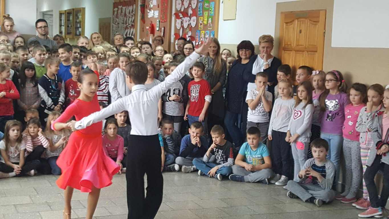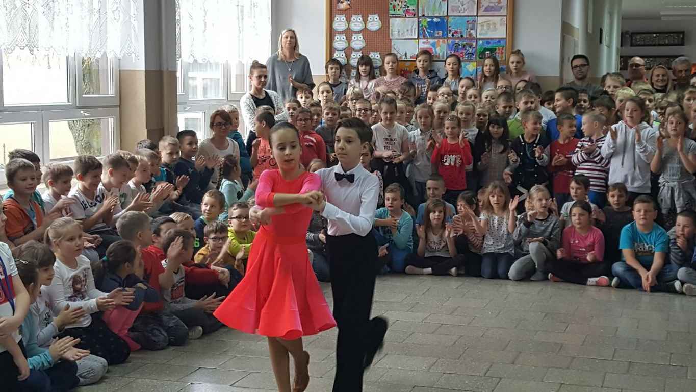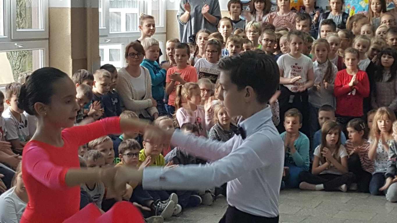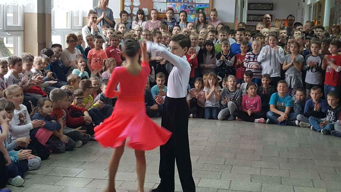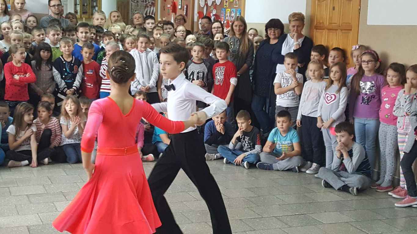 13 grudnia 2017 r. Joachim Pokorski z klasy V b razem ze swoją koleżanką Kornelią Hinca z Akademii Tańca Smooth w Gdańsku zatańczyli sześć tańców towarzyskich. Pokaz wywołał wiele pozytywnych emocji wśród rówieśników. Koledzy, koleżanki z podziwem obserwowali tańce standardowe, latynoamerykańskie wykonaniu Joachima i Kornelii. Serdecznie dziękujemy rodzicom tej pary za możliwość zobaczenia walca angielskiego, tanga, samby, czaczy, rumby i dżajfa. Mamy nadzieję, że to nie jest ostatni taki pokaz w naszej szkole.
