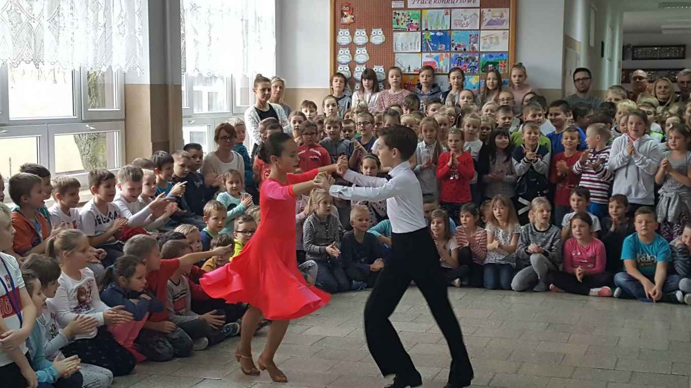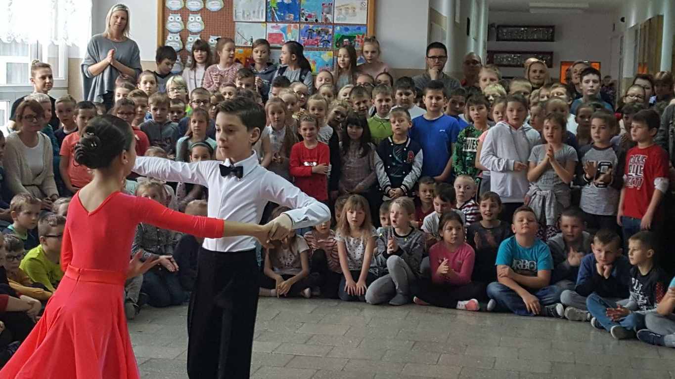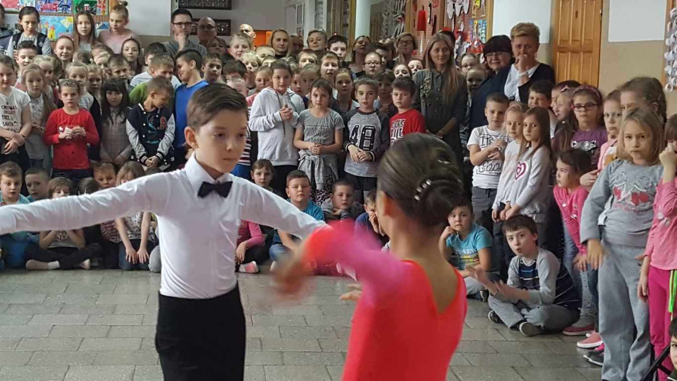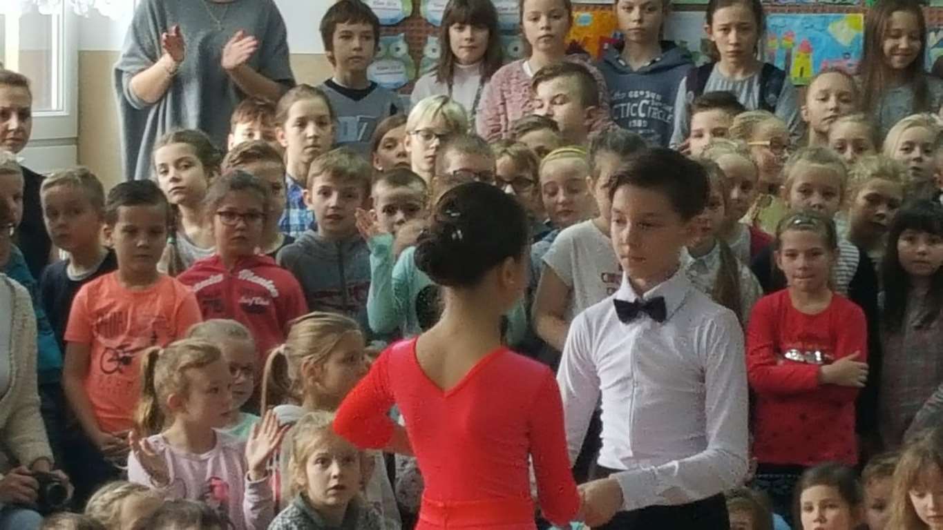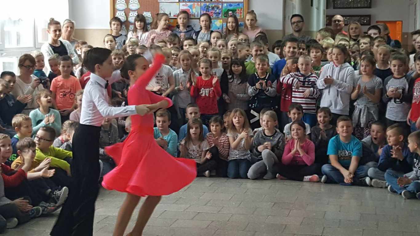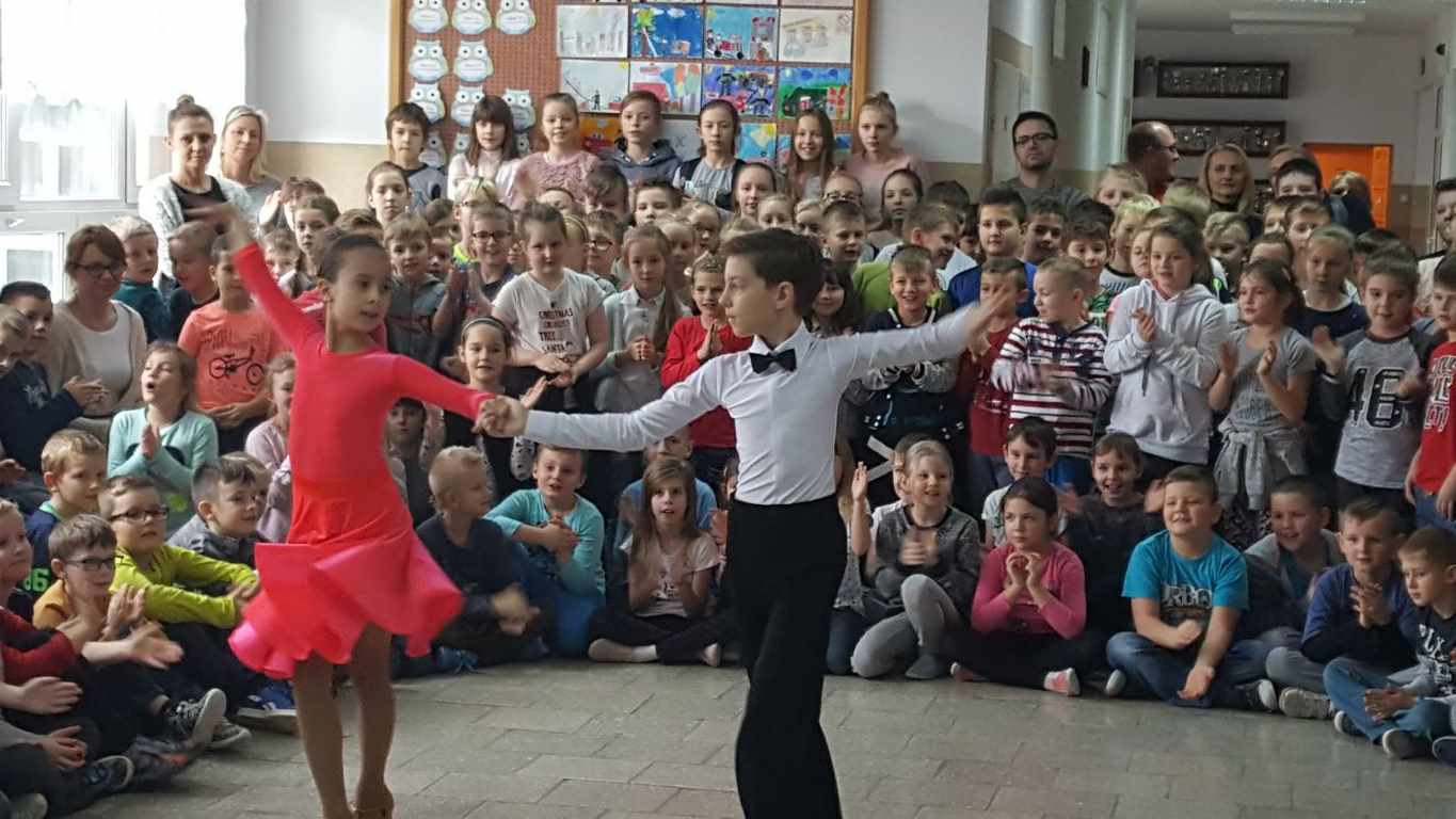 13 grudnia 2017 r. Joachim Pokorski z klasy V b razem ze swoją koleżanką Kornelią Hinca z Akademii Tańca Smooth w Gdańsku zatańczyli sześć tańców towarzyskich. Pokaz wywołał wiele pozytywnych emocji wśród rówieśników. Koledzy, koleżanki z podziwem obserwowali tańce standardowe, latynoamerykańskie wykonaniu Joachima i Kornelii. Serdecznie dziękujemy rodzicom tej pary za możliwość zobaczenia walca angielskiego, tanga, samby, czaczy, rumby i dżajfa. Mamy nadzieję, że to nie jest ostatni taki pokaz w naszej szkole.
