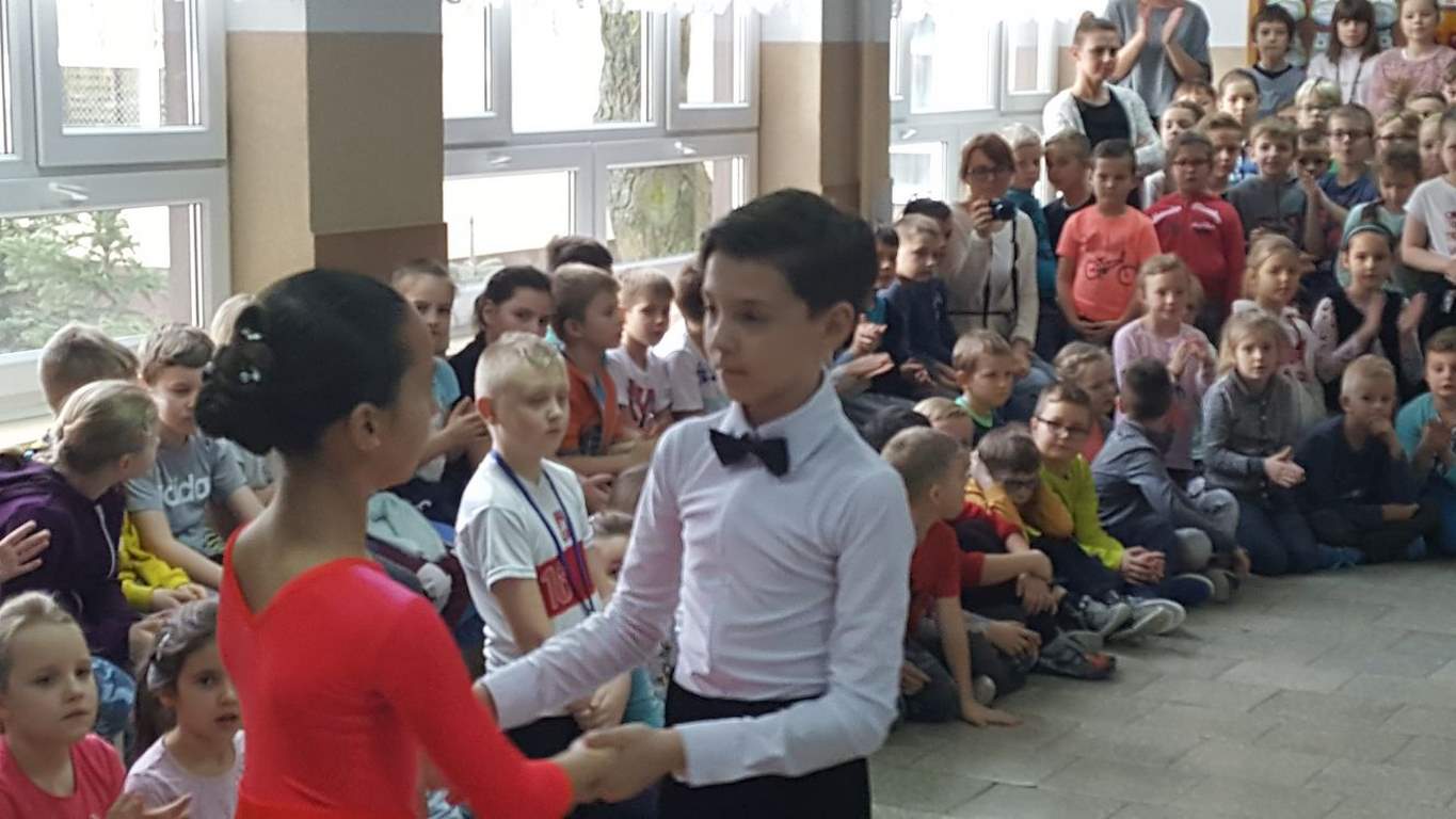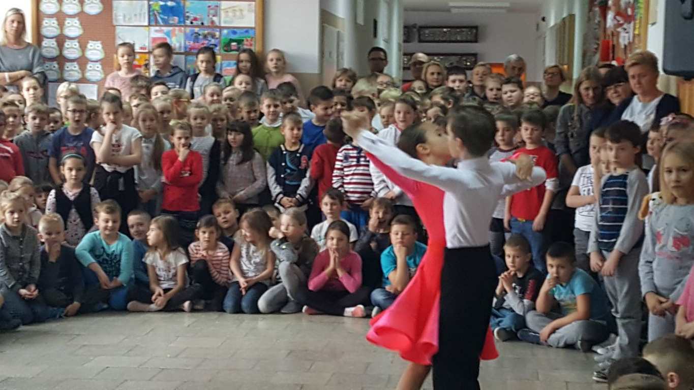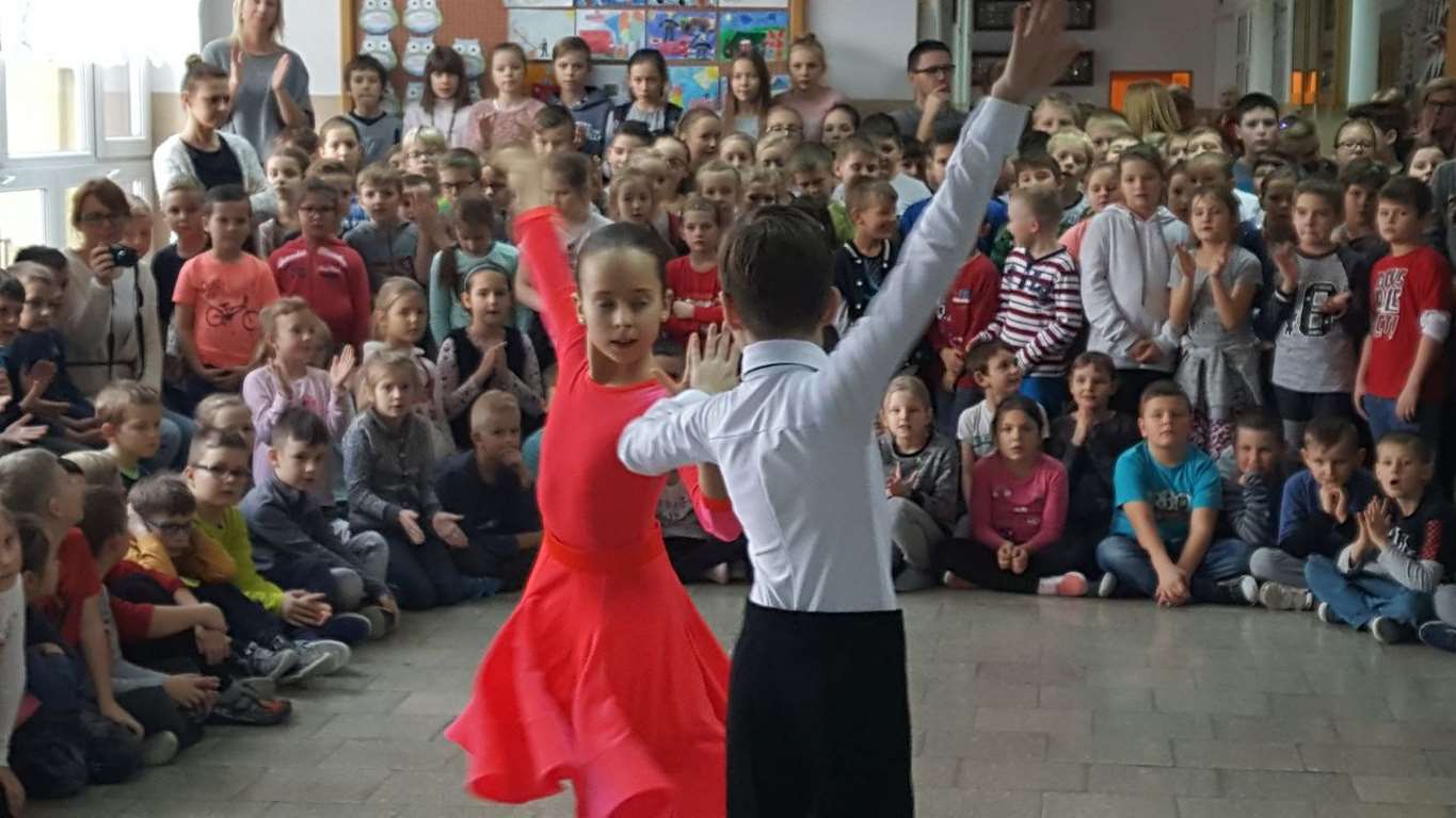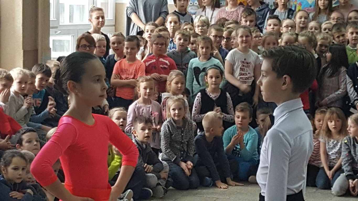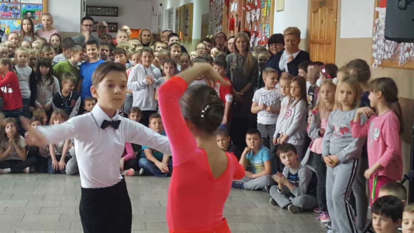 13 grudnia 2017 r. Joachim Pokorski z klasy V b razem ze swoją koleżanką Kornelią Hinca z Akademii Tańca Smooth w Gdańsku zatańczyli sześć tańców towarzyskich. Pokaz wywołał wiele pozytywnych emocji wśród rówieśników. Koledzy, koleżanki z podziwem obserwowali tańce standardowe, latynoamerykańskie wykonaniu Joachima i Kornelii. Serdecznie dziękujemy rodzicom tej pary za możliwość zobaczenia walca angielskiego, tanga, samby, czaczy, rumby i dżajfa. Mamy nadzieję, że to nie jest ostatni taki pokaz w naszej szkole.