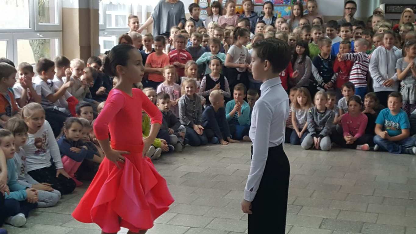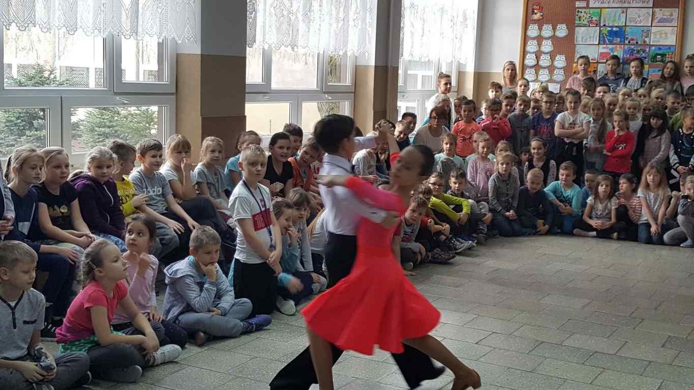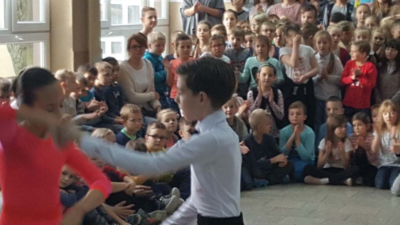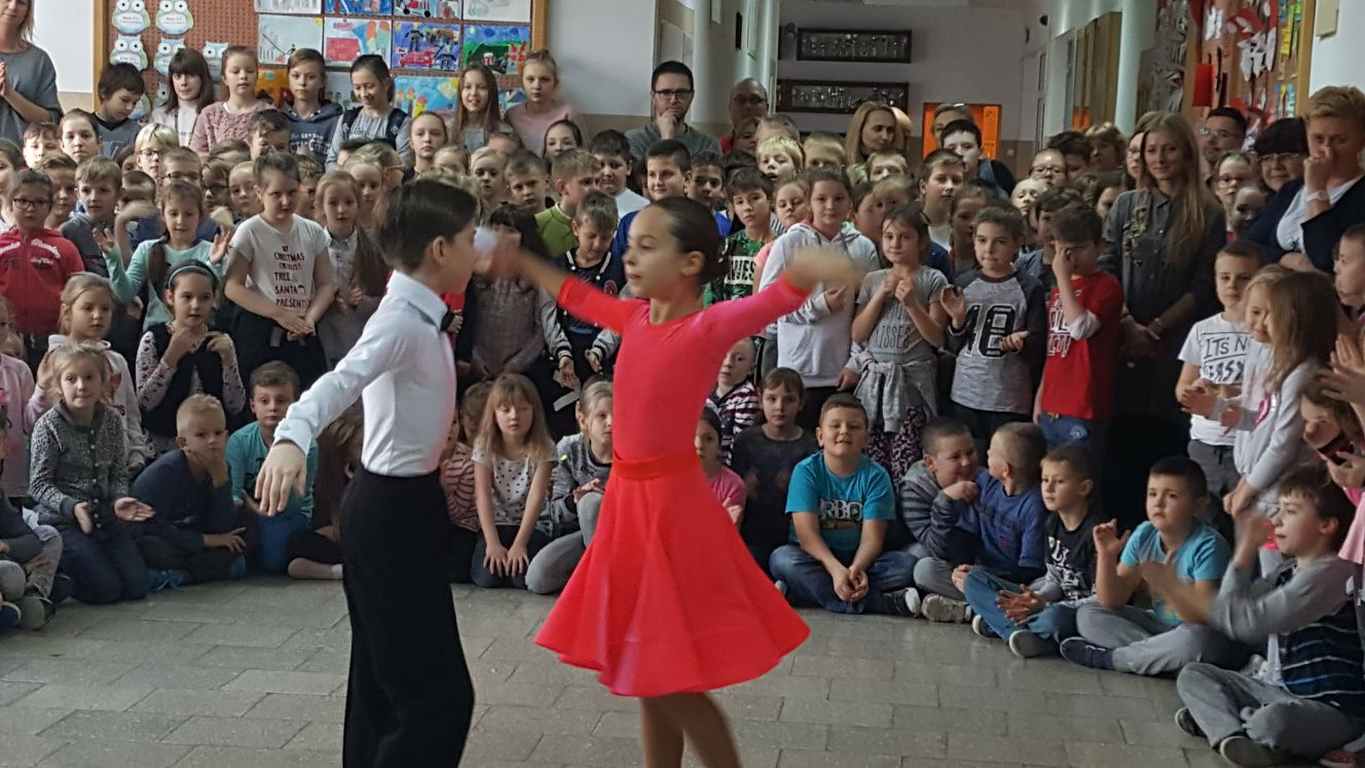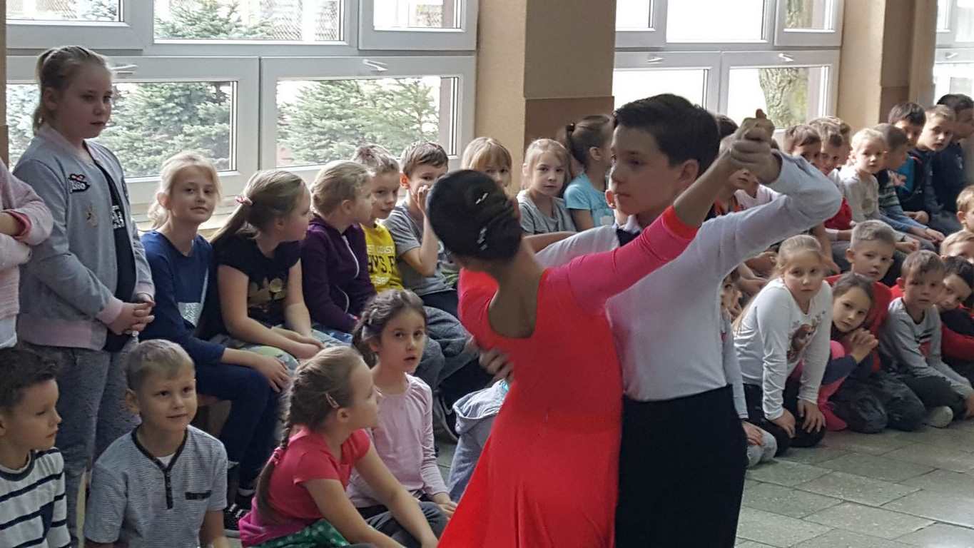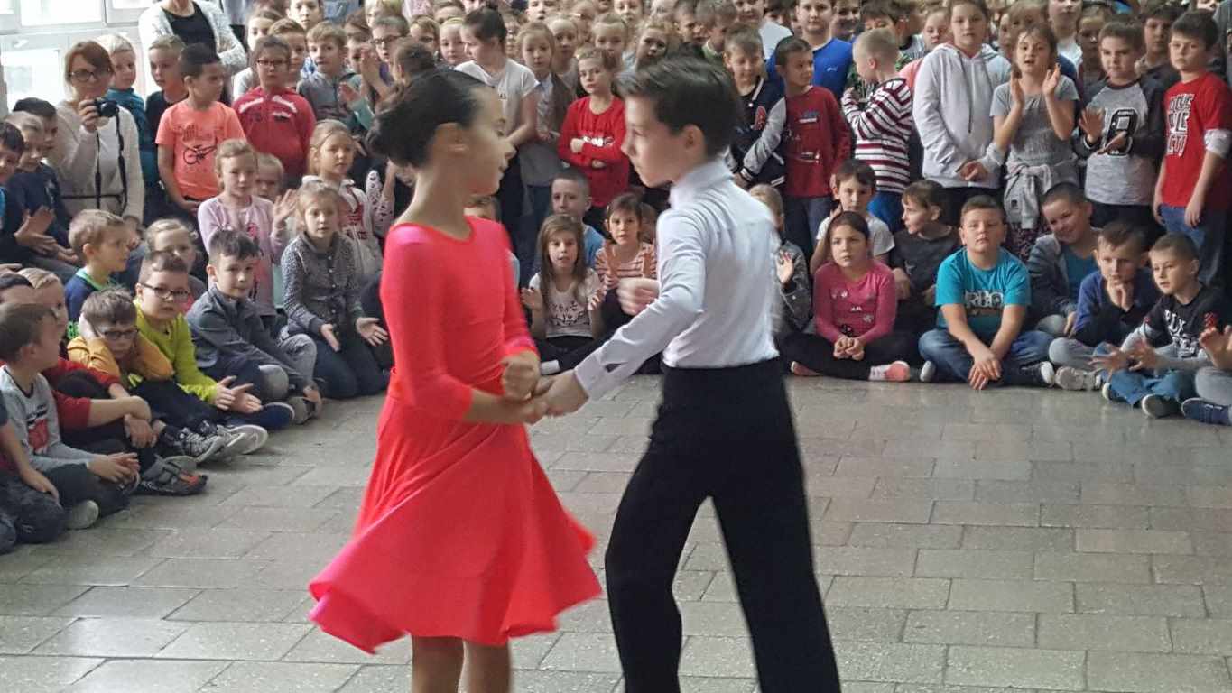 13 grudnia 2017 r. Joachim Pokorski z klasy V b razem ze swoją koleżanką Kornelią Hinca z Akademii Tańca Smooth w Gdańsku zatańczyli sześć tańców towarzyskich. Pokaz wywołał wiele pozytywnych emocji wśród rówieśników. Koledzy, koleżanki z podziwem obserwowali tańce standardowe, latynoamerykańskie wykonaniu Joachima i Kornelii. Serdecznie dziękujemy rodzicom tej pary za możliwość zobaczenia walca angielskiego, tanga, samby, czaczy, rumby i dżajfa. Mamy nadzieję, że to nie jest ostatni taki pokaz w naszej szkole.
