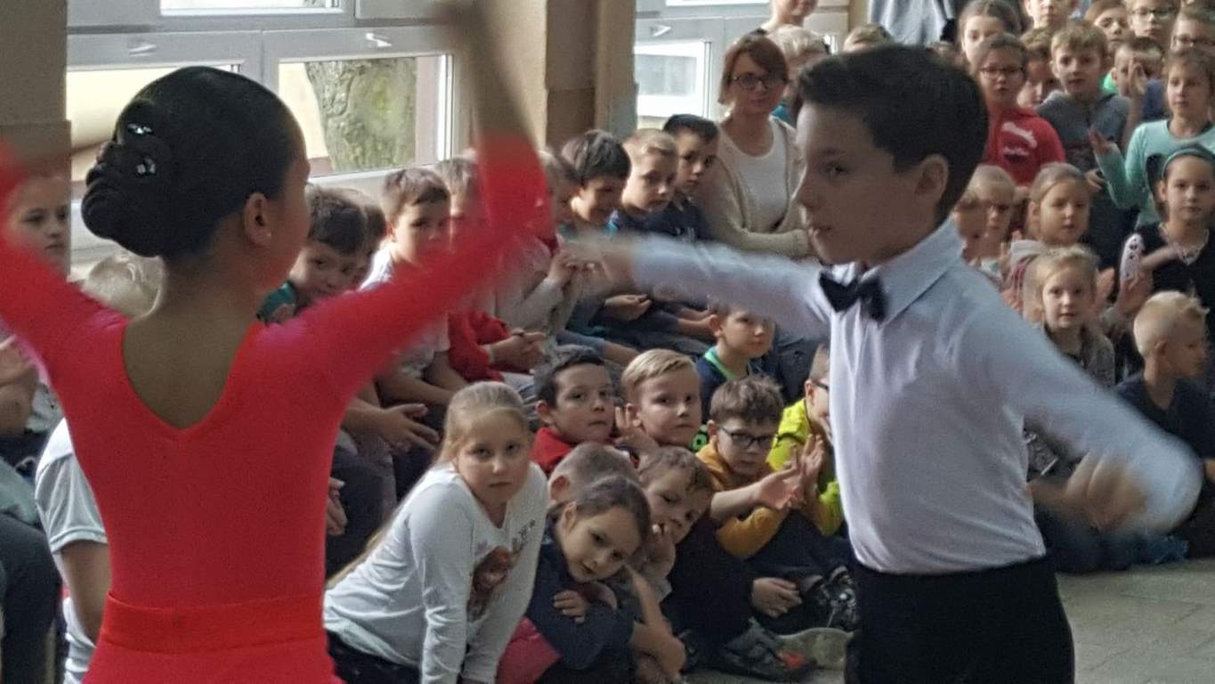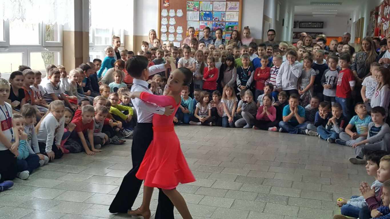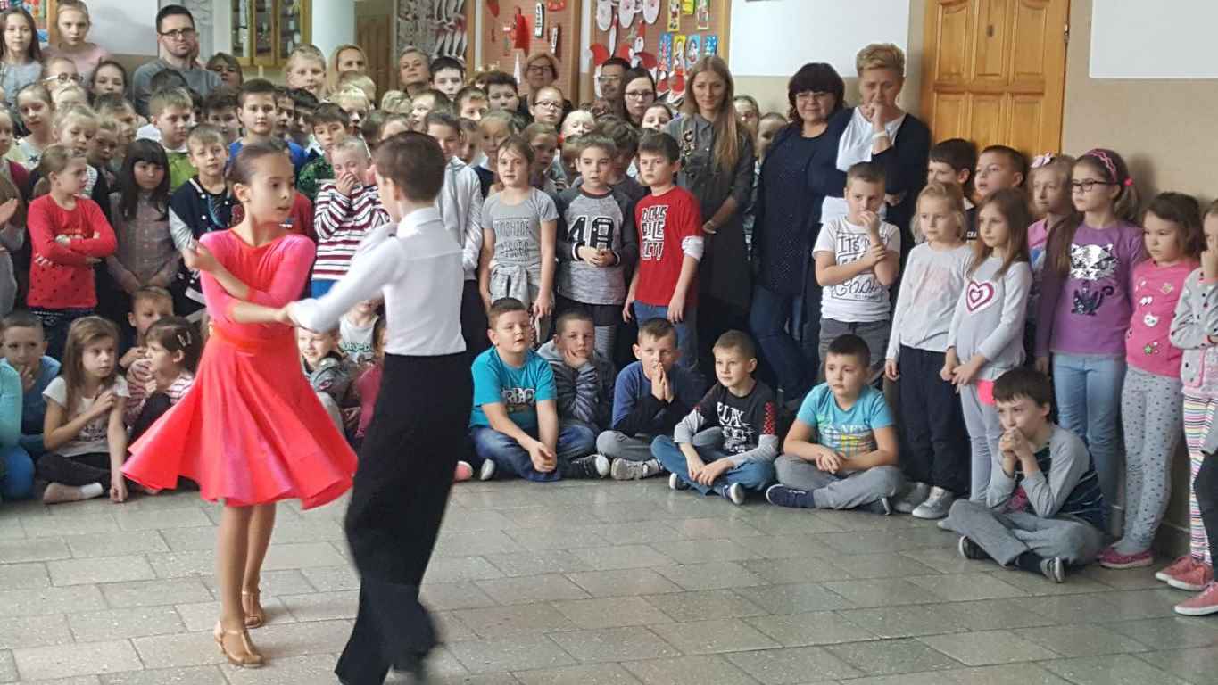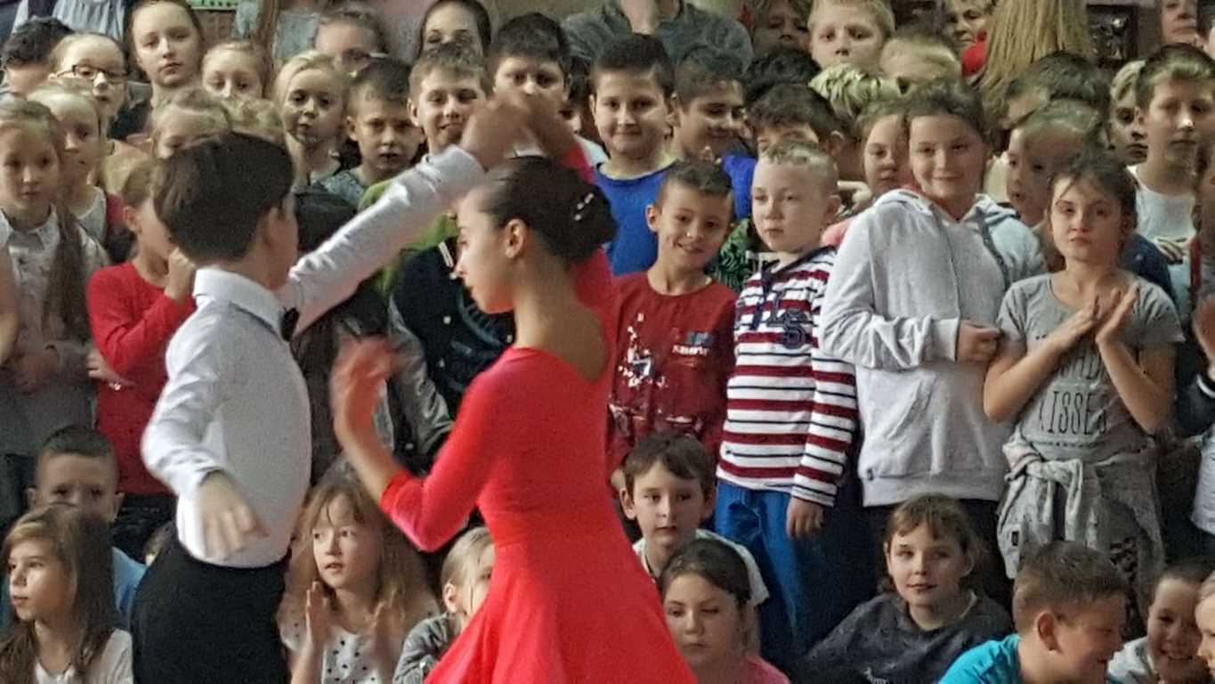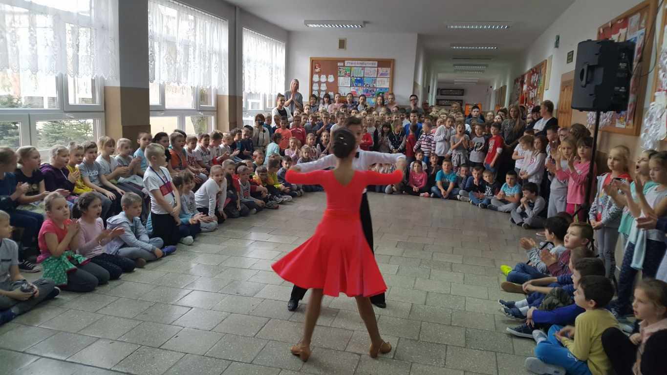 13 grudnia 2017 r. Joachim Pokorski z klasy V b razem ze swoją koleżanką Kornelią Hinca z Akademii Tańca Smooth w Gdańsku zatańczyli sześć tańców towarzyskich. Pokaz wywołał wiele pozytywnych emocji wśród rówieśników. Koledzy, koleżanki z podziwem obserwowali tańce standardowe, latynoamerykańskie wykonaniu Joachima i Kornelii. Serdecznie dziękujemy rodzicom tej pary za możliwość zobaczenia walca angielskiego, tanga, samby, czaczy, rumby i dżajfa. Mamy nadzieję, że to nie jest ostatni taki pokaz w naszej szkole.