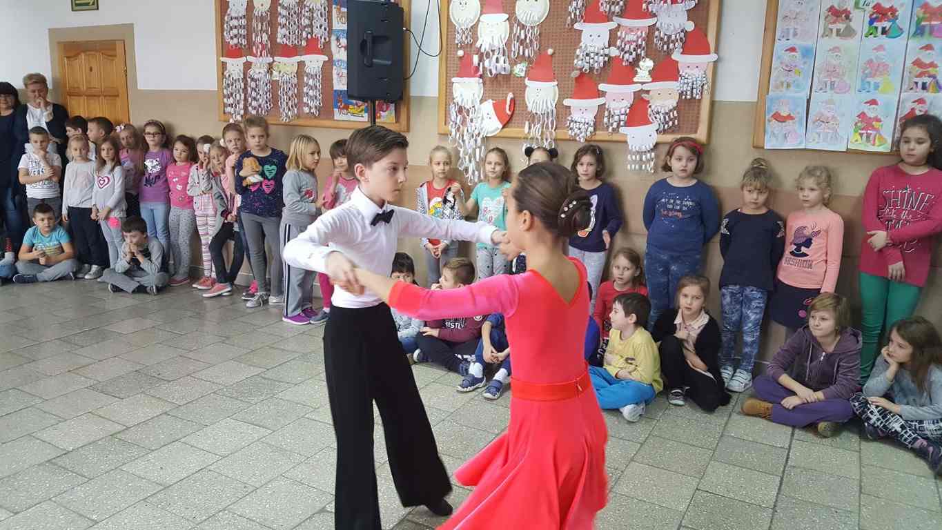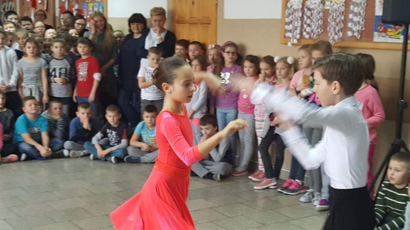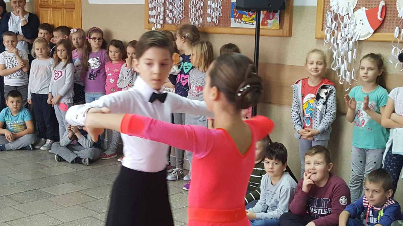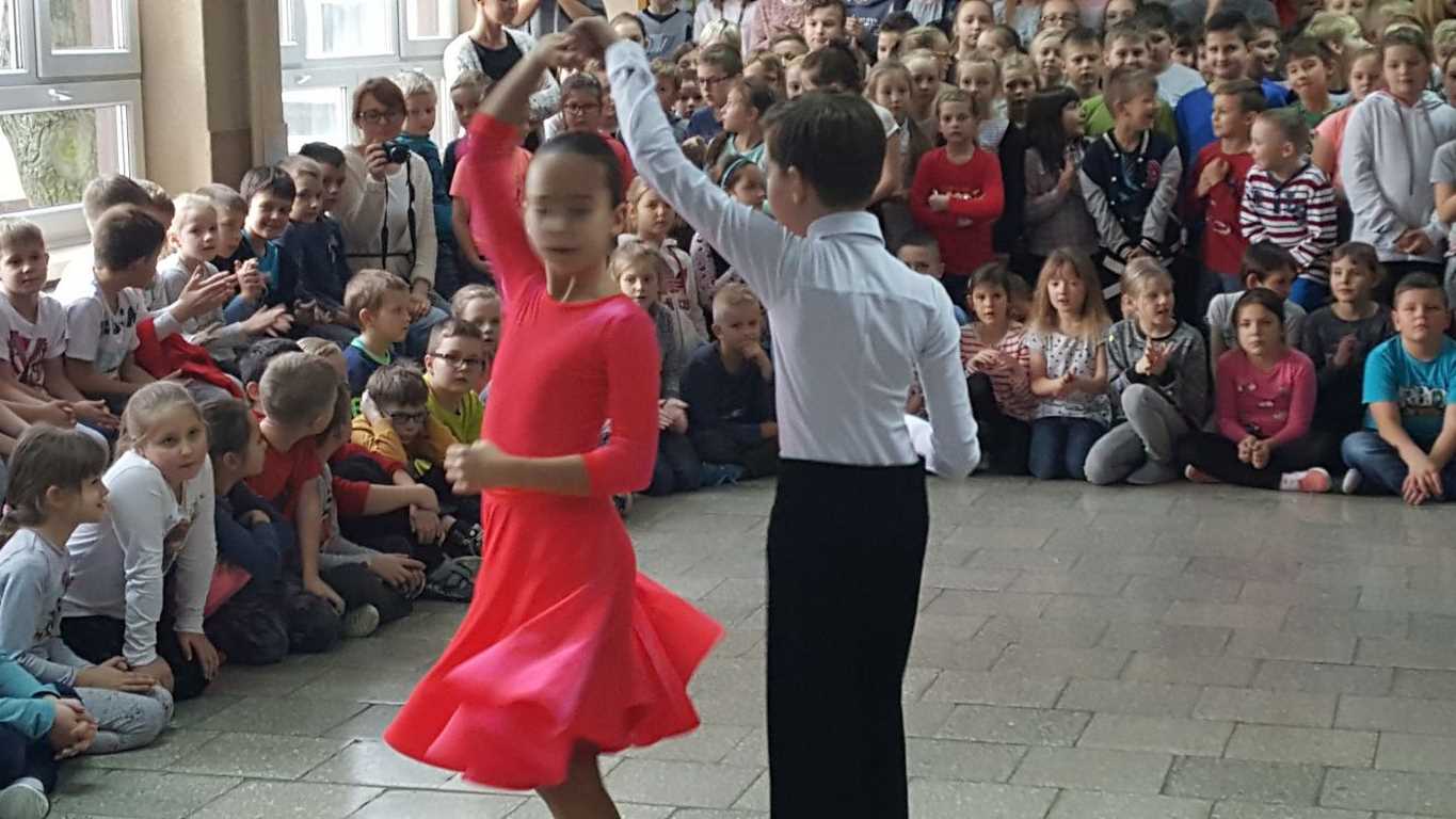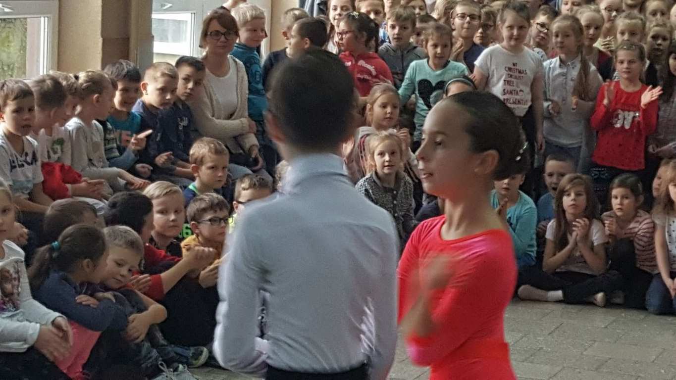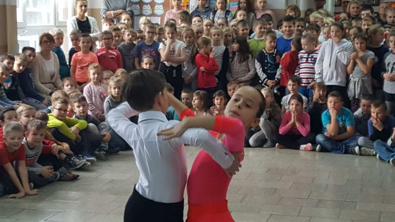 13 grudnia 2017 r. Joachim Pokorski z klasy V b razem ze swoją koleżanką Kornelią Hinca z Akademii Tańca Smooth w Gdańsku zatańczyli sześć tańców towarzyskich. Pokaz wywołał wiele pozytywnych emocji wśród rówieśników. Koledzy, koleżanki z podziwem obserwowali tańce standardowe, latynoamerykańskie wykonaniu Joachima i Kornelii. Serdecznie dziękujemy rodzicom tej pary za możliwość zobaczenia walca angielskiego, tanga, samby, czaczy, rumby i dżajfa. Mamy nadzieję, że to nie jest ostatni taki pokaz w naszej szkole.