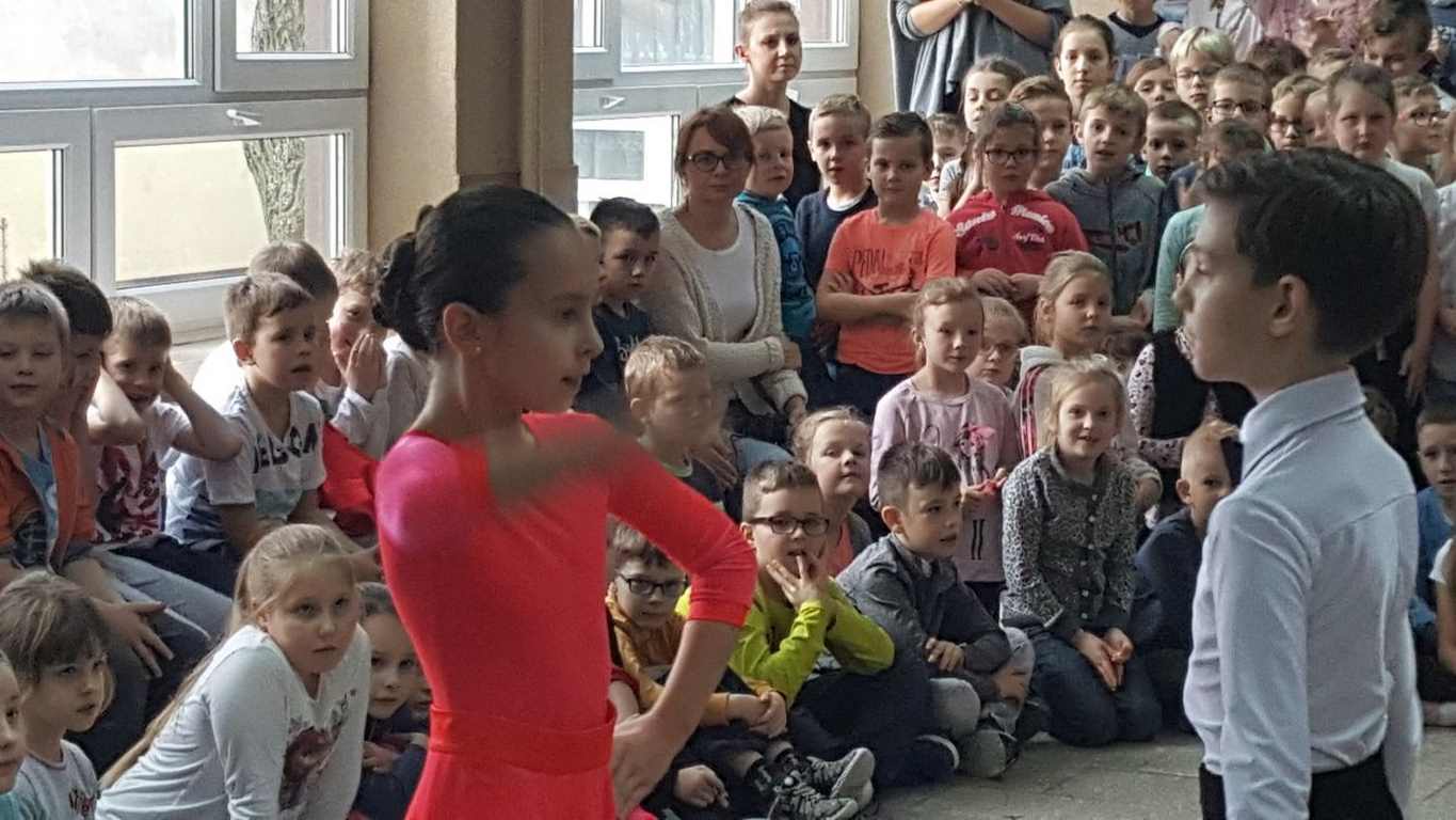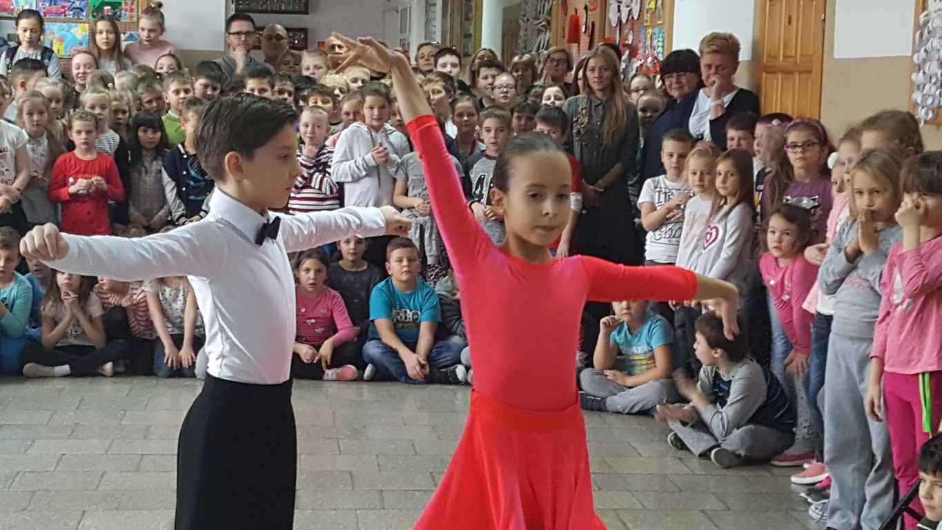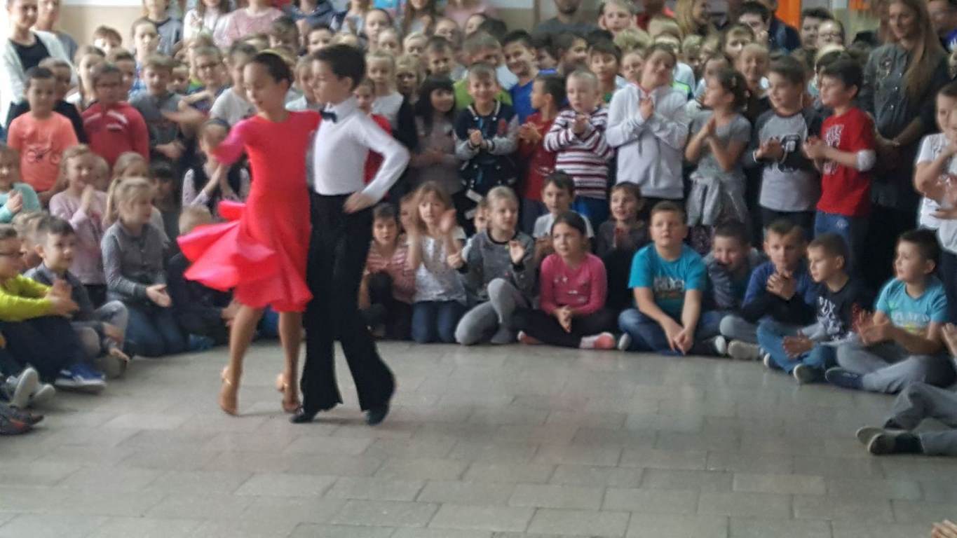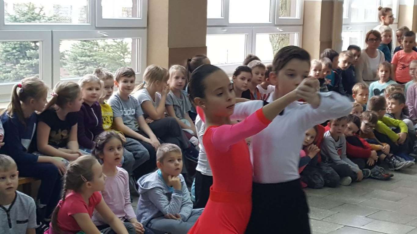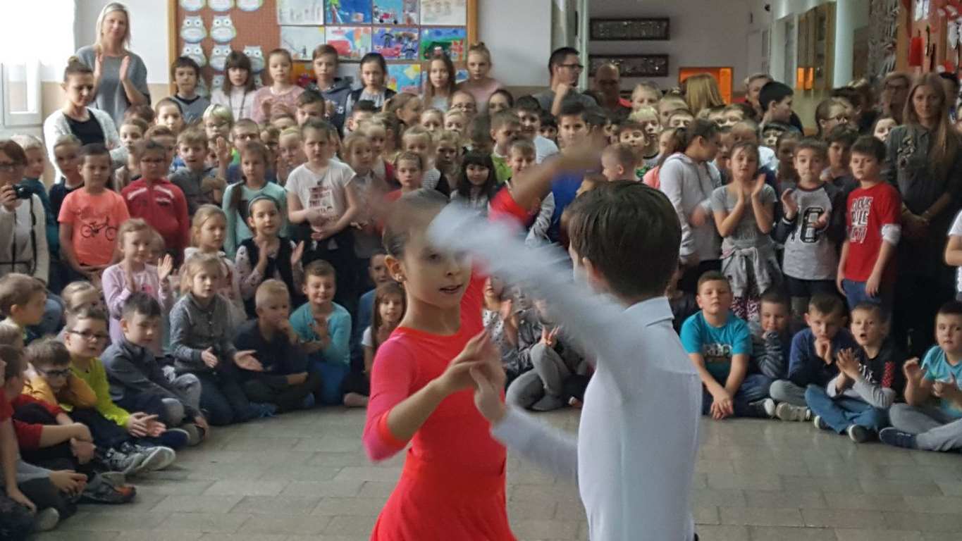 13 grudnia 2017 r. Joachim Pokorski z klasy V b razem ze swoją koleżanką Kornelią Hinca z Akademii Tańca Smooth w Gdańsku zatańczyli sześć tańców towarzyskich. Pokaz wywołał wiele pozytywnych emocji wśród rówieśników. Koledzy, koleżanki z podziwem obserwowali tańce standardowe, latynoamerykańskie wykonaniu Joachima i Kornelii. Serdecznie dziękujemy rodzicom tej pary za możliwość zobaczenia walca angielskiego, tanga, samby, czaczy, rumby i dżajfa. Mamy nadzieję, że to nie jest ostatni taki pokaz w naszej szkole.