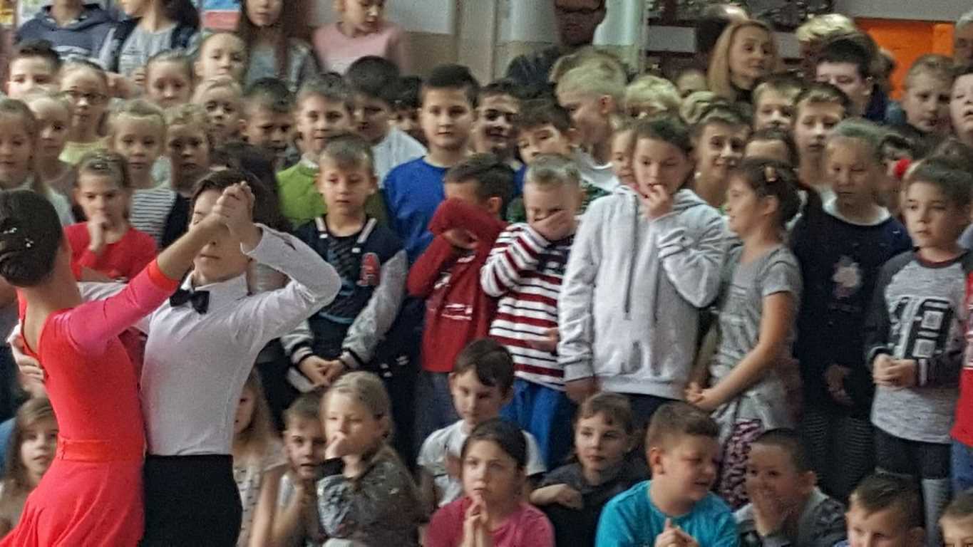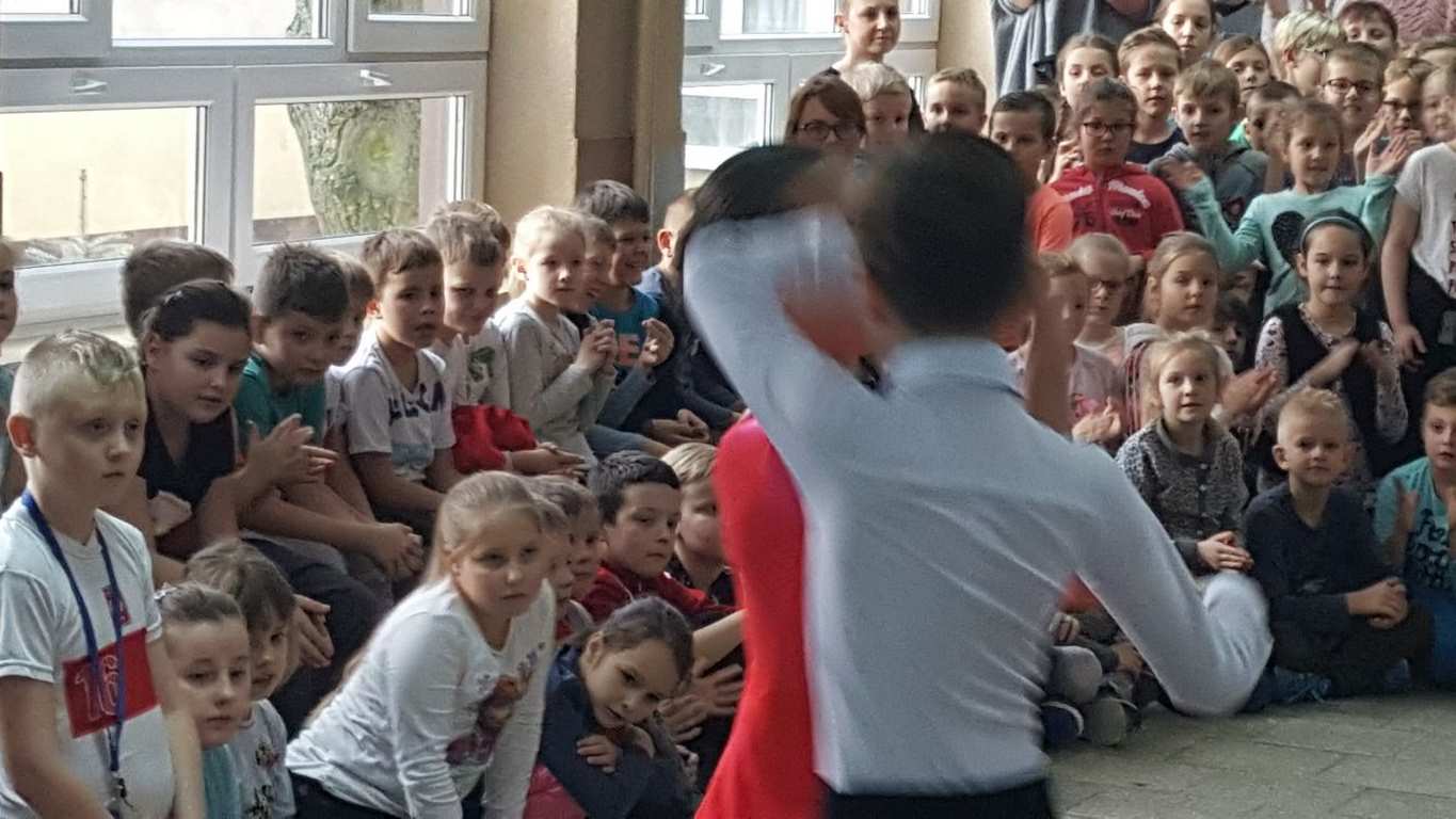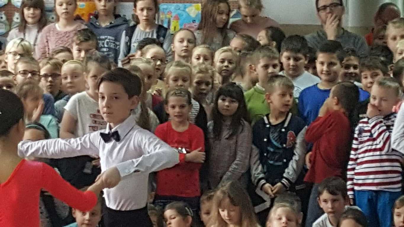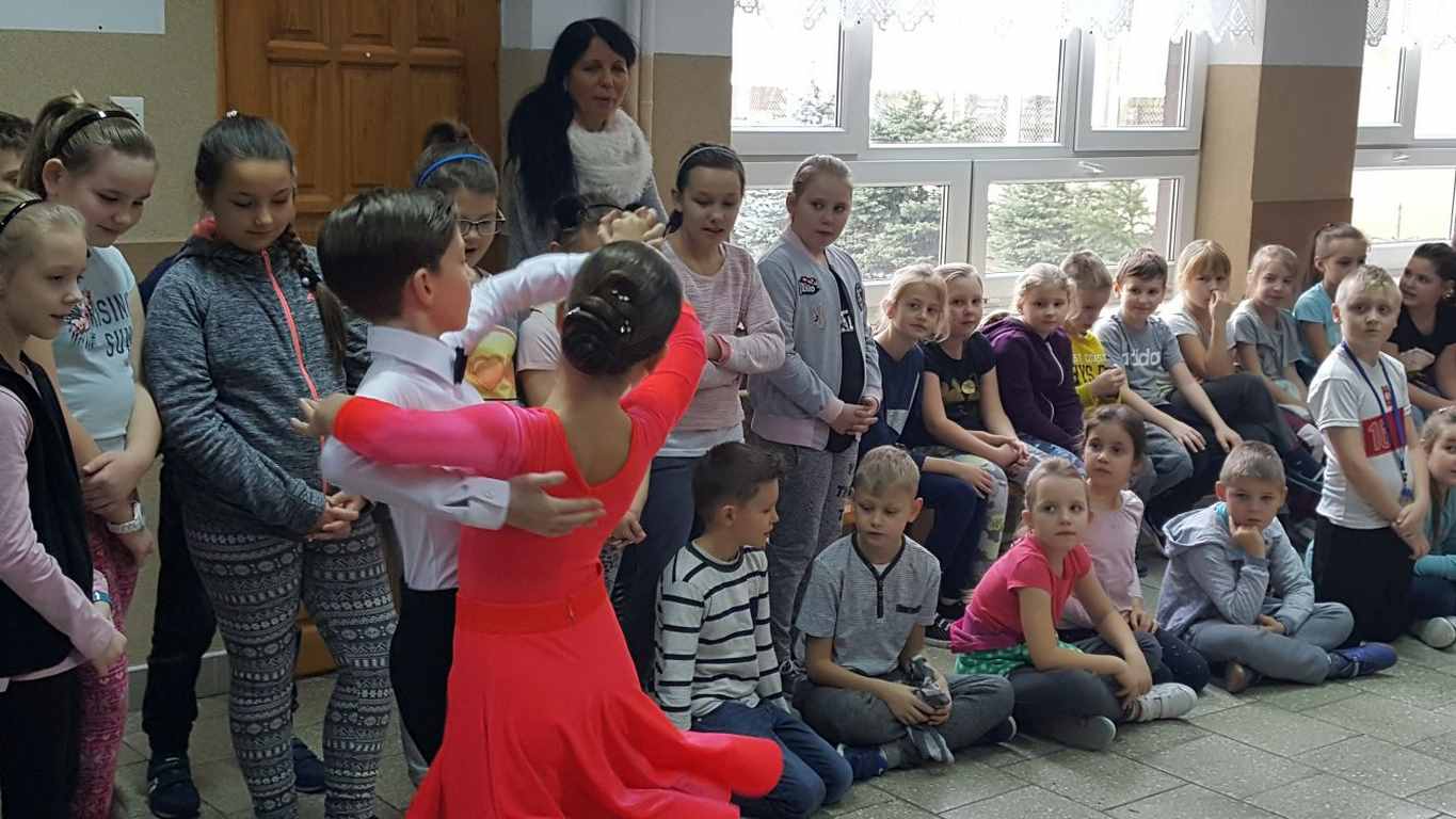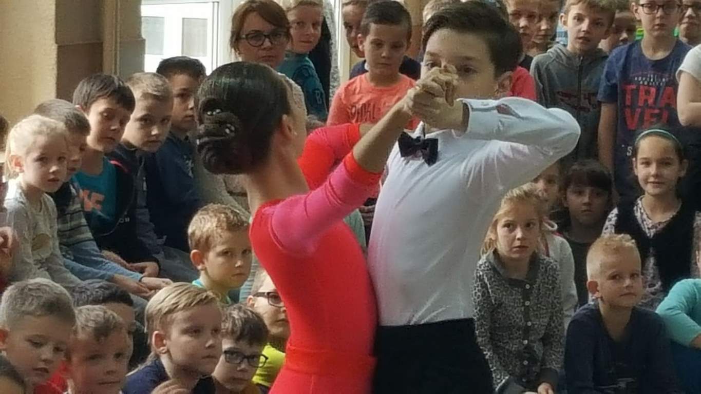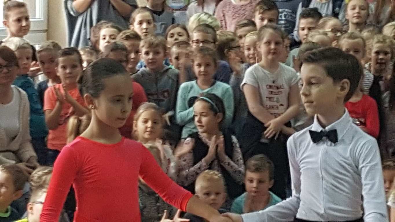 13 grudnia 2017 r. Joachim Pokorski z klasy V b razem ze swoją koleżanką Kornelią Hinca z Akademii Tańca Smooth w Gdańsku zatańczyli sześć tańców towarzyskich. Pokaz wywołał wiele pozytywnych emocji wśród rówieśników. Koledzy, koleżanki z podziwem obserwowali tańce standardowe, latynoamerykańskie wykonaniu Joachima i Kornelii. Serdecznie dziękujemy rodzicom tej pary za możliwość zobaczenia walca angielskiego, tanga, samby, czaczy, rumby i dżajfa. Mamy nadzieję, że to nie jest ostatni taki pokaz w naszej szkole.