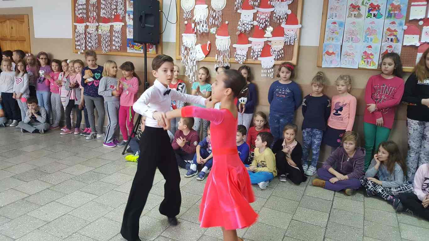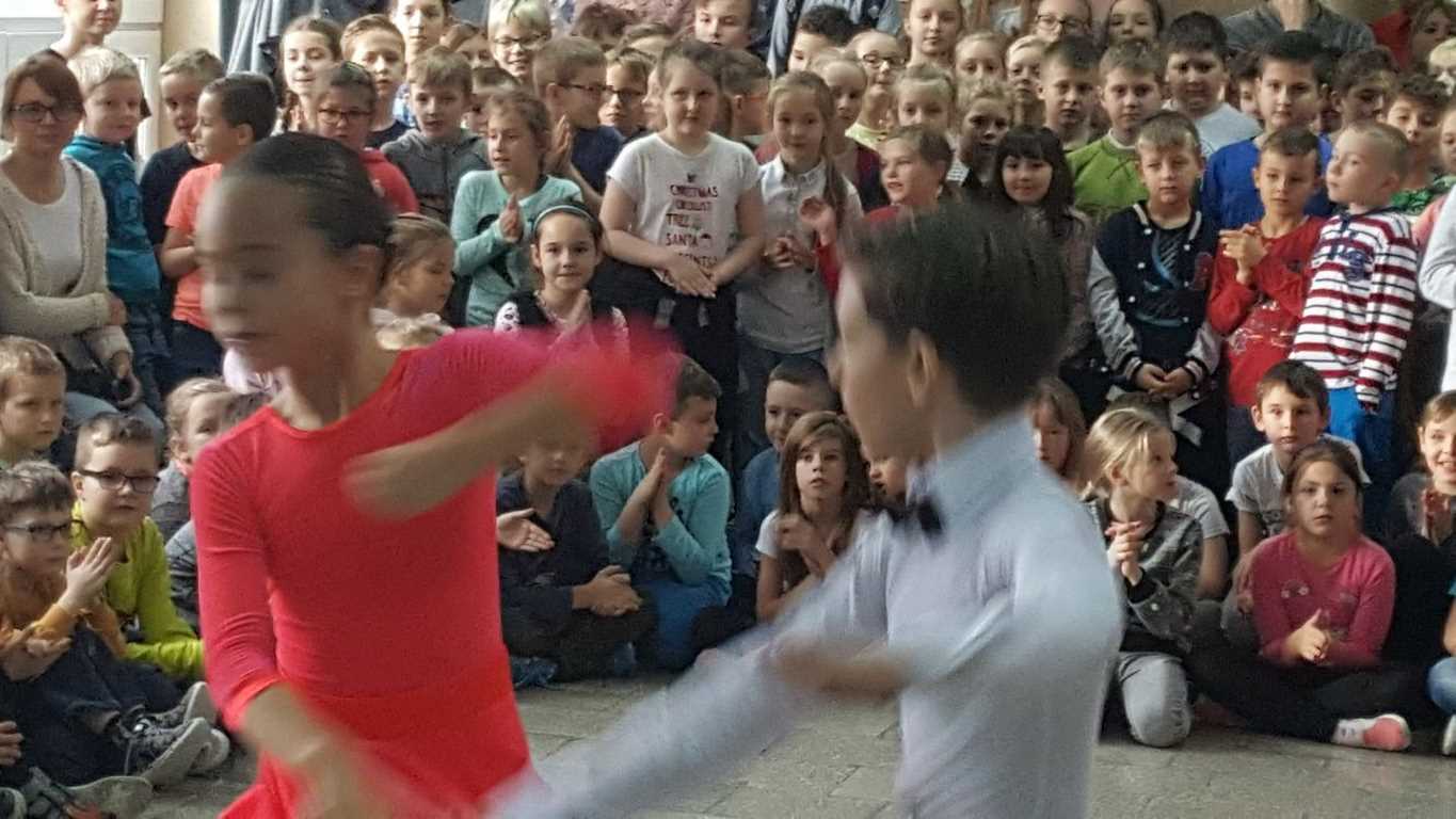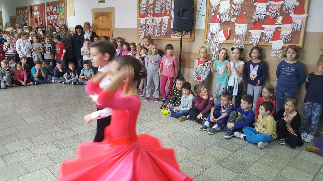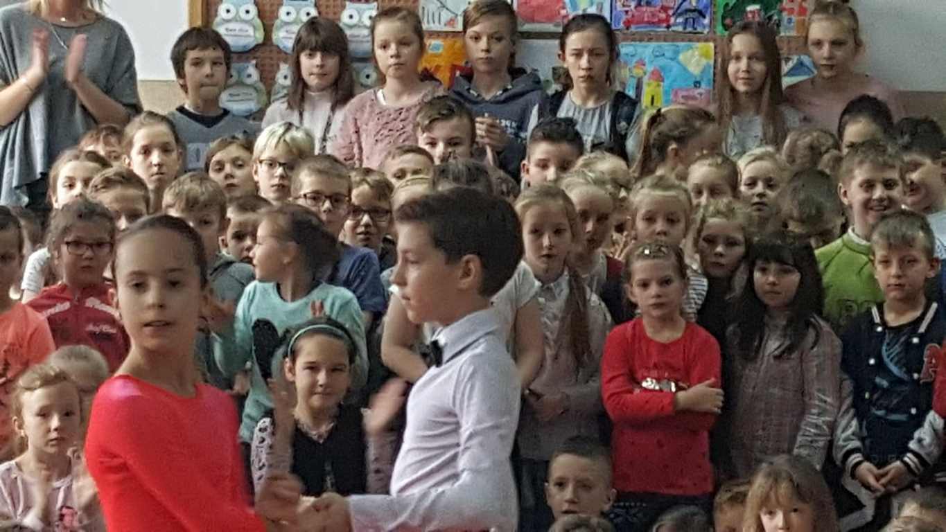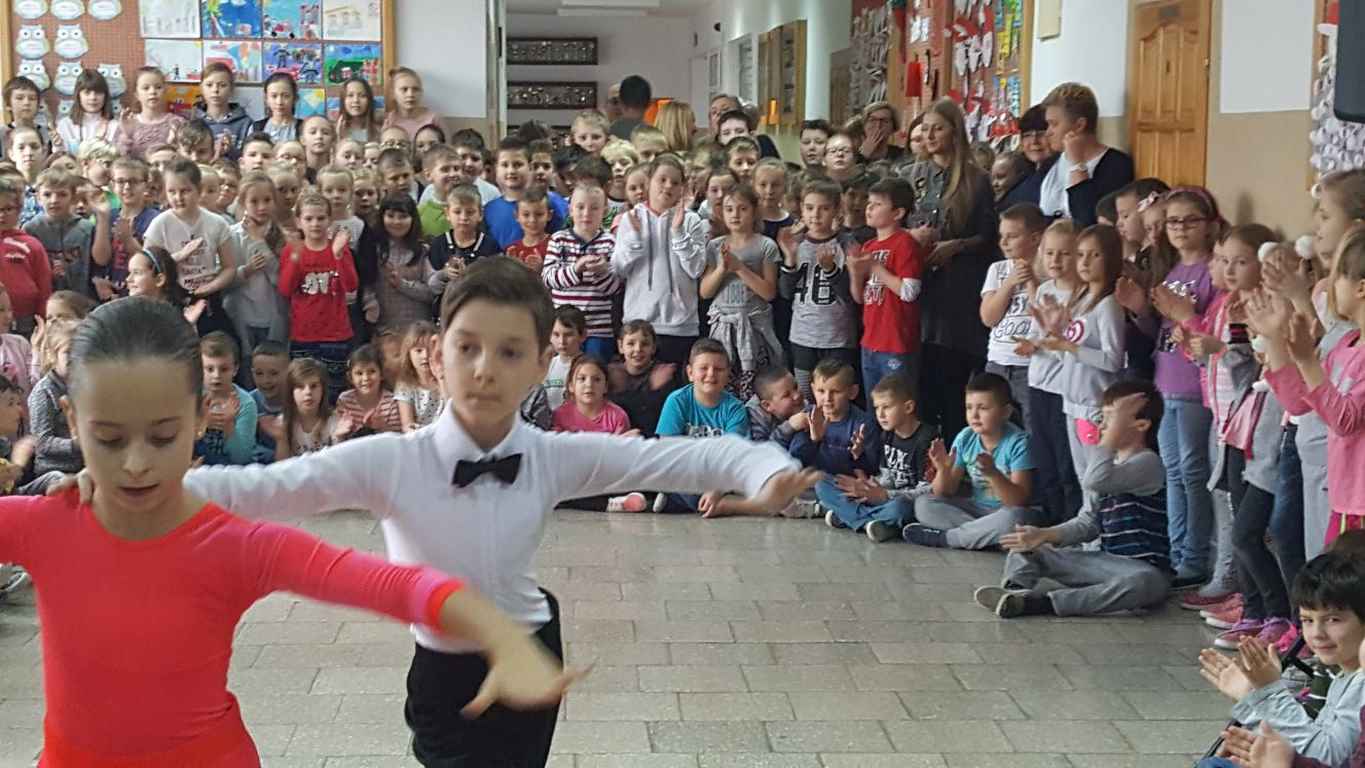 13 grudnia 2017 r. Joachim Pokorski z klasy V b razem ze swoją koleżanką Kornelią Hinca z Akademii Tańca Smooth w Gdańsku zatańczyli sześć tańców towarzyskich. Pokaz wywołał wiele pozytywnych emocji wśród rówieśników. Koledzy, koleżanki z podziwem obserwowali tańce standardowe, latynoamerykańskie wykonaniu Joachima i Kornelii. Serdecznie dziękujemy rodzicom tej pary za możliwość zobaczenia walca angielskiego, tanga, samby, czaczy, rumby i dżajfa. Mamy nadzieję, że to nie jest ostatni taki pokaz w naszej szkole.