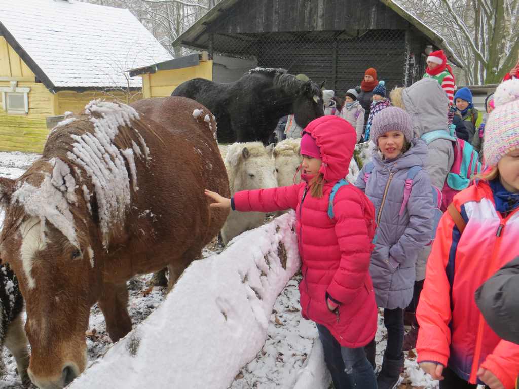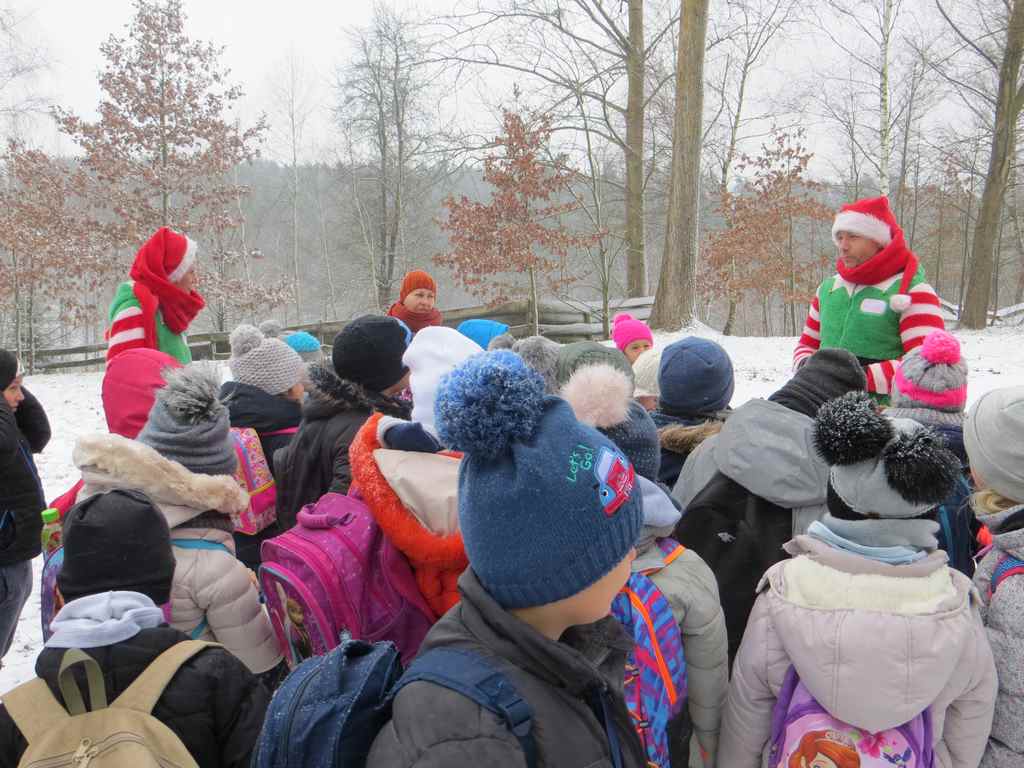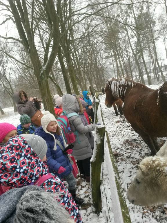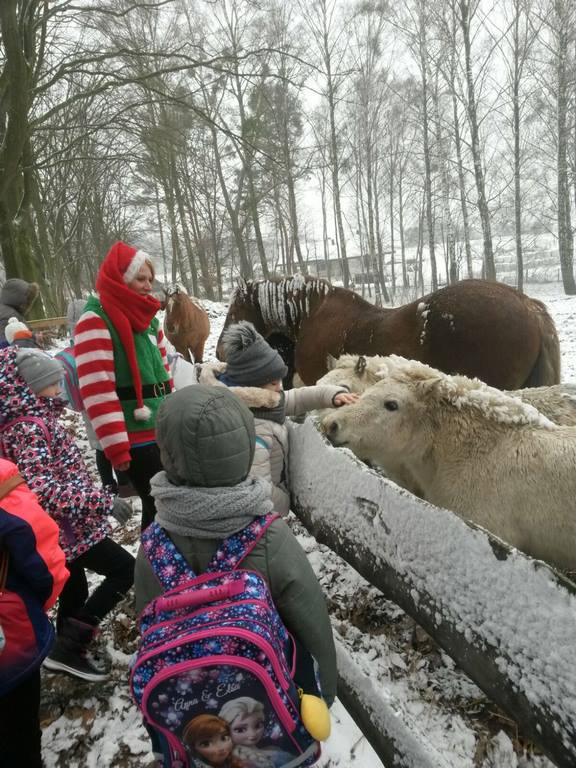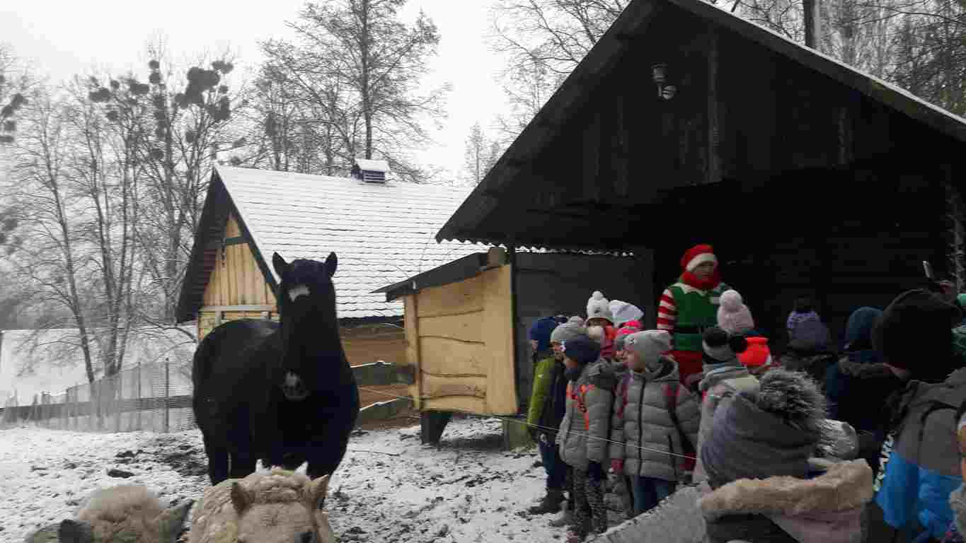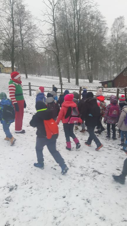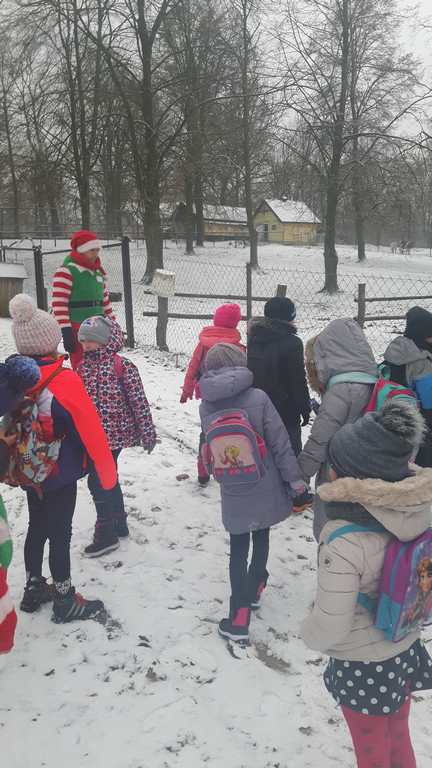 14 grudnia 2017 roku uczniowie klasy 1c i 2b wybrali się do Leśnych Wrót - krainy Mikołaja. Uczniów przywitał elf Robert i najpierw oprowadził po zagrodzie Mikołaja. Dzieci spotkały tam różne zwierzęta : kozy, świnki, konie, kucyki, krowy, ptactwo domowe i dzikie. Po obejrzeniu gospodarstwa dzieci udały się na spotkanie z Panią Mikołajową, która z radością je przywitała. Rozpoczęły się tańce, pląsy i zabawy.