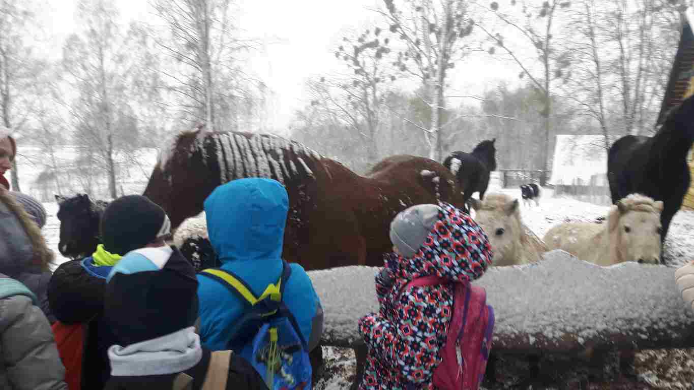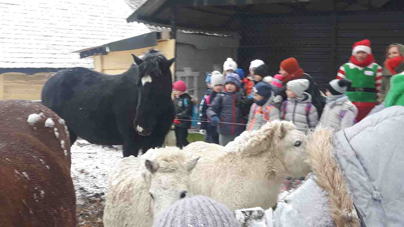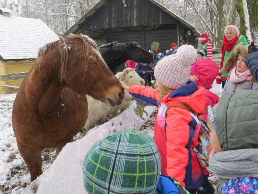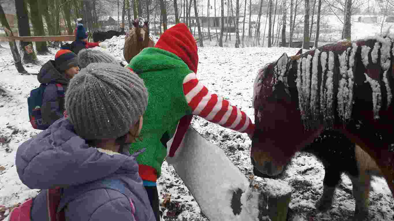 14 grudnia 2017 roku uczniowie klasy 1c i 2b wybrali się do Leśnych Wrót - krainy Mikołaja. Uczniów przywitał elf Robert i najpierw oprowadził po zagrodzie Mikołaja. Dzieci spotkały tam różne zwierzęta : kozy, świnki, konie, kucyki, krowy, ptactwo domowe i dzikie. Po obejrzeniu gospodarstwa dzieci udały się na spotkanie z Panią Mikołajową, która z radością je przywitała. Rozpoczęły się tańce, pląsy i zabawy.