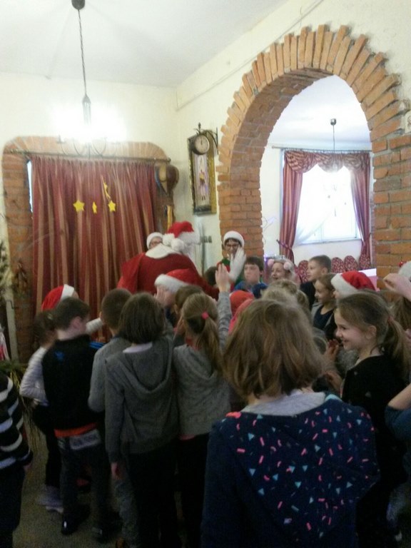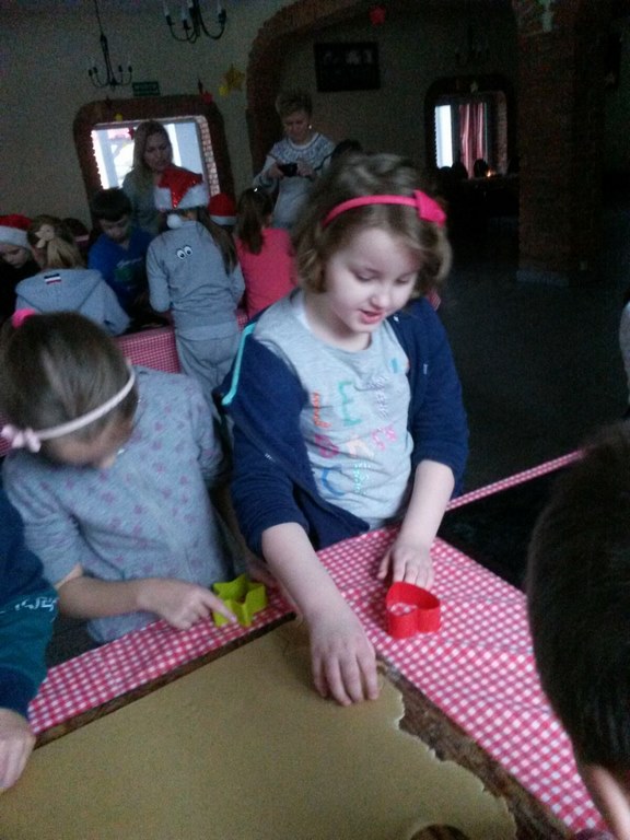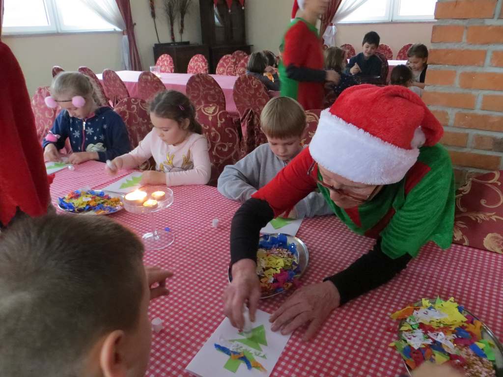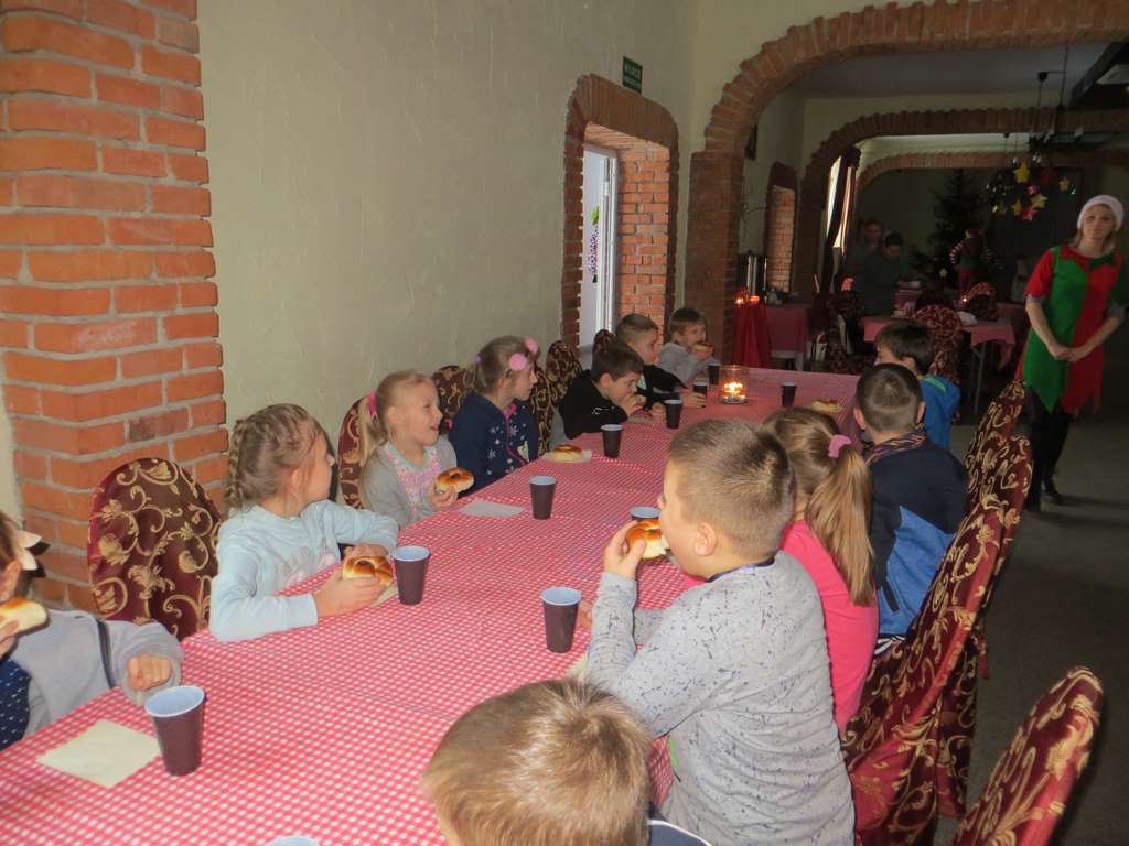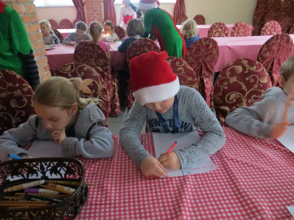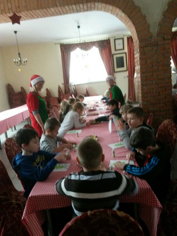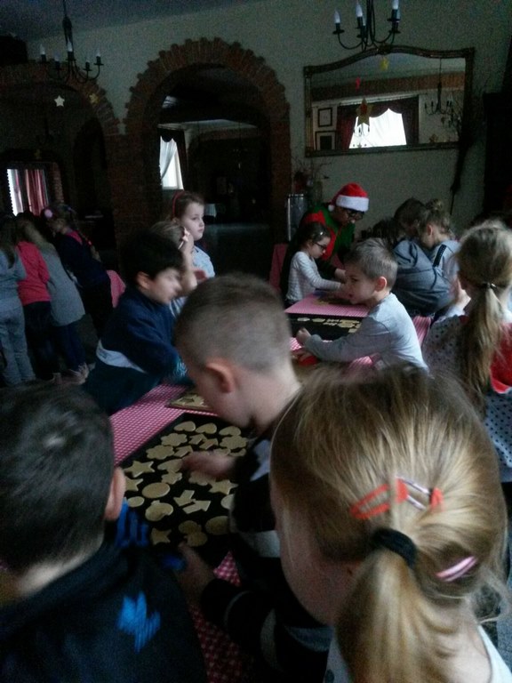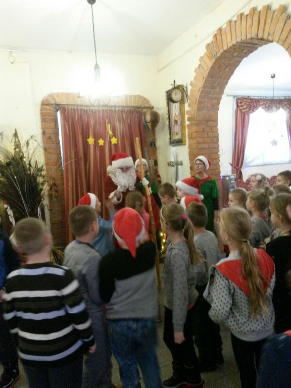 Następnie uczniowie pisali listy do Mikołaja, robili kartki świąteczne i piekli ciasteczka. Za wytrwałą pracę spotkała ich niespodzianka. Otóż pojawił się Mikołaj z prezentami. Dzieci radośnie go powitały i zrobiły sobie pamiątkowe zdjęcia. Mikołaj zaprosił dzieci do wspólnego tańca i zabaw. Był bardzo zadowolony, ponieważ dzieci przywiozły mu śnieg, który pokrył całą jego krainę. Przy tańcach i zabawach czas szybko płynął i trzeba było wracać do domu. Po zjedzeniu obiadu dzieci udały się w podróż powrotną. Bezpiecznie wróciły do Iławy bardzo zadowolone z wycieczki.