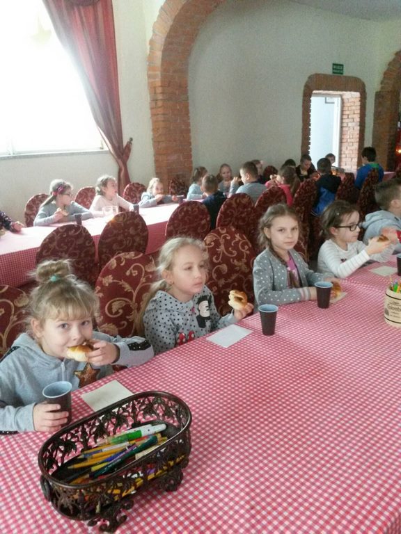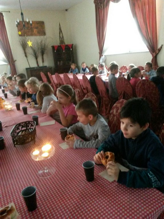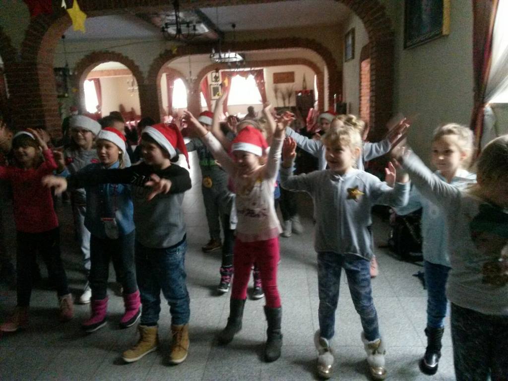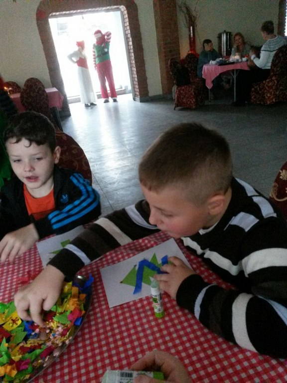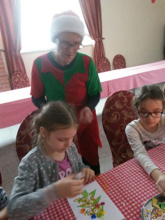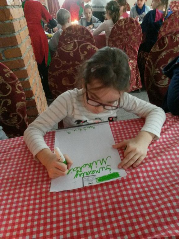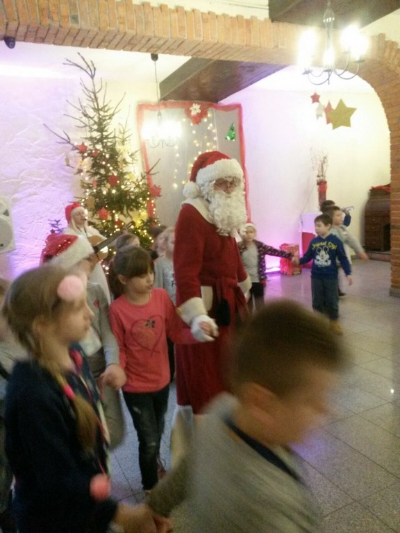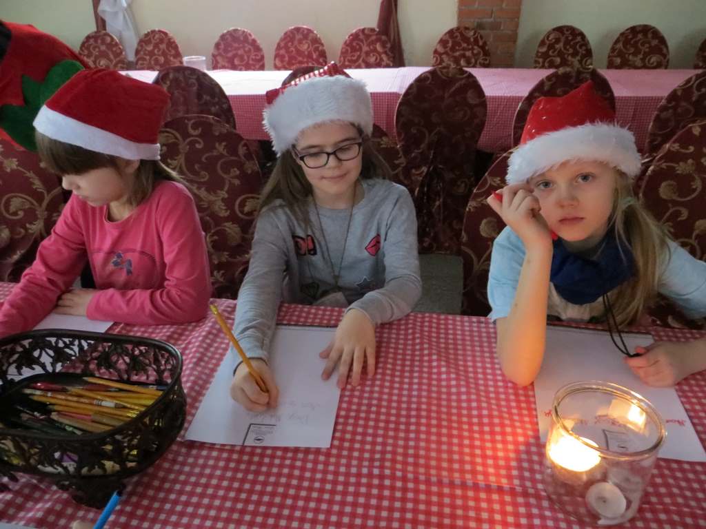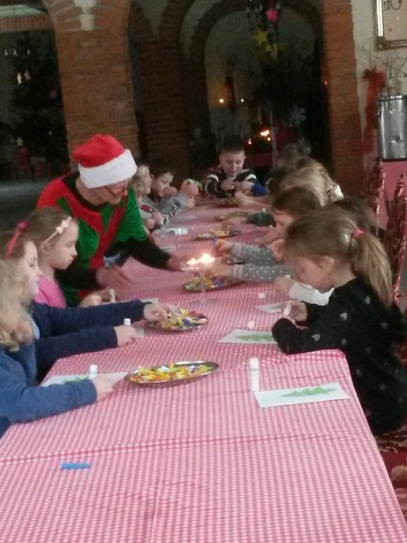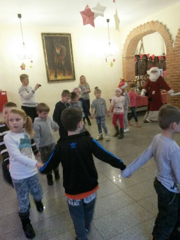 Następnie uczniowie pisali listy do Mikołaja, robili kartki świąteczne i piekli ciasteczka. Za wytrwałą pracę spotkała ich niespodzianka. Otóż pojawił się Mikołaj z prezentami. Dzieci radośnie go powitały i zrobiły sobie pamiątkowe zdjęcia. Mikołaj zaprosił dzieci do wspólnego tańca i zabaw. Był bardzo zadowolony, ponieważ dzieci przywiozły mu śnieg, który pokrył całą jego krainę. Przy tańcach i zabawach czas szybko płynął i trzeba było wracać do domu. Po zjedzeniu obiadu dzieci udały się w podróż powrotną. Bezpiecznie wróciły do Iławy bardzo zadowolone z wycieczki.