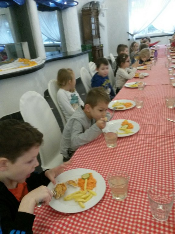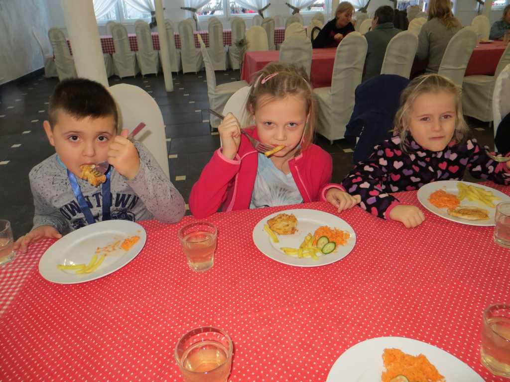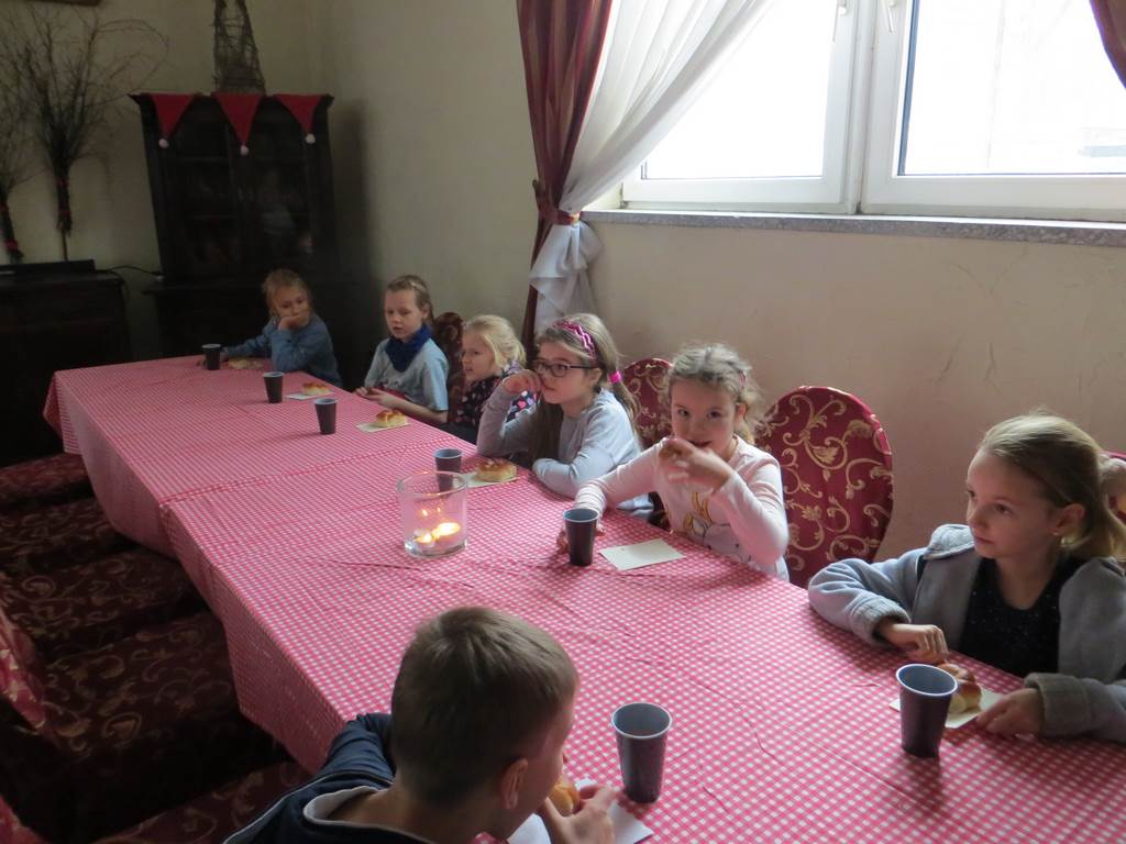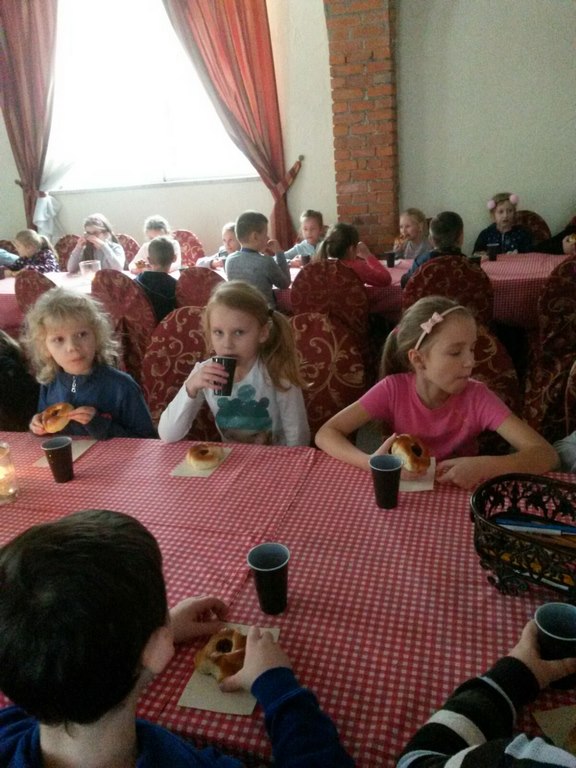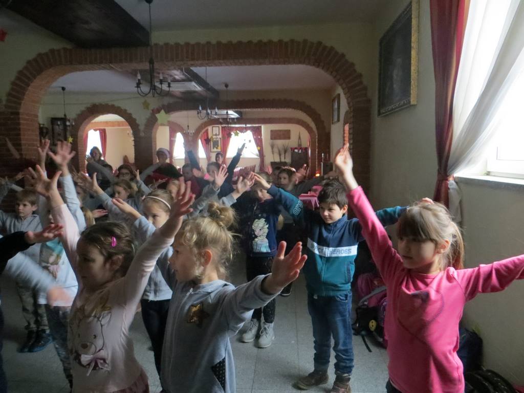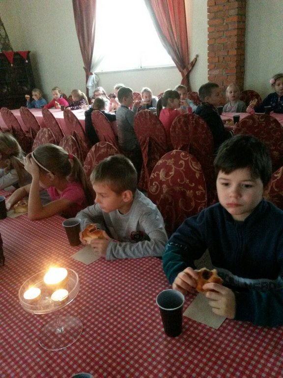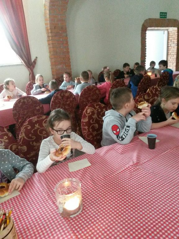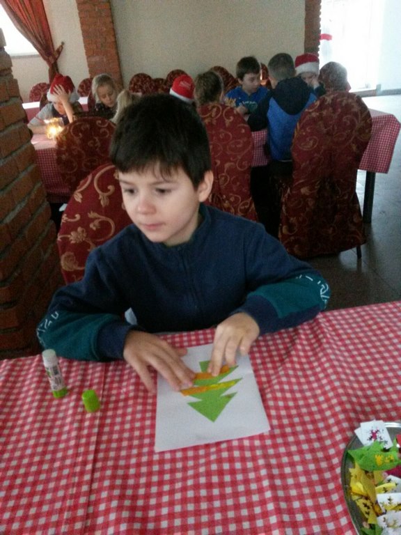 Następnie uczniowie pisali listy do Mikołaja, robili kartki świąteczne i piekli ciasteczka. Za wytrwałą pracę spotkała ich niespodzianka. Otóż pojawił się Mikołaj z prezentami. Dzieci radośnie go powitały i zrobiły sobie pamiątkowe zdjęcia. Mikołaj zaprosił dzieci do wspólnego tańca i zabaw. Był bardzo zadowolony, ponieważ dzieci przywiozły mu śnieg, który pokrył całą jego krainę. Przy tańcach i zabawach czas szybko płynął i trzeba było wracać do domu. Po zjedzeniu obiadu dzieci udały się w podróż powrotną. Bezpiecznie wróciły do Iławy bardzo zadowolone z wycieczki.