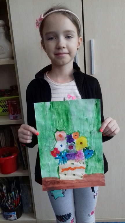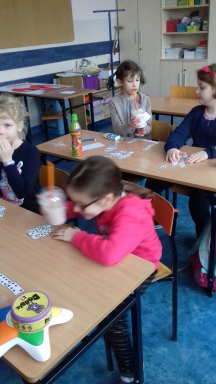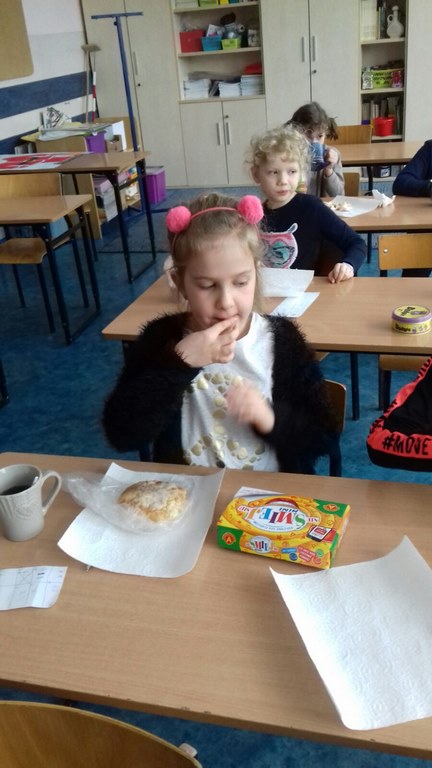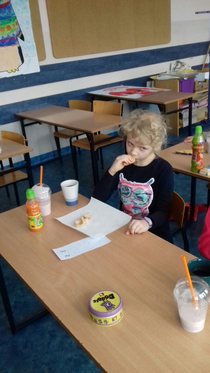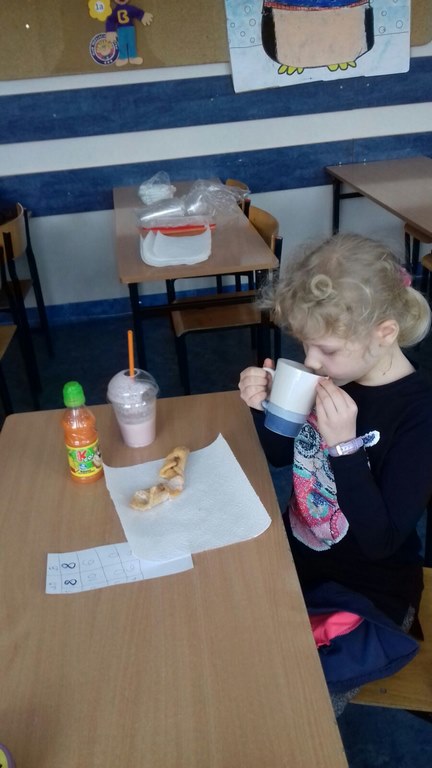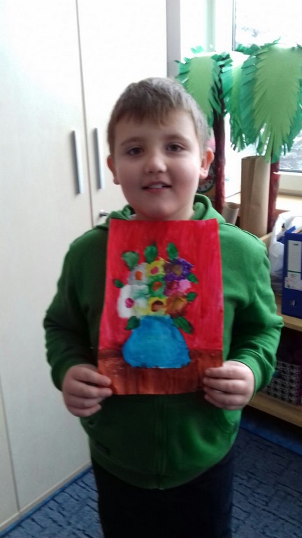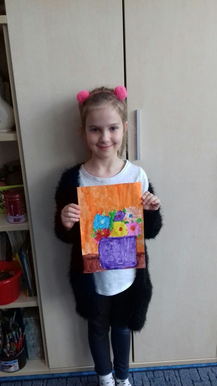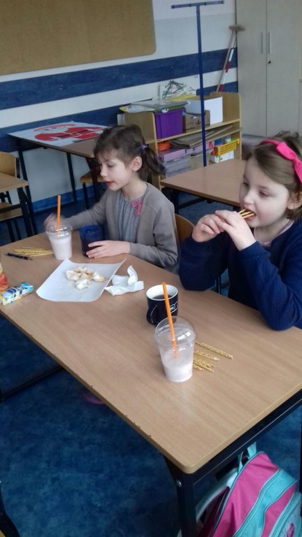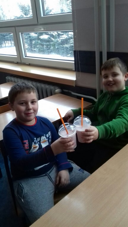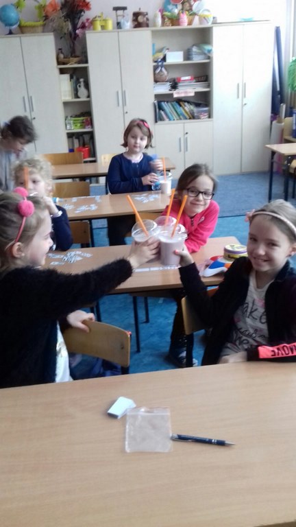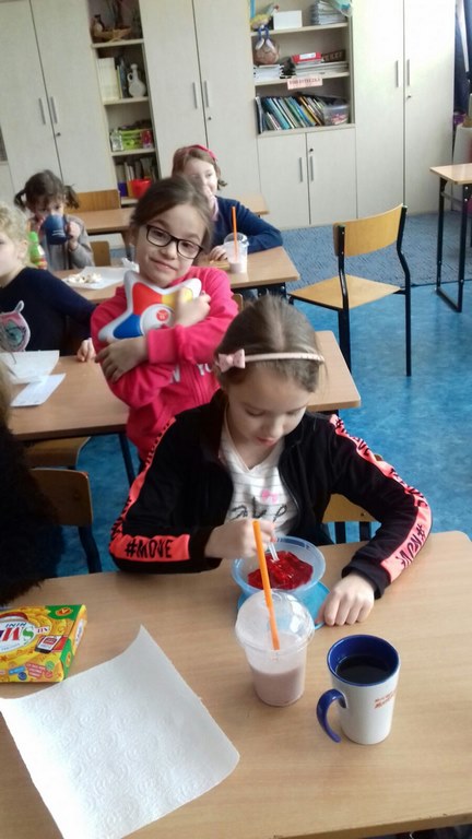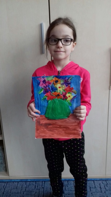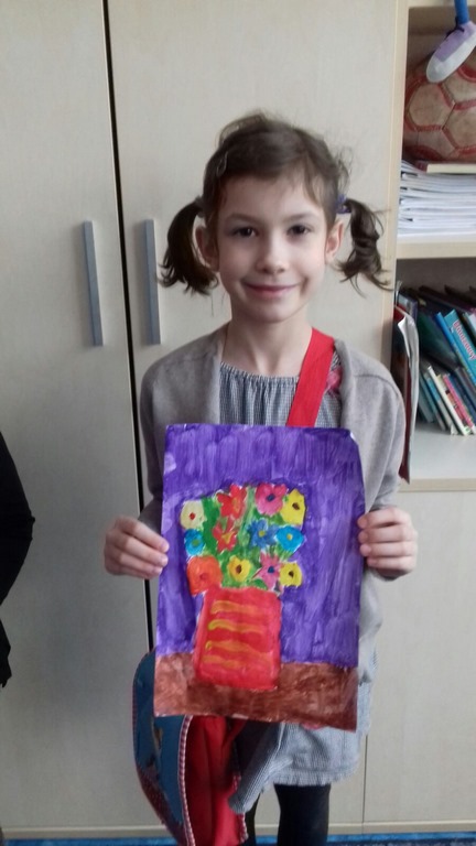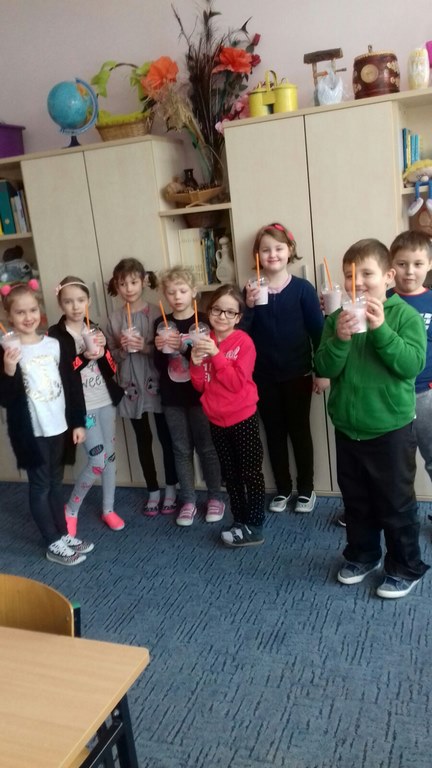 Grupa dzieci z klasy 1c uczestniczyła w poniedziałek 22 stycznia i we wtorek 23 stycznia w zajęciach zorganizowanych w czasie ferii zimowych na terenie szkoły. Pierwszego dnia zajęcia miały charakter artystyczny. Dzieci malowały farbami martwą naturę - bukiet kwiatów. Powstały piękne i ciekawe prace. Drugi dzień zajęć był pełen doznań kulinarnych. Dzieci piły zrobiony w klasie koktajl mleczko - owocowy i malinową herbatkę, jadły faworki przyniesione przez mamusie. Pozostałą część zajęć dzieci spędziły bawiąc się i grając w różne gry. Dzieci były zadowolone z tak spędzonego czasu w szkole.