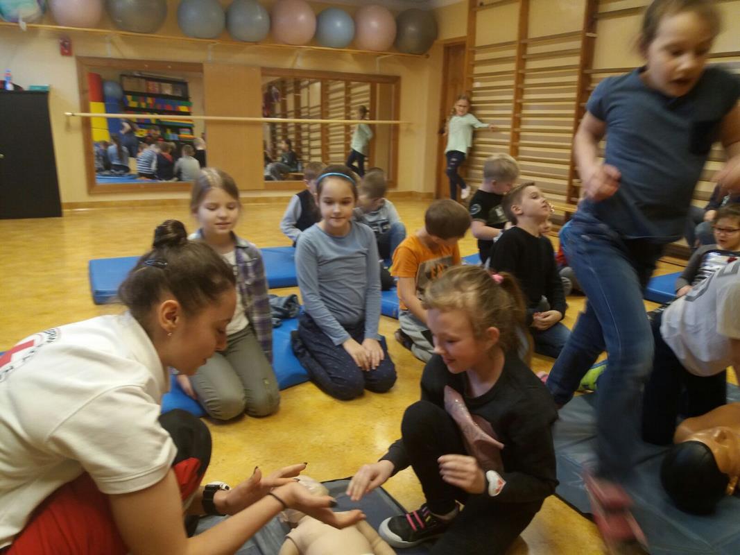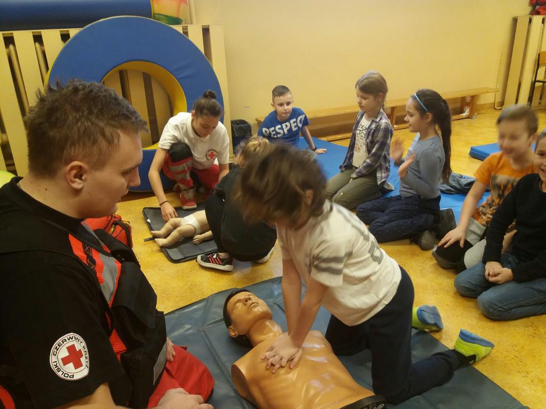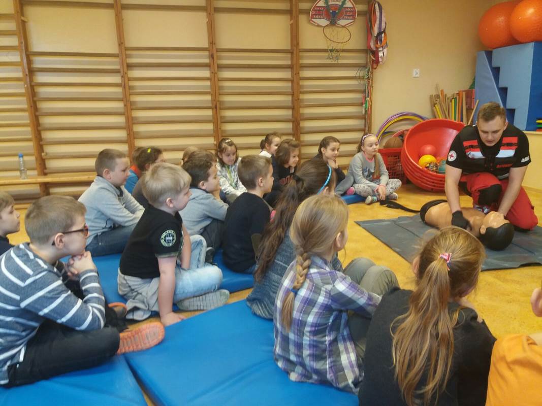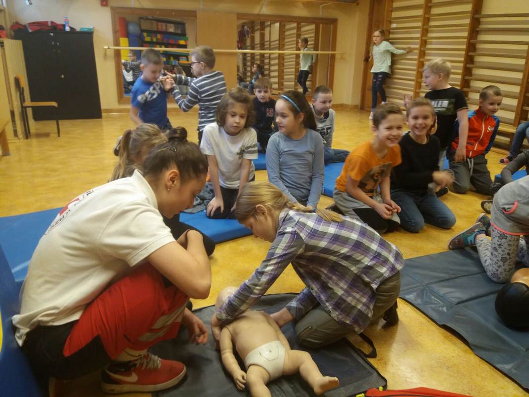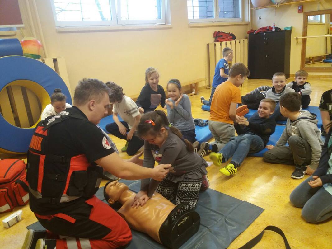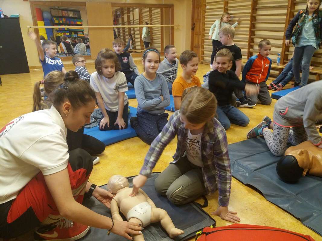 7 lutego 2018 r. podczas zajęć w klasie III c gościli instruktorzy PCK pani Sandra Cyglicka , pan Karol Jabłoński, którzy zaprezentowali podstawowe zasady udzielania pierwszej pomocy. Uczniowie mieli okazję nie tylko dowiedzieć się jak wykonać masaż serca, czy sztuczne oddychanie, ale także jak należy postępować w przypadku zakrztuszenia się, czy krwawienia z nosa. Dzieci mogły podczas ćwiczeń praktycznych samodzielnie poćwiczyć zaprezentowane zasady postępowania podczas udzielania pierwszej pomocy osobie dorosłej oraz niemowlęciu.