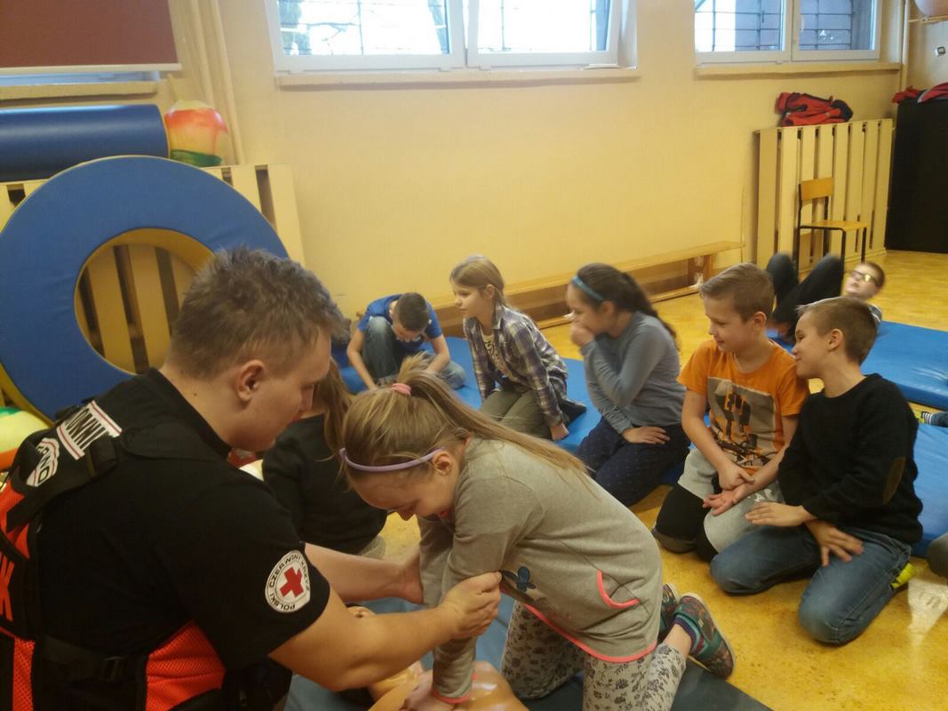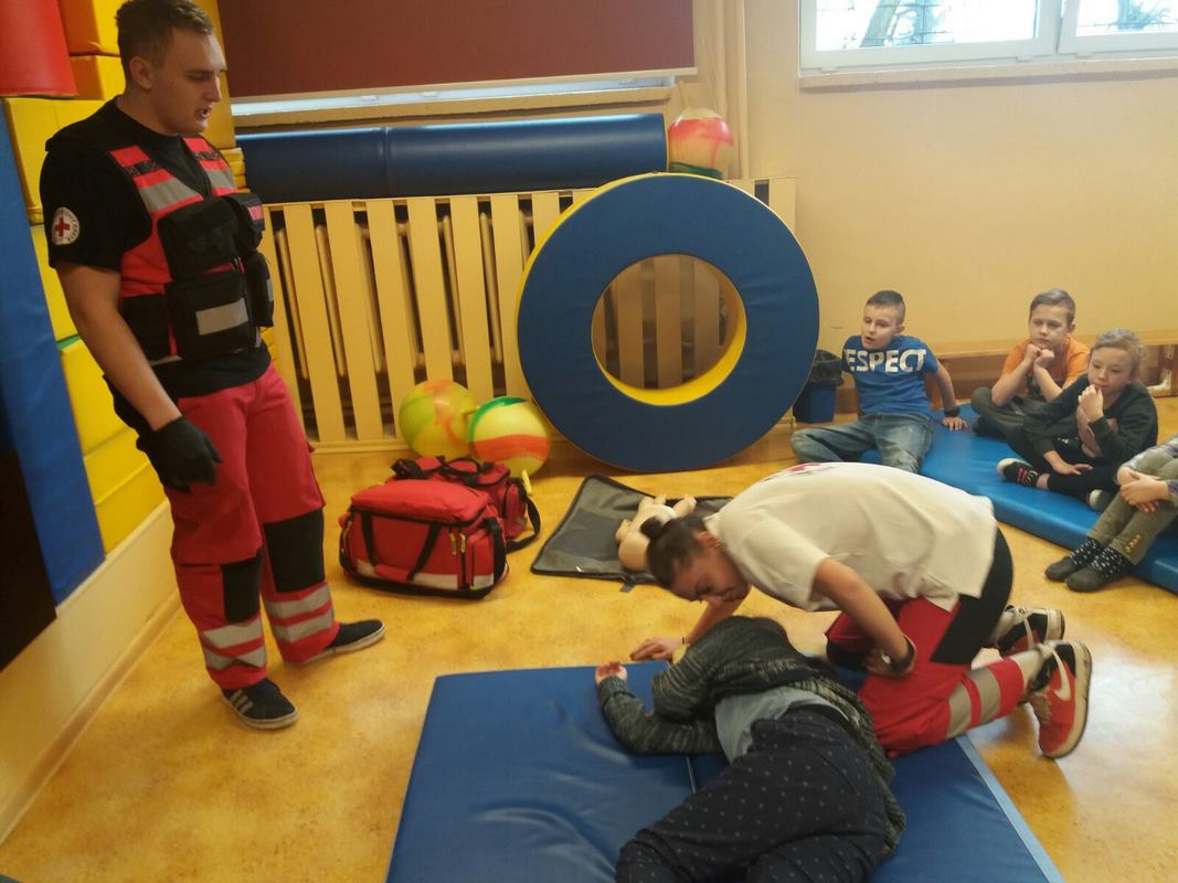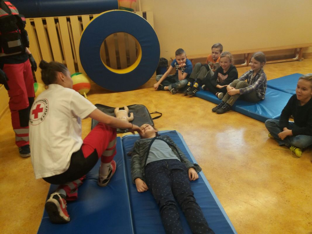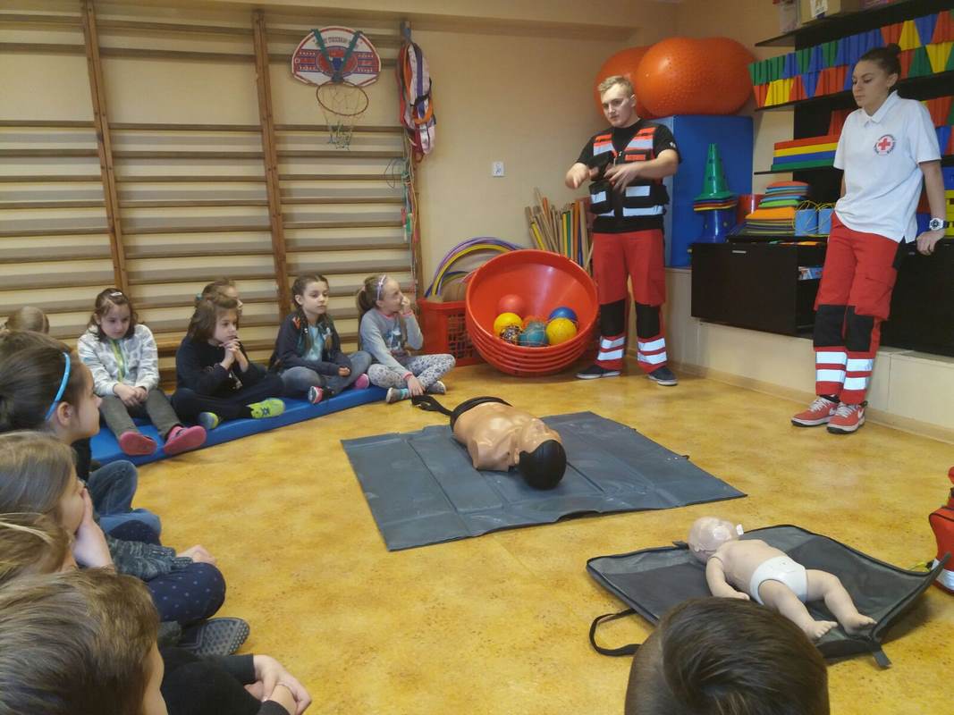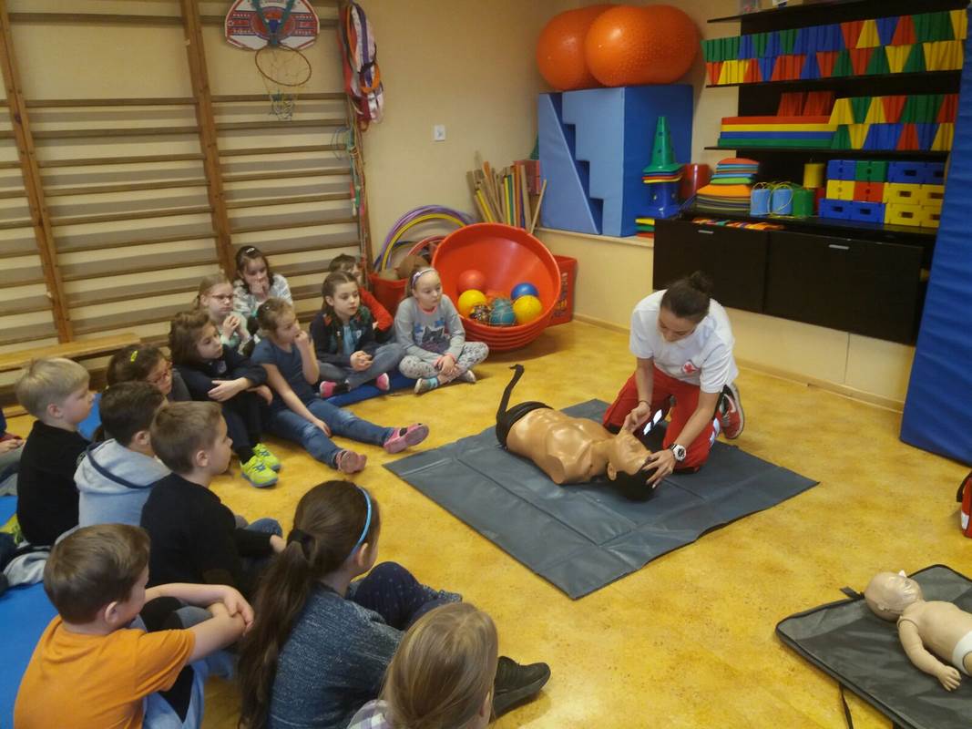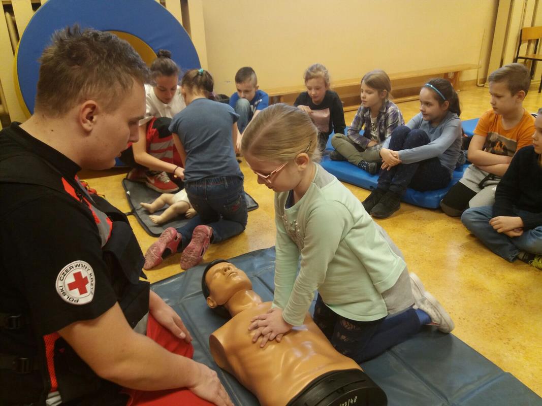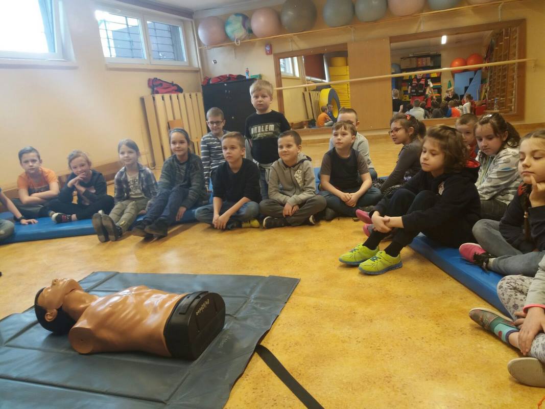 7 lutego 2018 r. podczas zajęć w klasie III c gościli instruktorzy PCK pani Sandra Cyglicka , pan Karol Jabłoński, którzy zaprezentowali podstawowe zasady udzielania pierwszej pomocy. Uczniowie mieli okazję nie tylko dowiedzieć się jak wykonać masaż serca, czy sztuczne oddychanie, ale także jak należy postępować w przypadku zakrztuszenia się, czy krwawienia z nosa. Dzieci mogły podczas ćwiczeń praktycznych samodzielnie poćwiczyć zaprezentowane zasady postępowania podczas udzielania pierwszej pomocy osobie dorosłej oraz niemowlęciu.