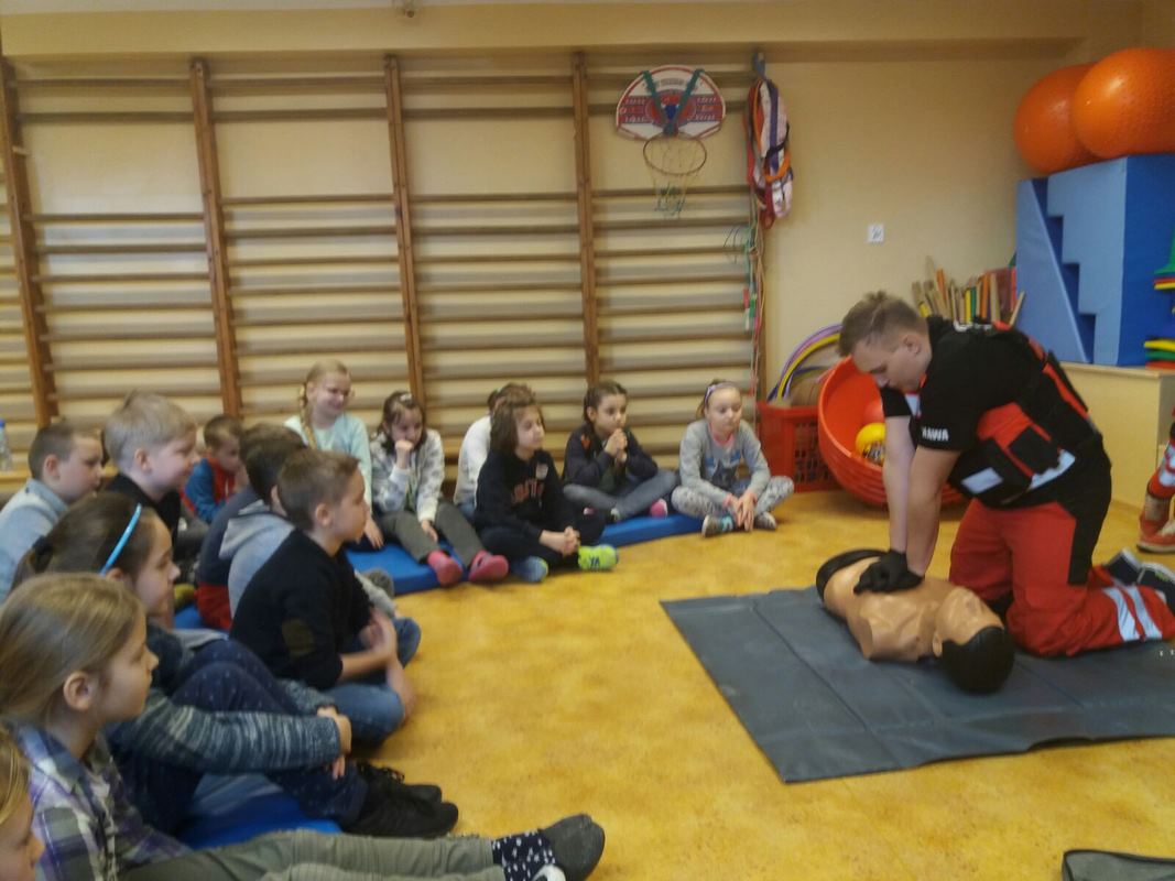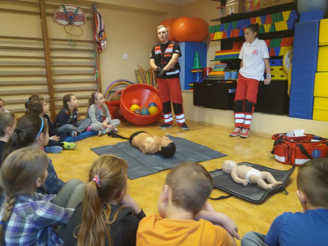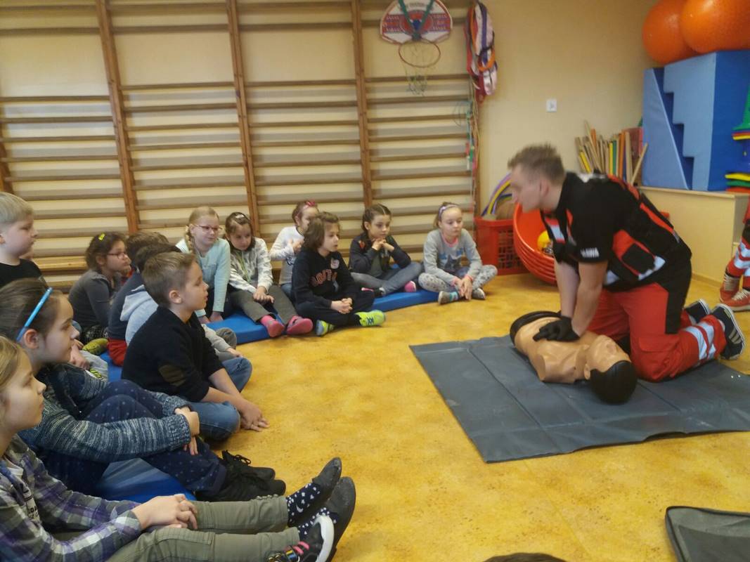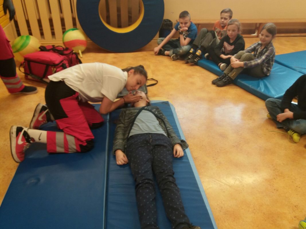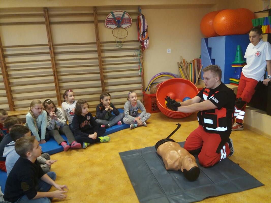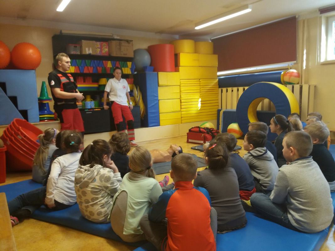 7 lutego 2018 r. podczas zajęć w klasie III c gościli instruktorzy PCK pani Sandra Cyglicka , pan Karol Jabłoński, którzy zaprezentowali podstawowe zasady udzielania pierwszej pomocy. Uczniowie mieli okazję nie tylko dowiedzieć się jak wykonać masaż serca, czy sztuczne oddychanie, ale także jak należy postępować w przypadku zakrztuszenia się, czy krwawienia z nosa. Dzieci mogły podczas ćwiczeń praktycznych samodzielnie poćwiczyć zaprezentowane zasady postępowania podczas udzielania pierwszej pomocy osobie dorosłej oraz niemowlęciu.