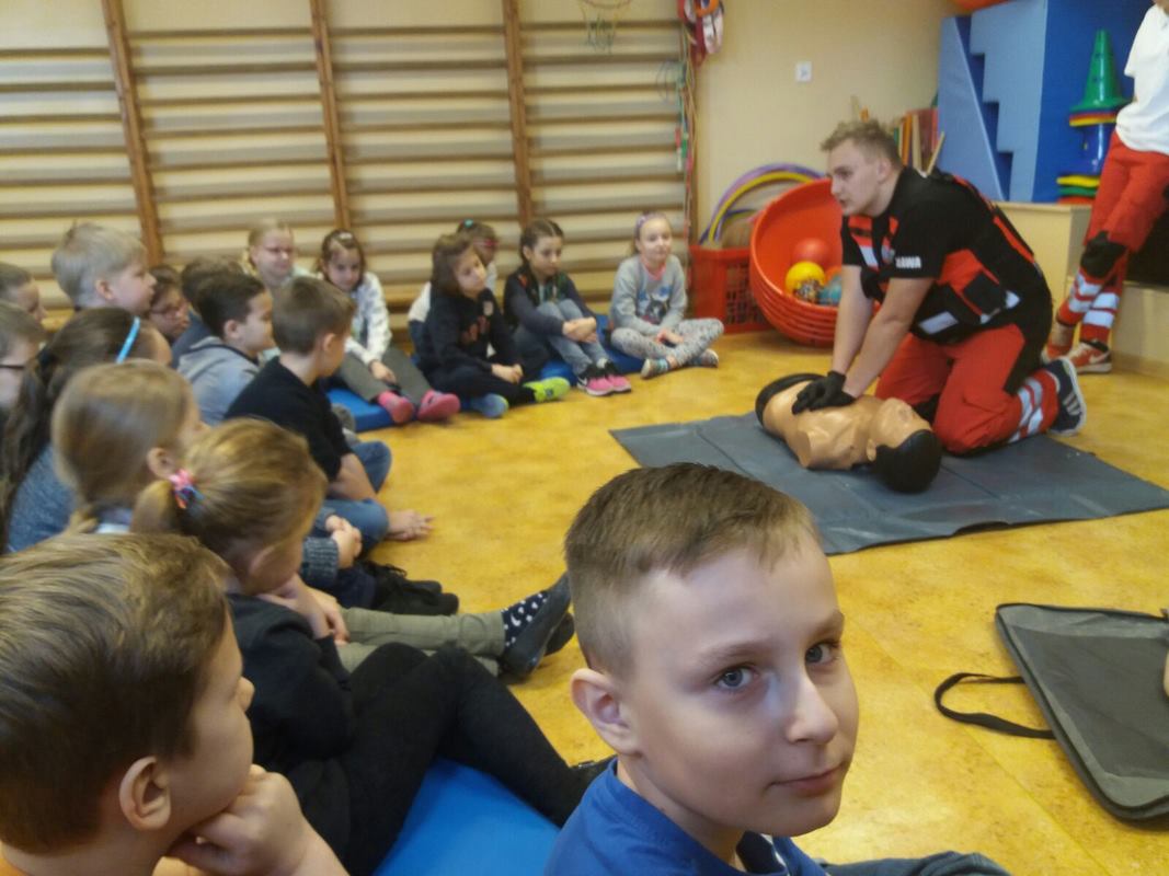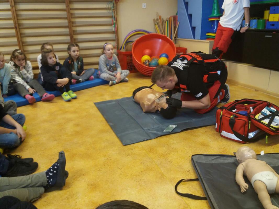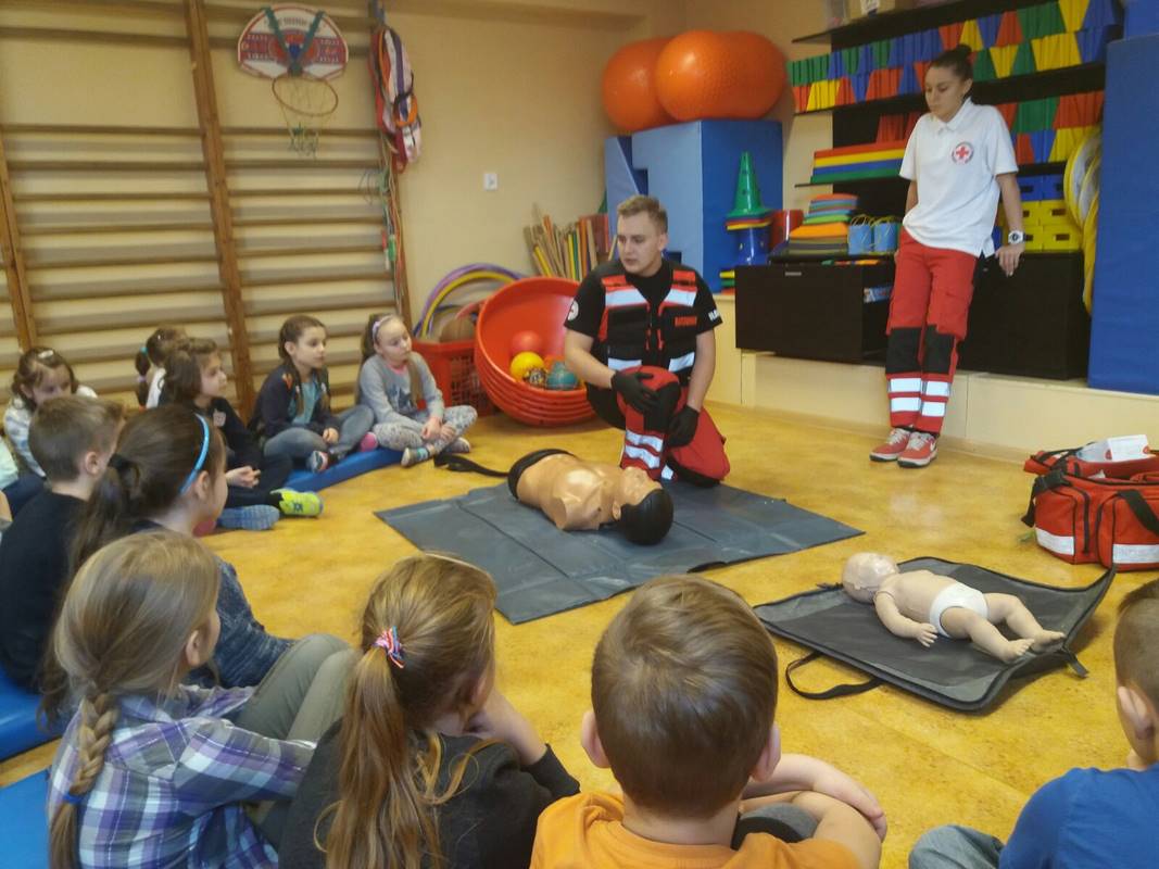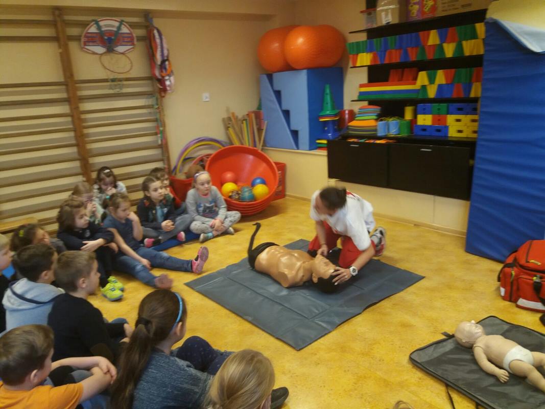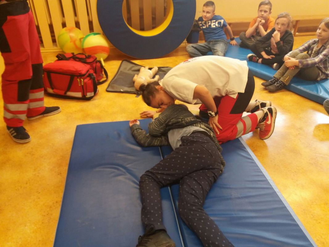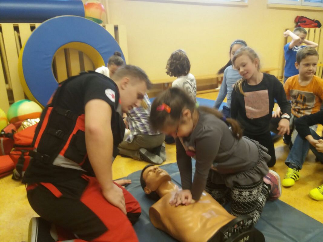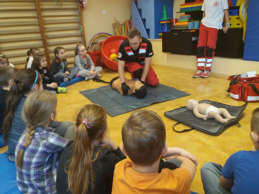 7 lutego 2018 r. podczas zajęć w klasie III c gościli instruktorzy PCK pani Sandra Cyglicka , pan Karol Jabłoński, którzy zaprezentowali podstawowe zasady udzielania pierwszej pomocy. Uczniowie mieli okazję nie tylko dowiedzieć się jak wykonać masaż serca, czy sztuczne oddychanie, ale także jak należy postępować w przypadku zakrztuszenia się, czy krwawienia z nosa. Dzieci mogły podczas ćwiczeń praktycznych samodzielnie poćwiczyć zaprezentowane zasady postępowania podczas udzielania pierwszej pomocy osobie dorosłej oraz niemowlęciu.