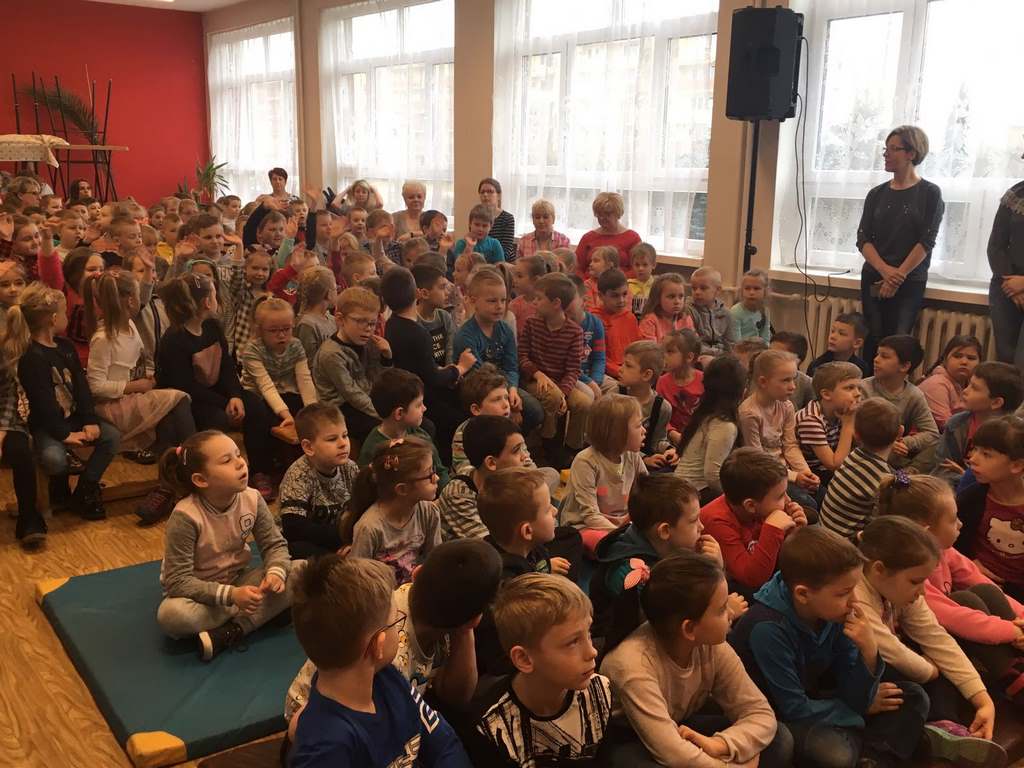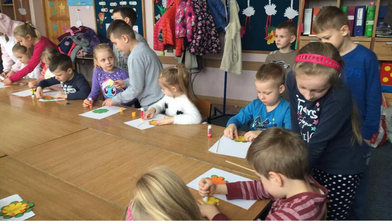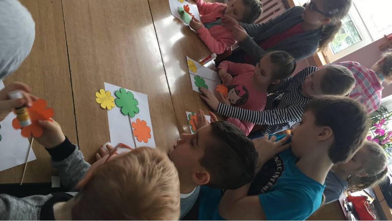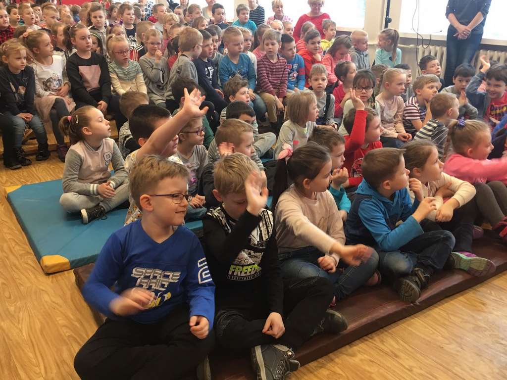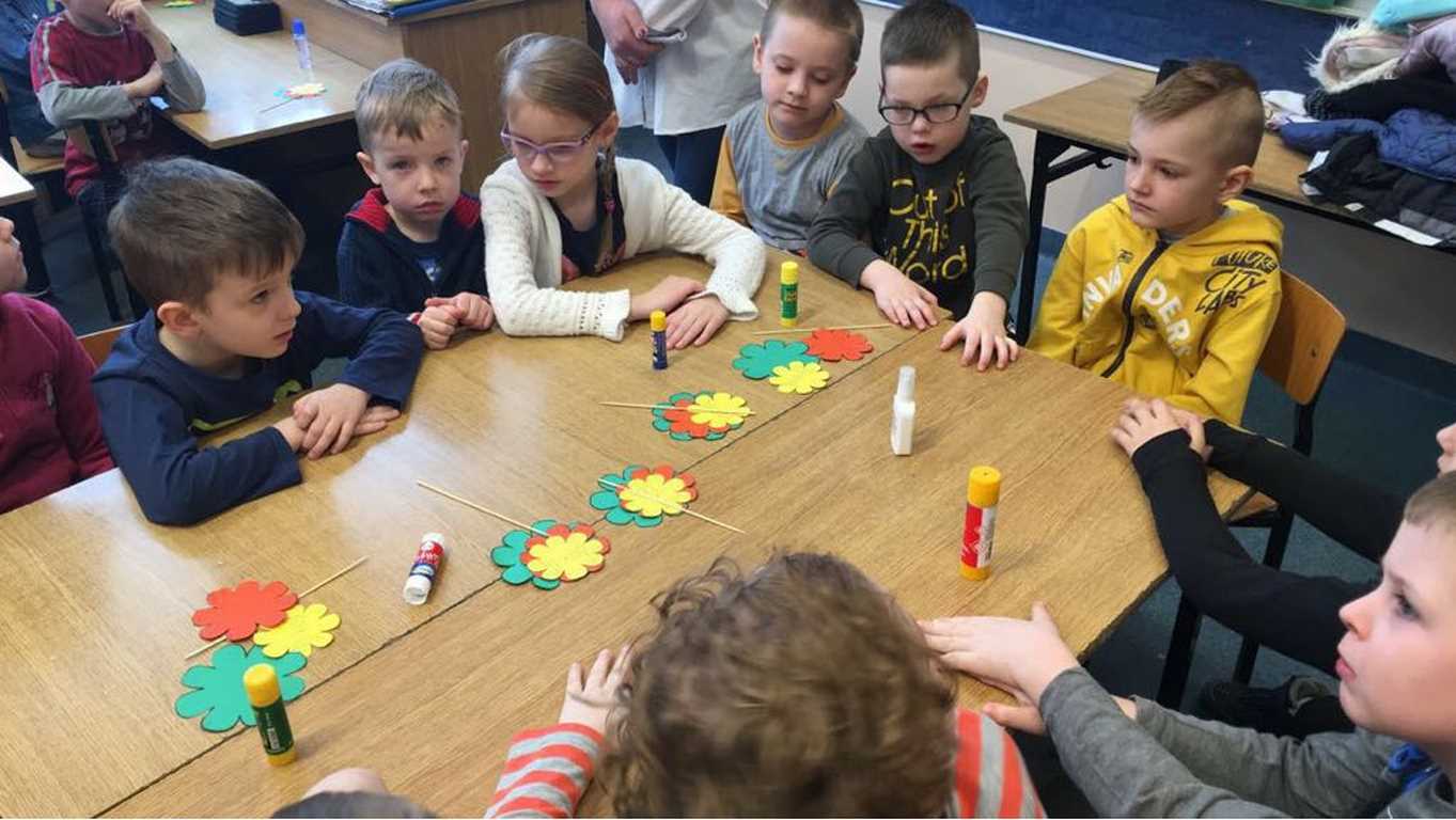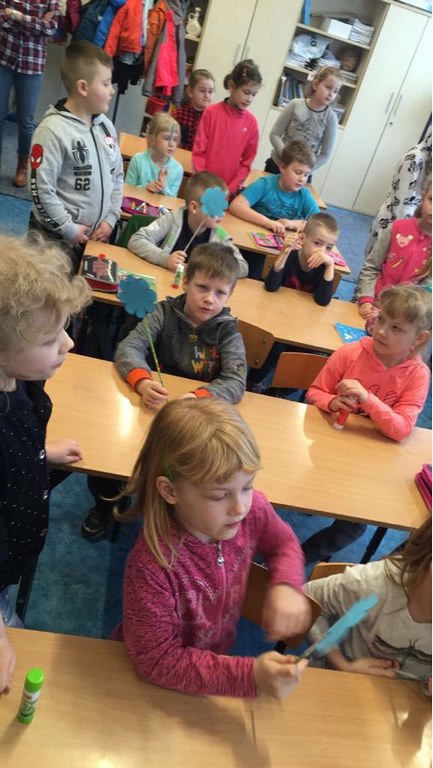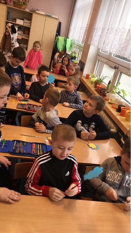 26 marca 2018 r. zaprosiliśmy do nas dzieci z Przedszkola Miejskiego nr 2 oraz Przedszkola Miejskiego nr 6. Uczniowie klas 1-3 oraz członkowie szkolnego zespołu wokalno-instrumentalnego wierszem, tańcami, pląsami i piosenkami przywitali z przedszkolakami wiosnę. Po prezentacji nasi mali goście uczestniczyli w warsztatach artystycznych. Z kolegami i koleżankami z klas 3b, 3d, 3e, 2a, 1b, 1c wykonali barwne wiosenne kwiaty.