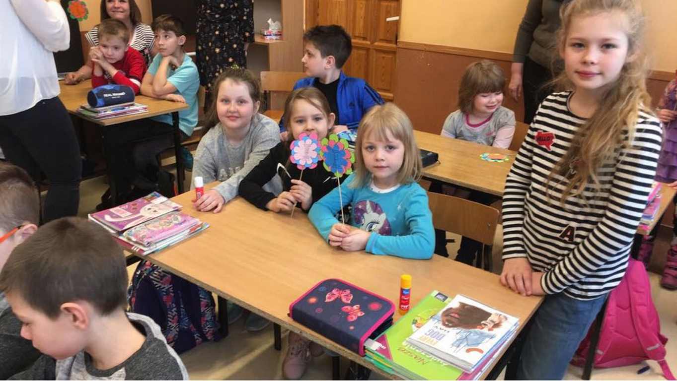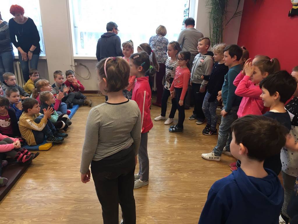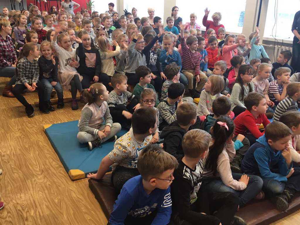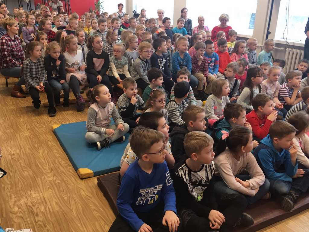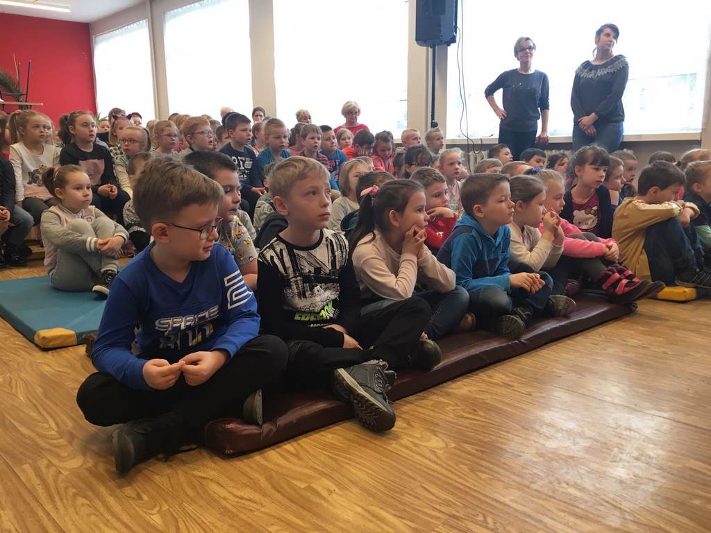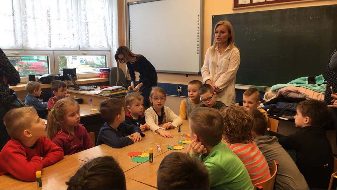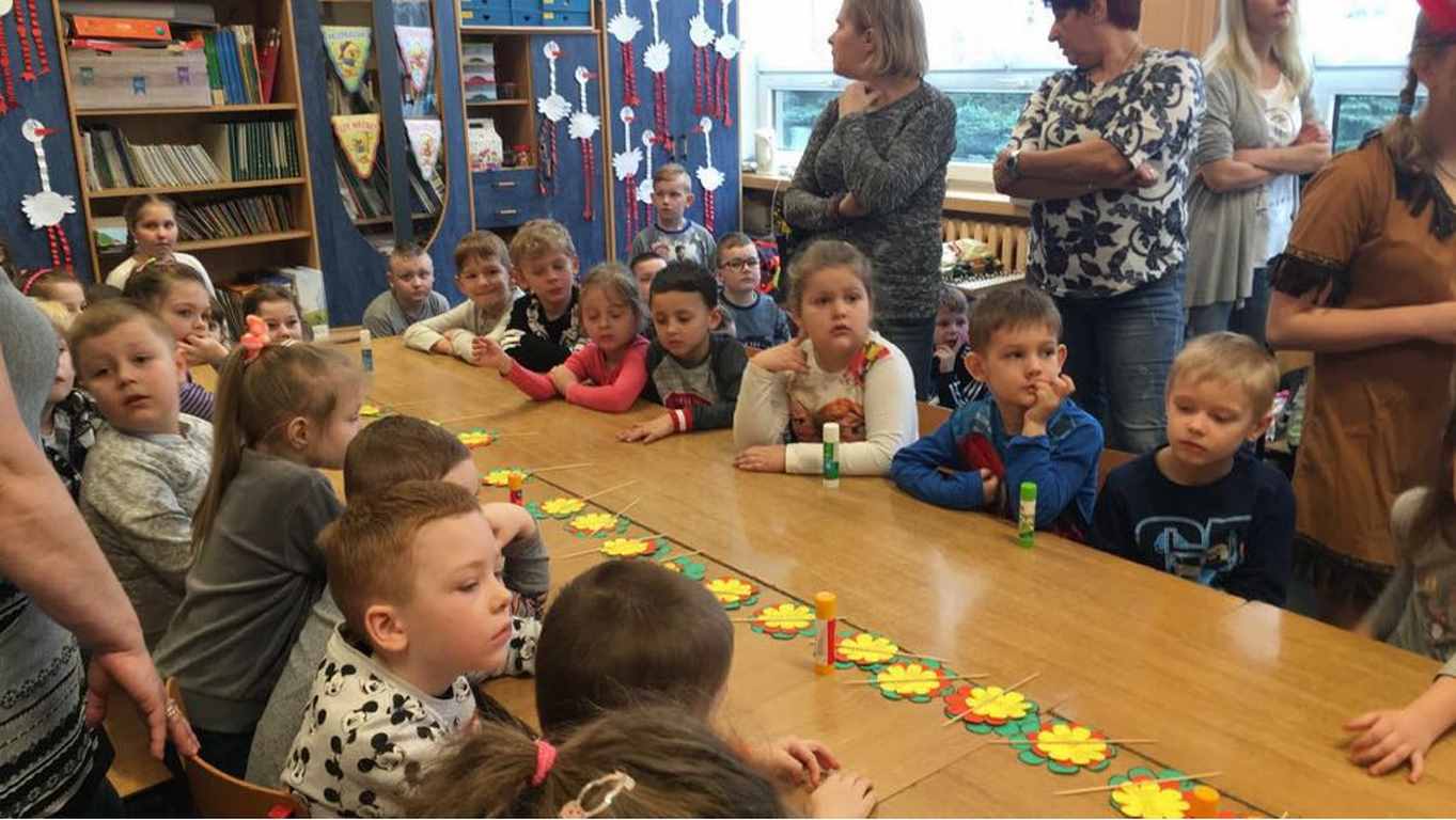 26 marca 2018 r. zaprosiliśmy do nas dzieci z Przedszkola Miejskiego nr 2 oraz Przedszkola Miejskiego nr 6. Uczniowie klas 1-3 oraz członkowie szkolnego zespołu wokalno-instrumentalnego wierszem, tańcami, pląsami i piosenkami przywitali z przedszkolakami wiosnę. Po prezentacji nasi mali goście uczestniczyli w warsztatach artystycznych. Z kolegami i koleżankami z klas 3b, 3d, 3e, 2a, 1b, 1c wykonali barwne wiosenne kwiaty.