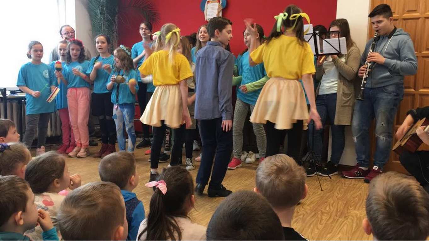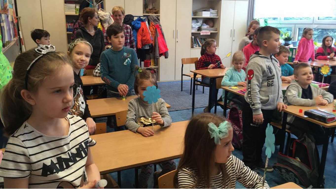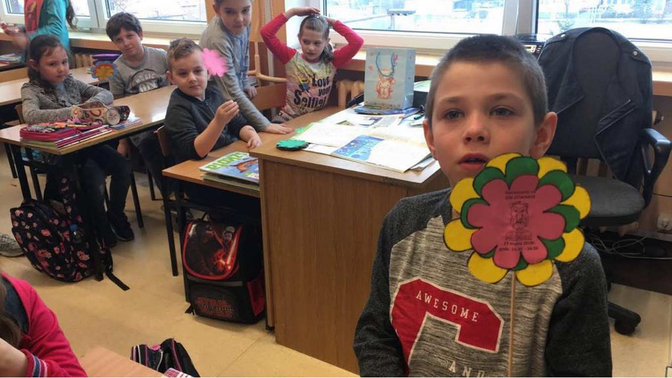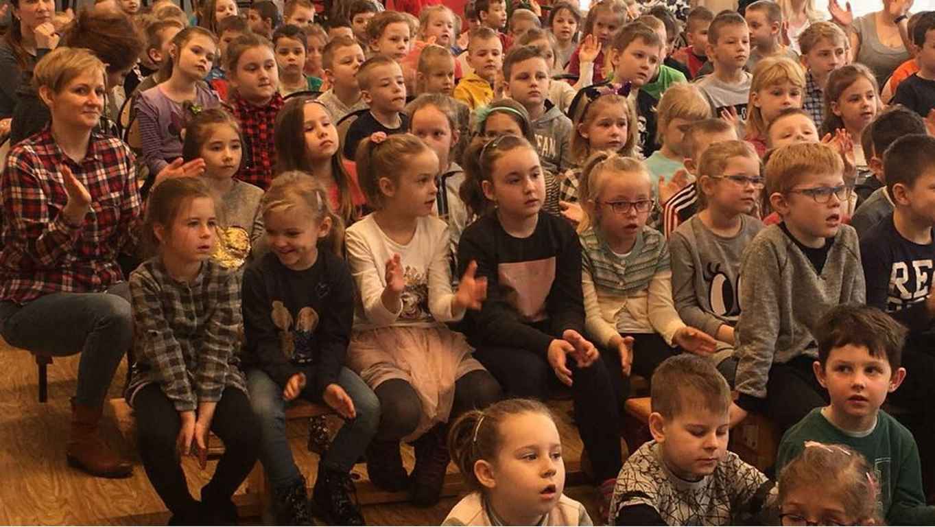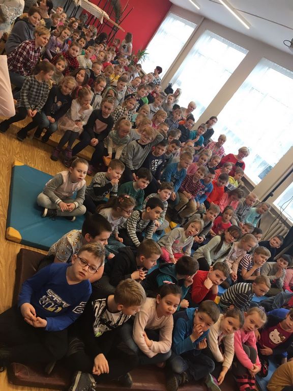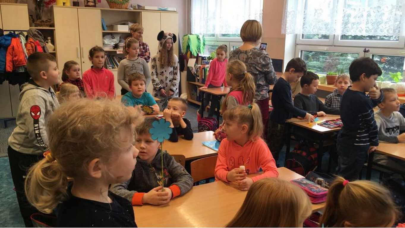 26 marca 2018 r. zaprosiliśmy do nas dzieci z Przedszkola Miejskiego nr 2 oraz Przedszkola Miejskiego nr 6. Uczniowie klas 1-3 oraz członkowie szkolnego zespołu wokalno-instrumentalnego wierszem, tańcami, pląsami i piosenkami przywitali z przedszkolakami wiosnę. Po prezentacji nasi mali goście uczestniczyli w warsztatach artystycznych. Z kolegami i koleżankami z klas 3b, 3d, 3e, 2a, 1b, 1c wykonali barwne wiosenne kwiaty.