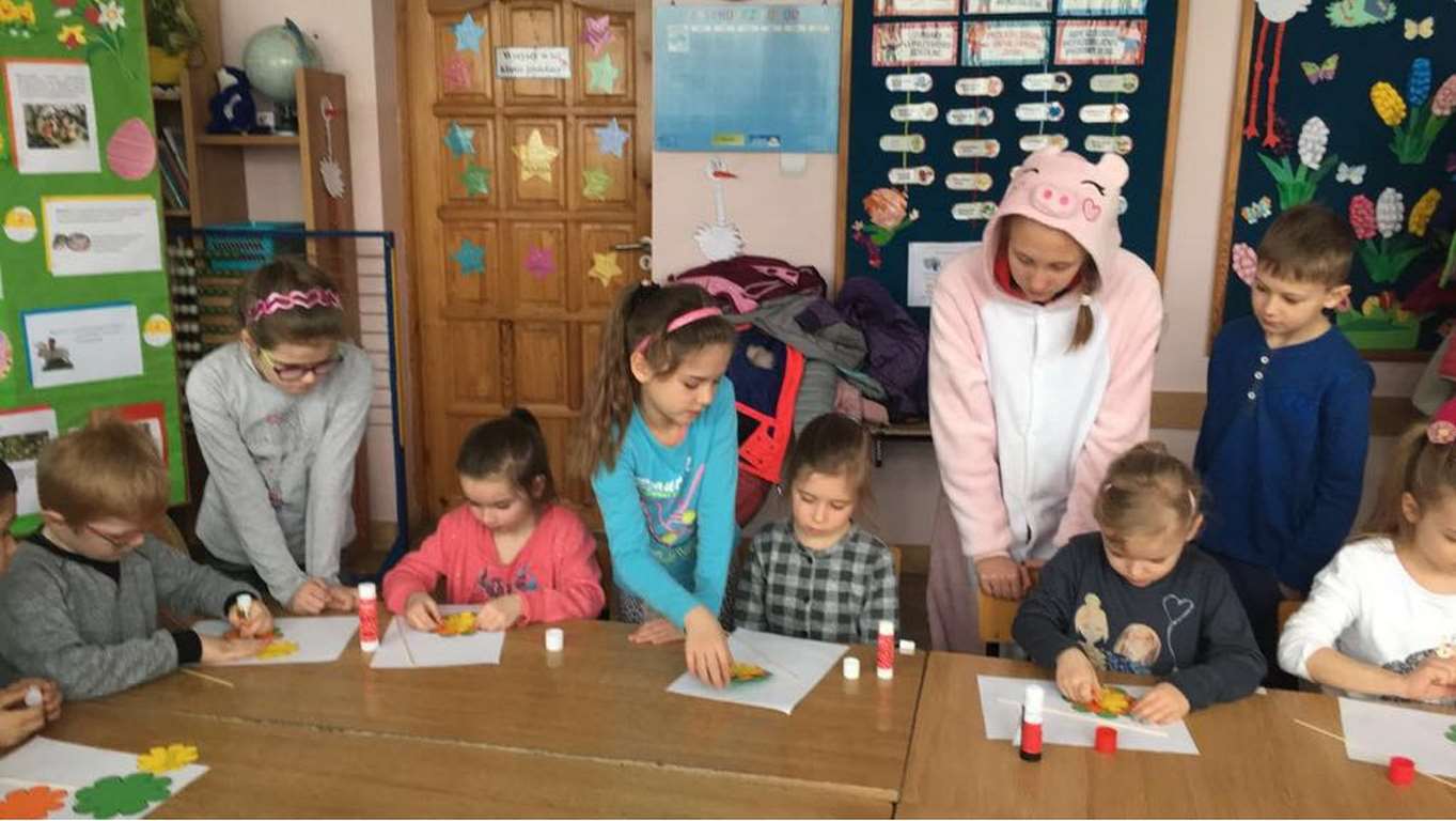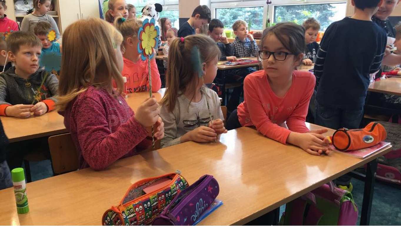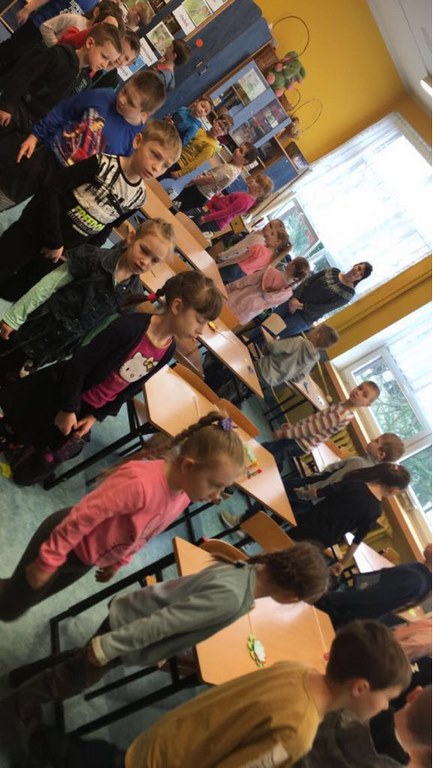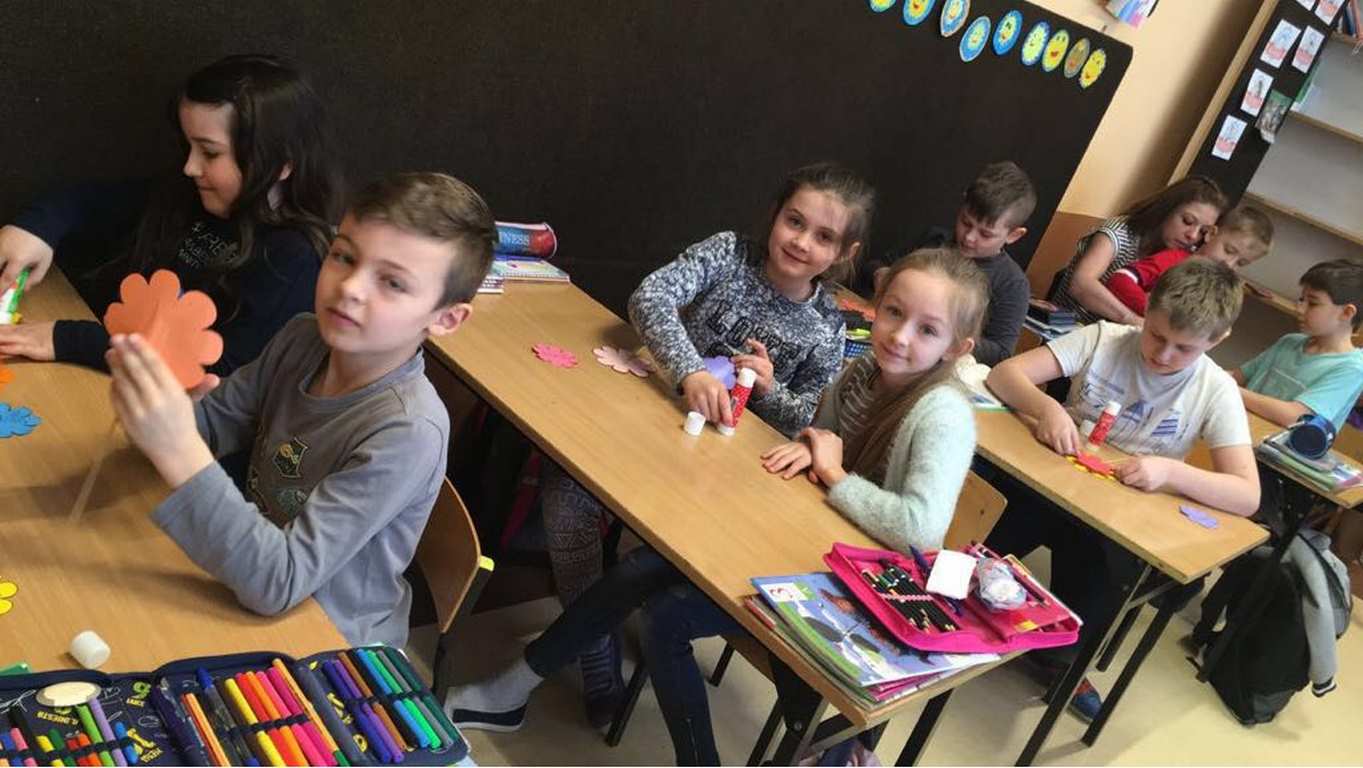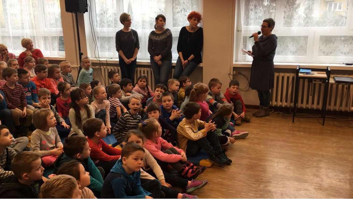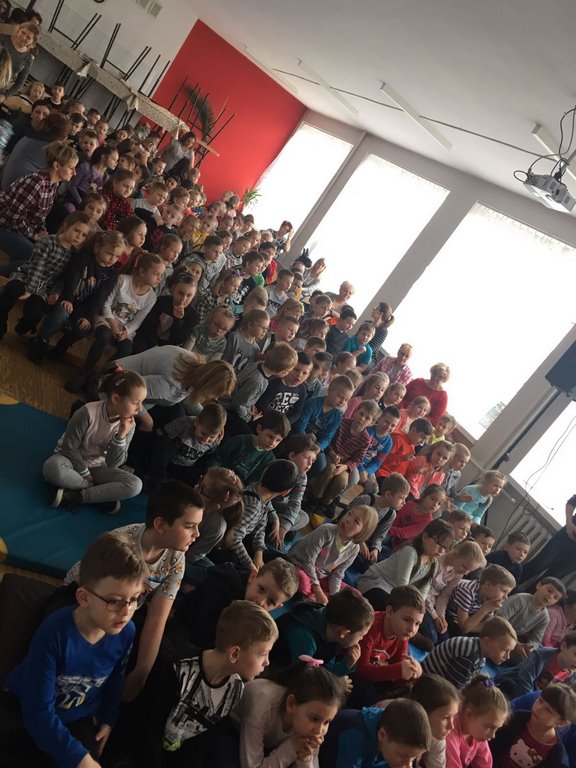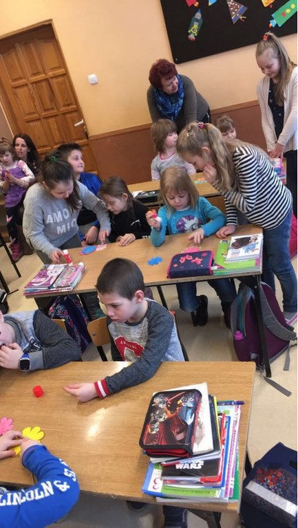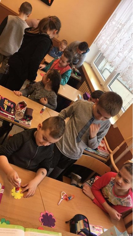 26 marca 2018 r. zaprosiliśmy do nas dzieci z Przedszkola Miejskiego nr 2 oraz Przedszkola Miejskiego nr 6. Uczniowie klas 1-3 oraz członkowie szkolnego zespołu wokalno-instrumentalnego wierszem, tańcami, pląsami i piosenkami przywitali z przedszkolakami wiosnę. Po prezentacji nasi mali goście uczestniczyli w warsztatach artystycznych. Z kolegami i koleżankami z klas 3b, 3d, 3e, 2a, 1b, 1c wykonali barwne wiosenne kwiaty.